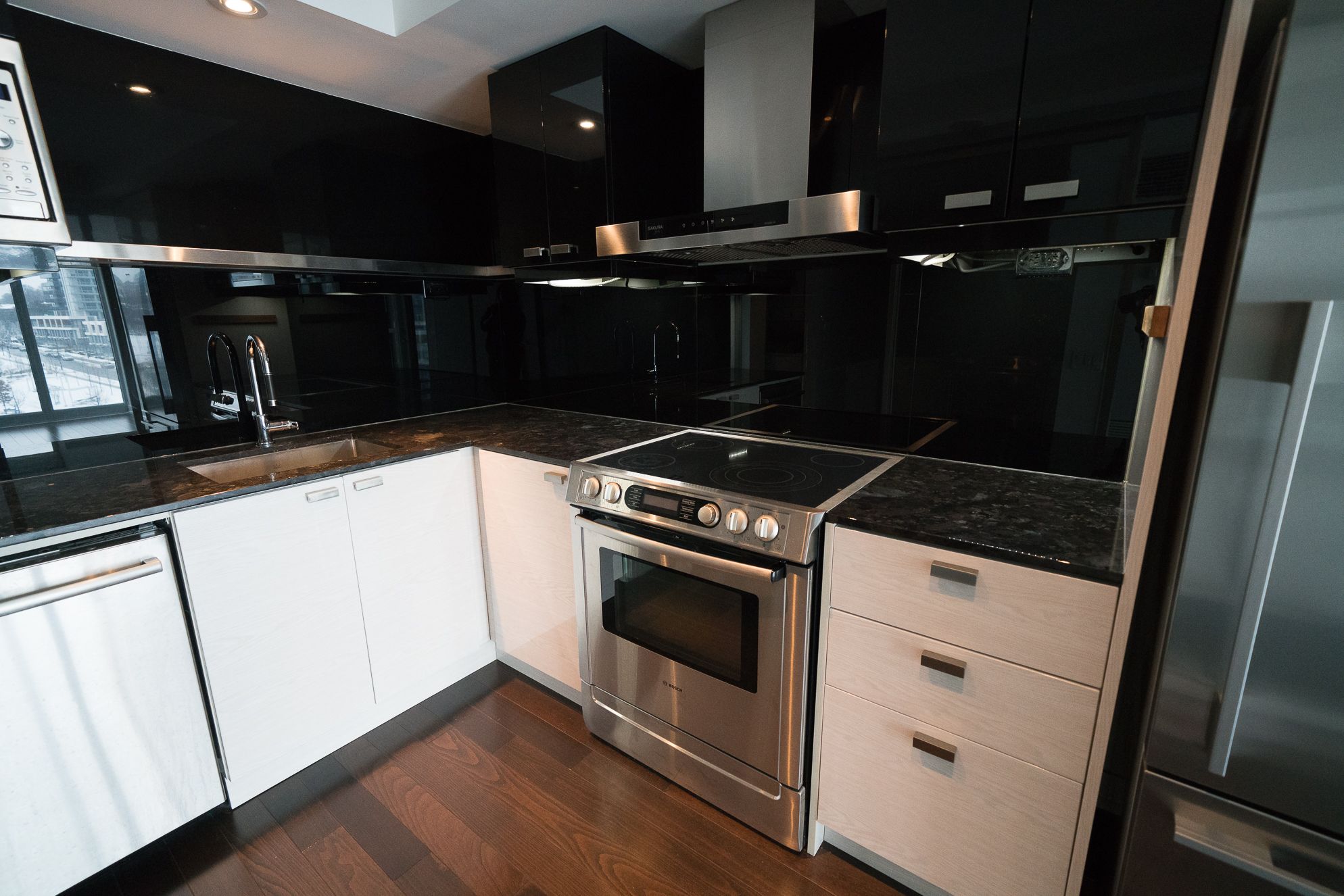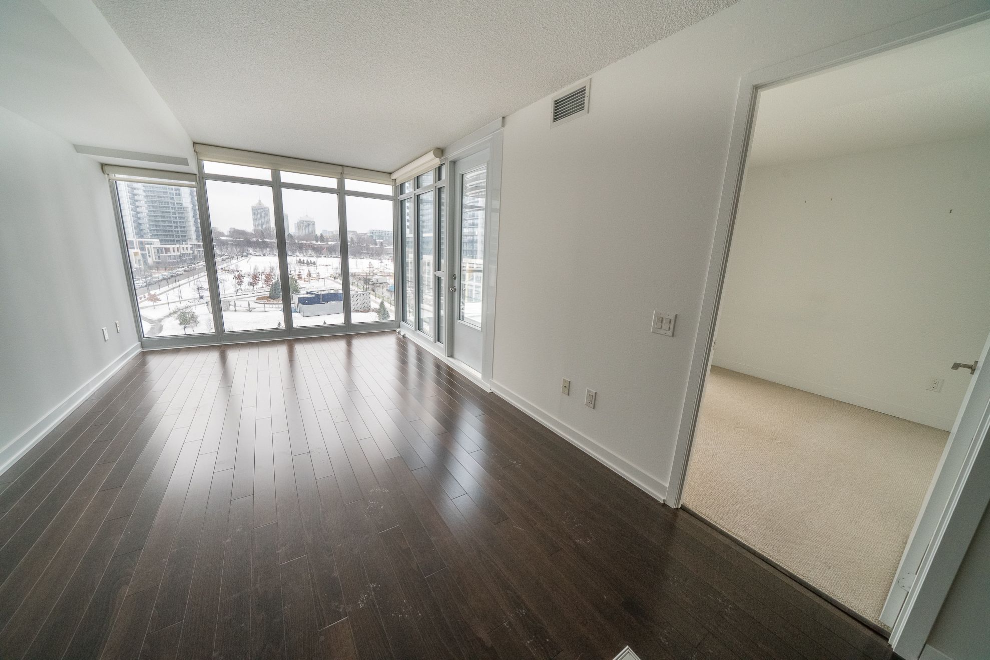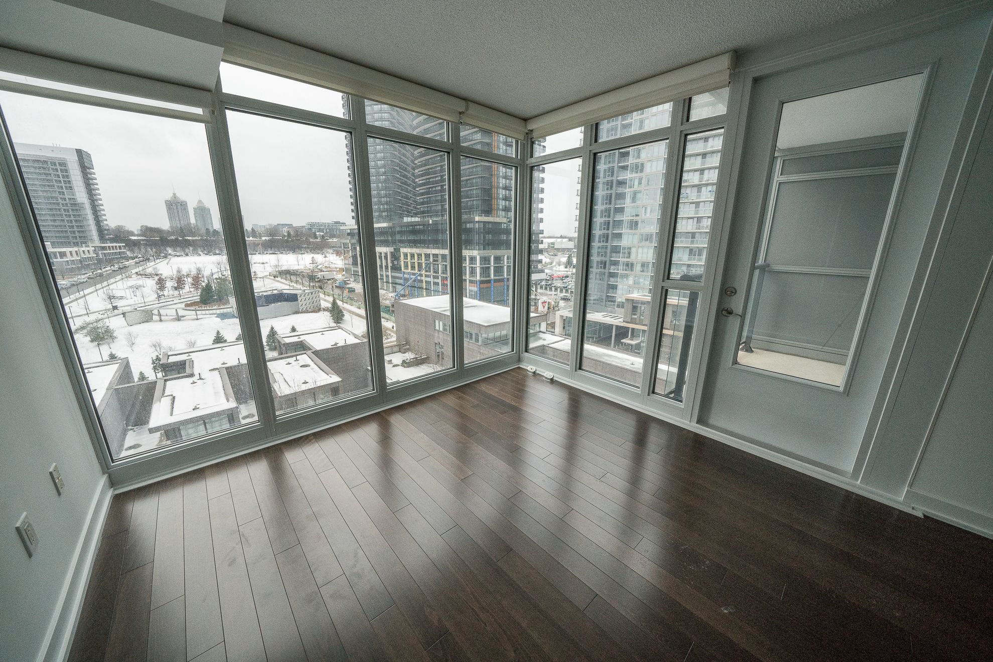Welcome to tango at concord parkplace. A rarely offered 1+den with unmatched features! Step into this immaculately maintained 668 sq ft suite with an additional 38 sq ft balcony, offering west facing unobstructed views of the park. This thoughtfully upgraded unit stands out from the crowd with hardwood floors, high-end stainless steel appliances, luxurious stone counters, and upgraded cabinetry in both kitchen and bath. The sleek kitchen boasts upgraded sliding glass doors, allowing you to enclose the space completely. Ideal for separating the space or keeping cooking aromas contained while adding a touch of modern elegance. The oversized closet in the foyer offers exceptional storage or can function as a personal locker. Enjoy natural light through premium blinds in both the living area and primary bedroom. The open, versatile den is perfect for a home office or creative studio. Tango residents benefit from resort-style amenities: a large gym, sauna, three outdoor hot tubs plus one indoor hot tub, two guest suites, party room, 24 hour concierge, ample visitor parking, and inviting outdoor seating areas under a canopy. Located in the vibrant bayview village / north york corridor, you're just minutes from bayview village shopping centre, ikea, leslie and bessarion subway stations, oriole go station, and north york general hospital. Quick access to highway 401 and 404 puts the entire city at your doorstep. Enjoy nearby parks, top-rated schools, cafes, and restaurants, making this an ideal home for professionals, couples, or investors seeking style, convenience, and value. ***some photos are virtually staged.