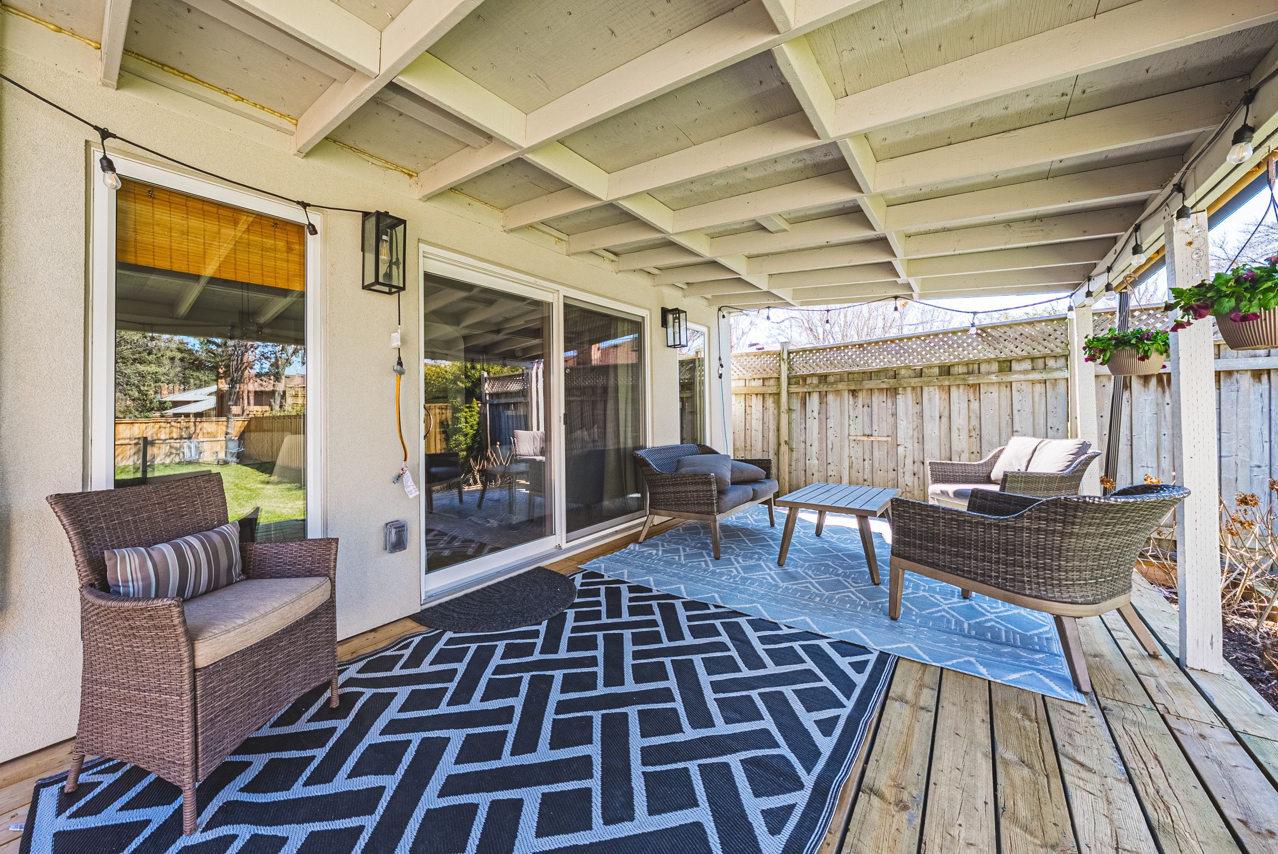 Tucked away in a quiet enclave, this exceptional residence offers a rare opportunity to experience refined, cottage-inspired living in the heart of cooksville. Set back from the street and surrounded by mature properties, the home delivers a sense of privacy and tranquility that feels worlds away from the city - yet remains steps from everything. Designed to impress, the interior showcases soaring 10 ft vaulted ceilings and a bright, airy layout. A stunning 2026 kitchen upgrade elevates the home with modern finishes and thoughtful design, perfectly suited for both everyday living and entertaining. Seamlessly blending indoor and outdoor living, an oversized sliding door leads to a private covered porch (professionally reinforced with permits), creating a serene outdoor retreat. The backyard offers a uniquely open perspective, extending across neighbouring green space rather than directly into rear homes, a rare and highly sought-after feature.