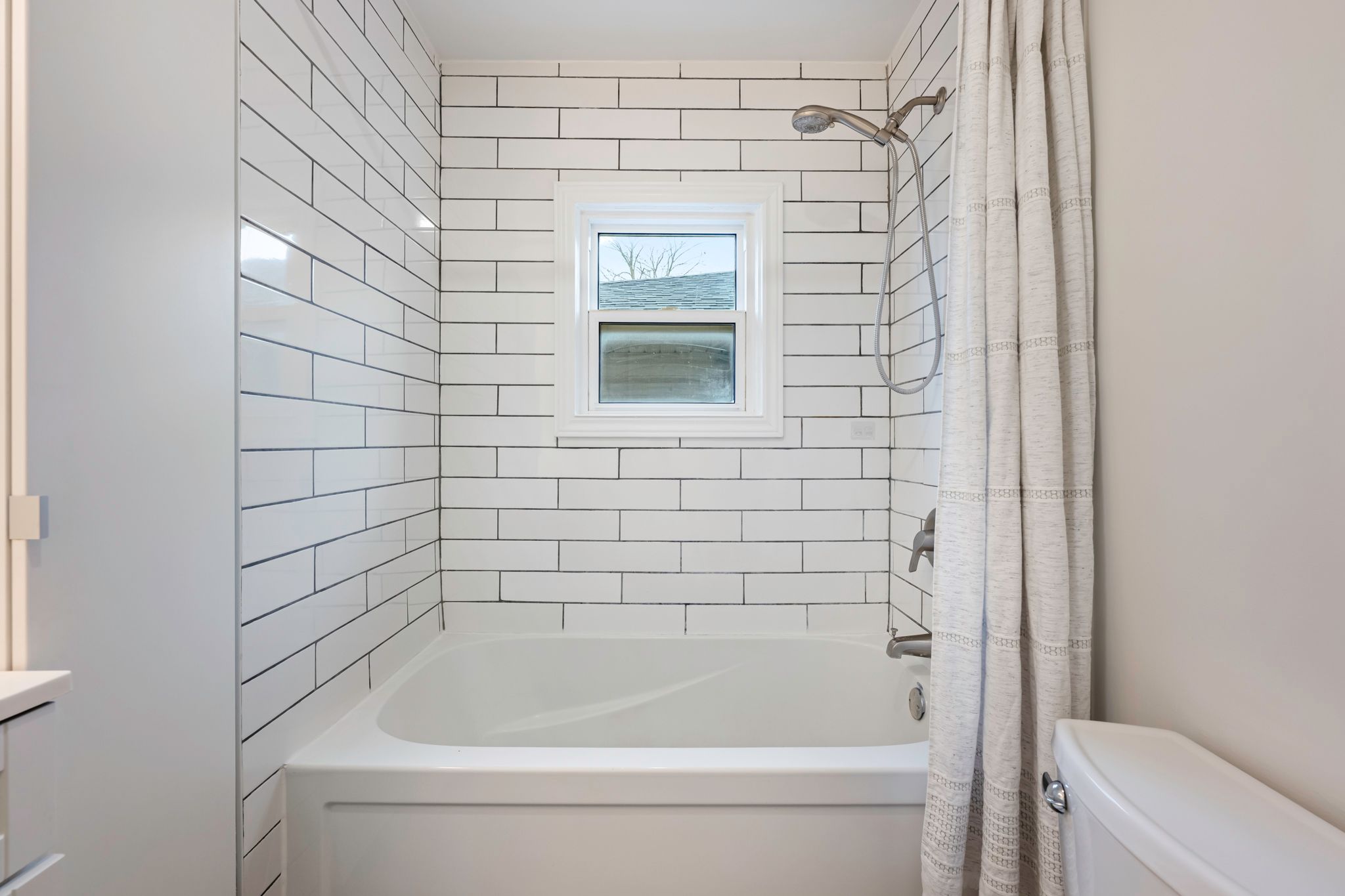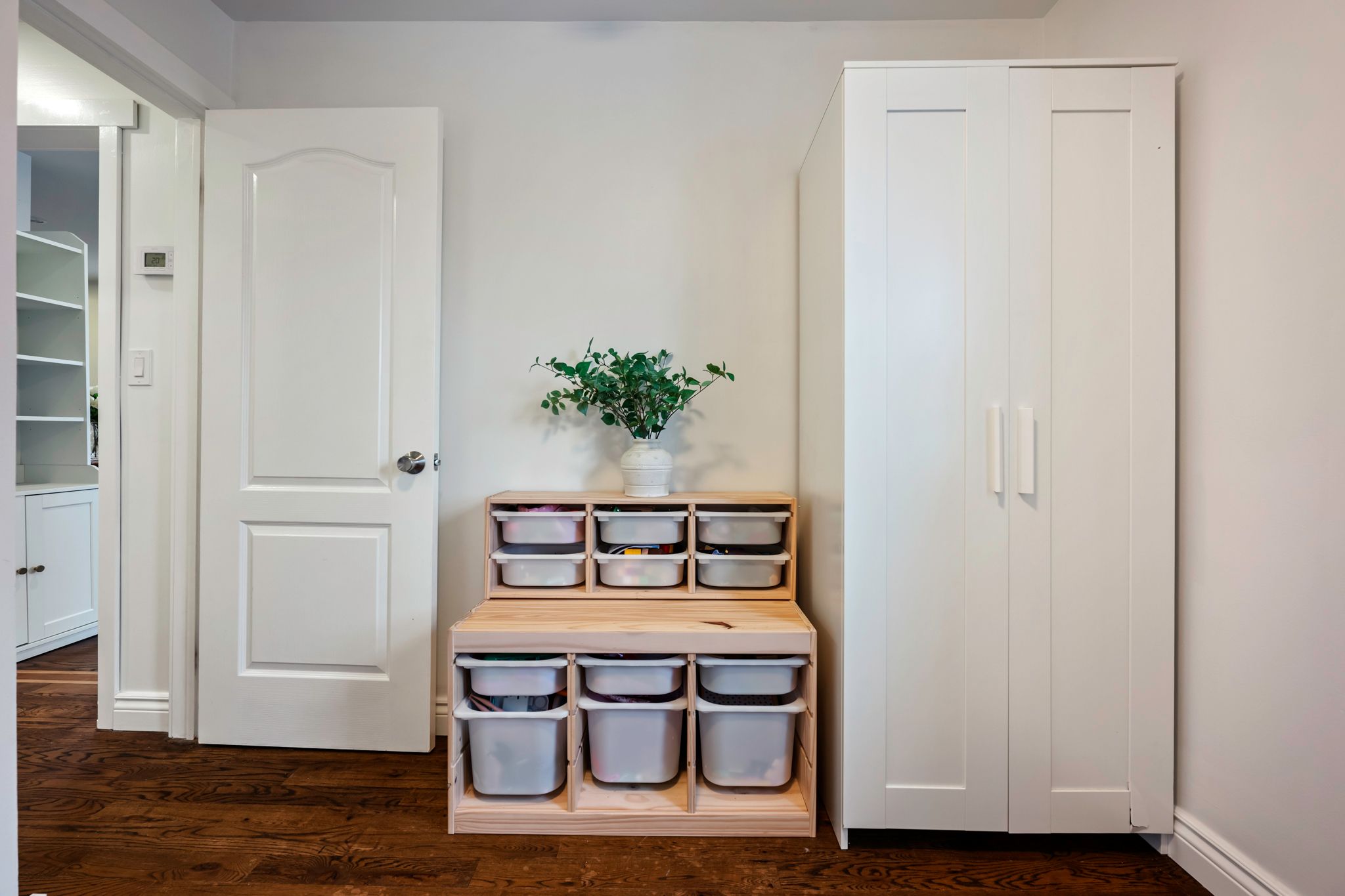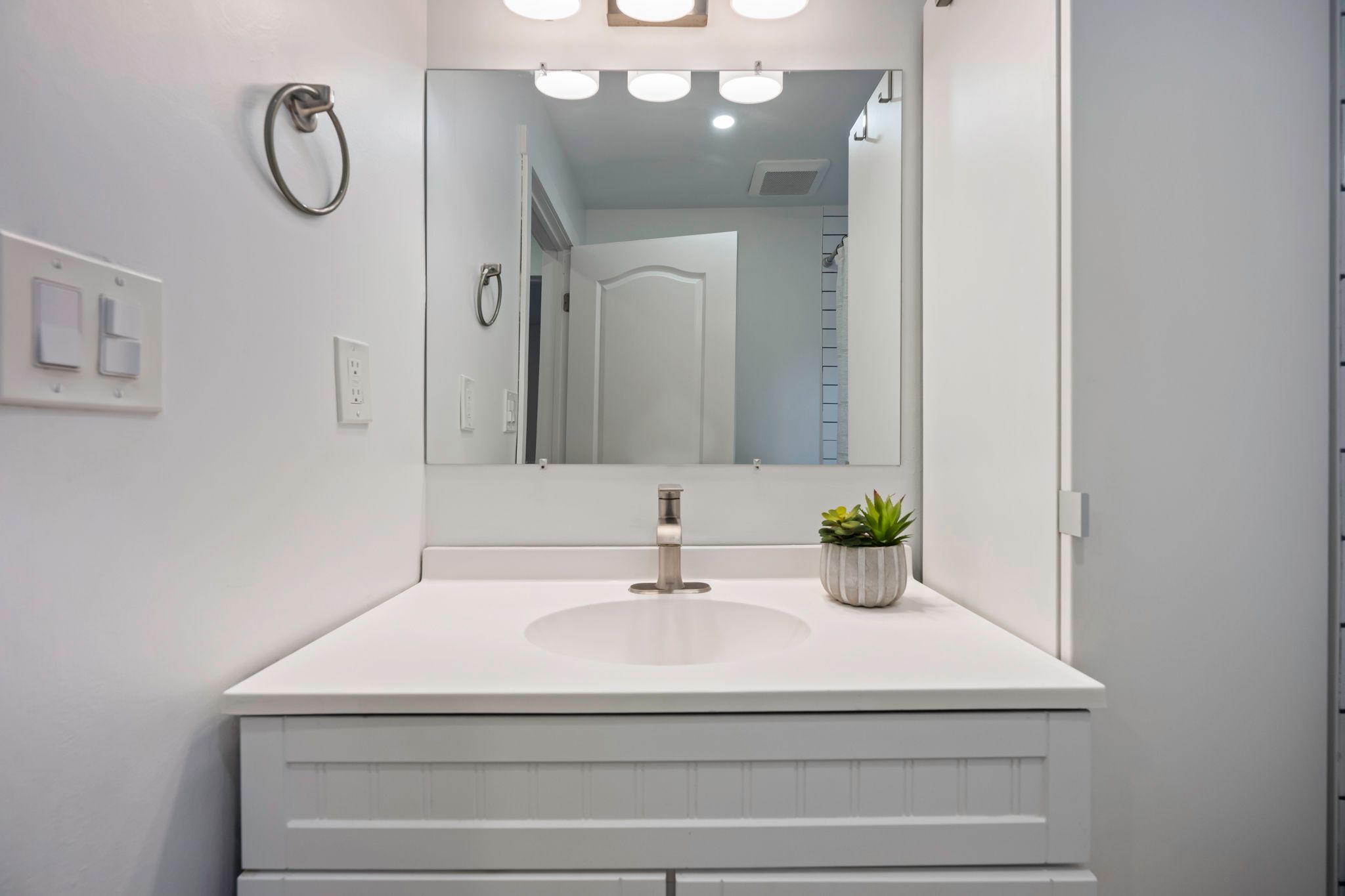 • Tastefully renovated bathroom with contemporary finishes and warm hardwood flooring.