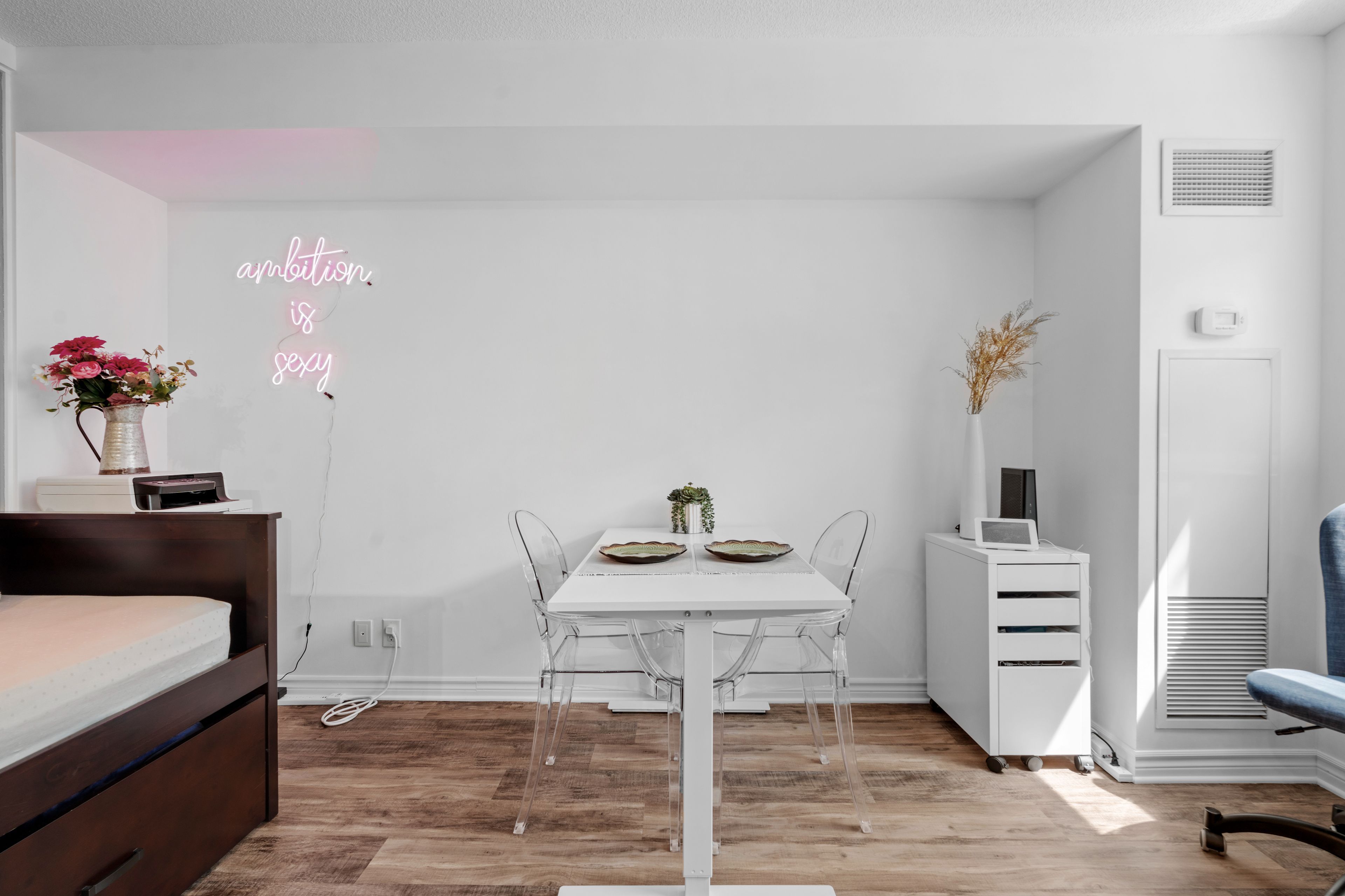 • Flexible living room space ideal for home office or guest room.