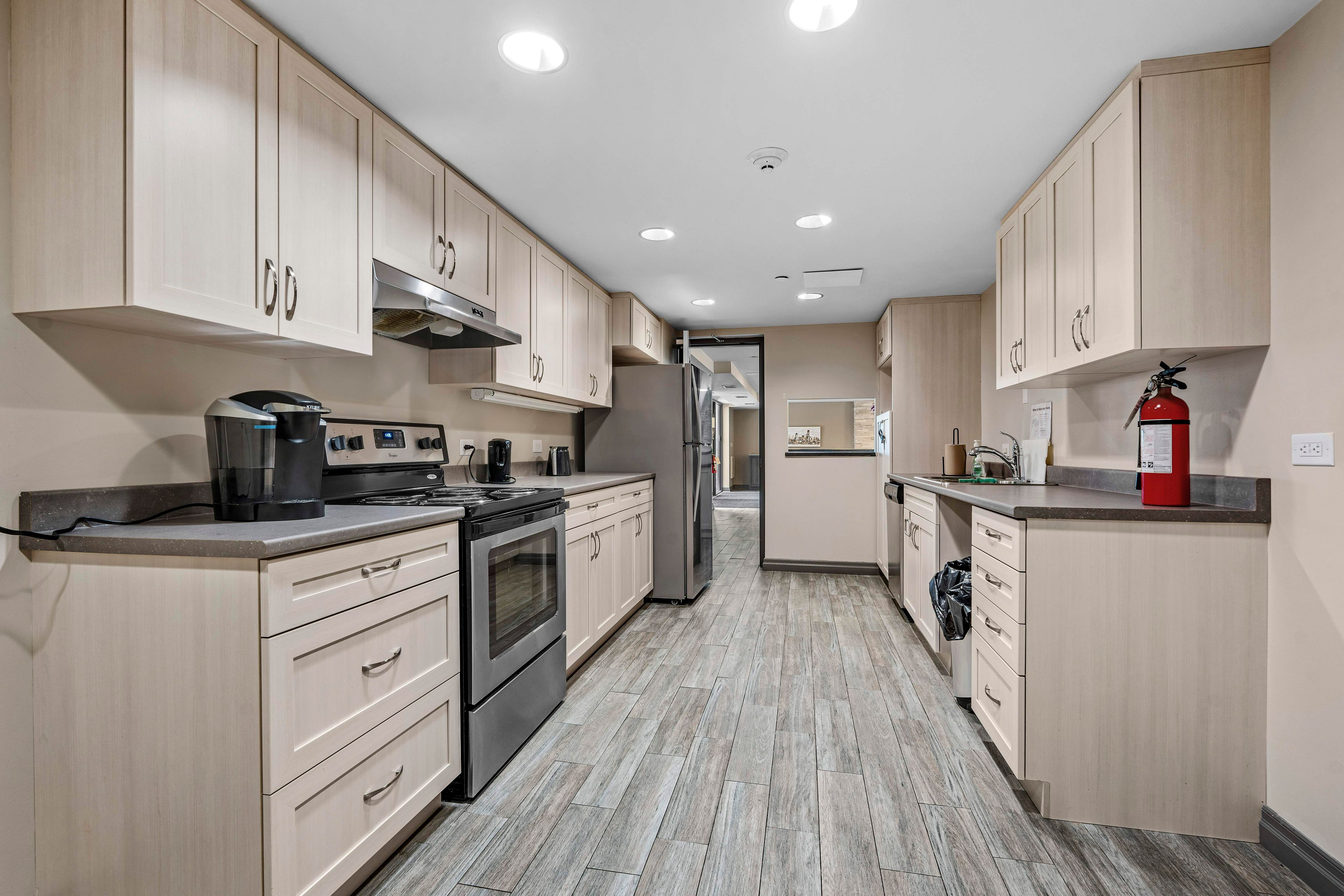 • Stylish kitchen with updated appliances and contemporary decor.