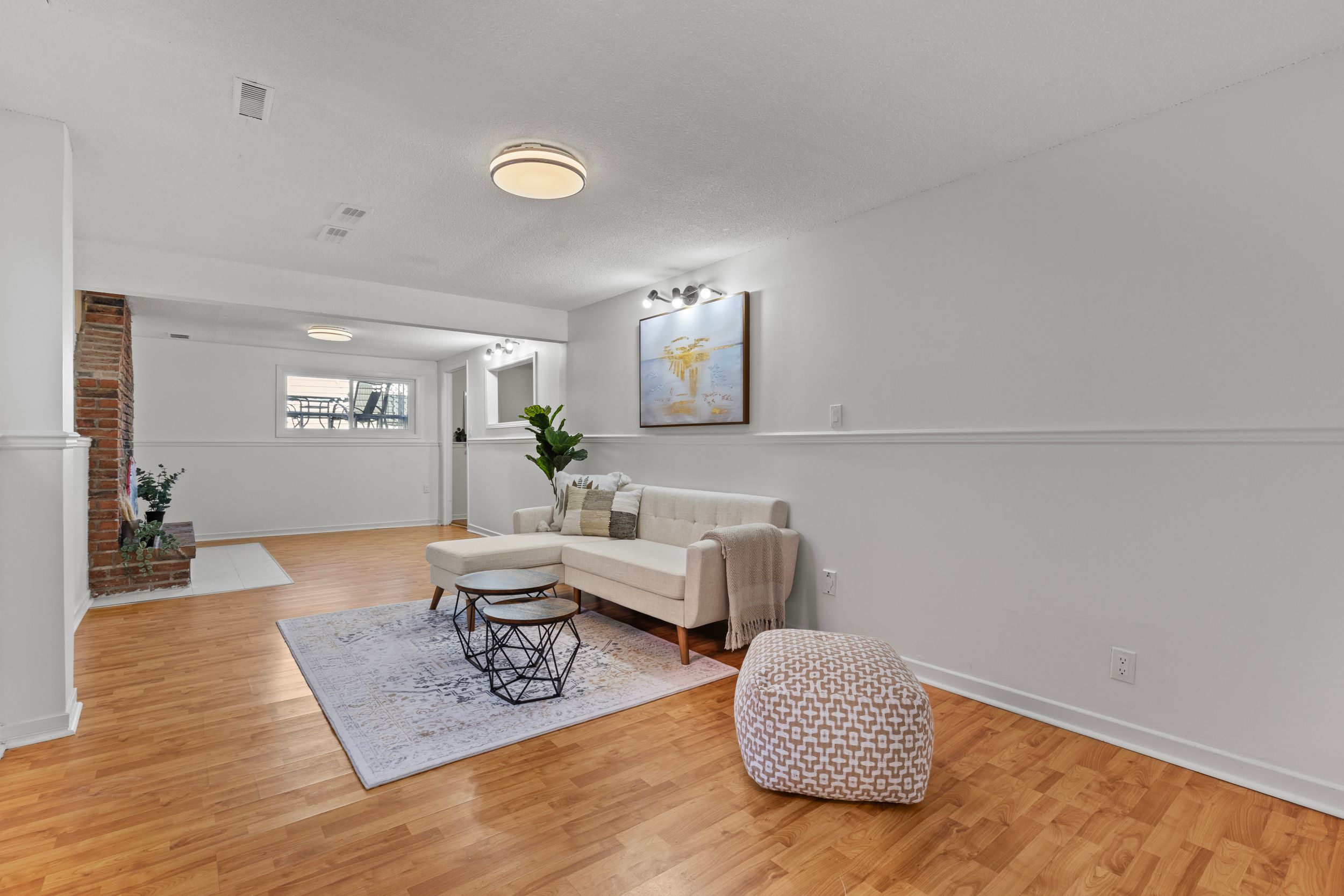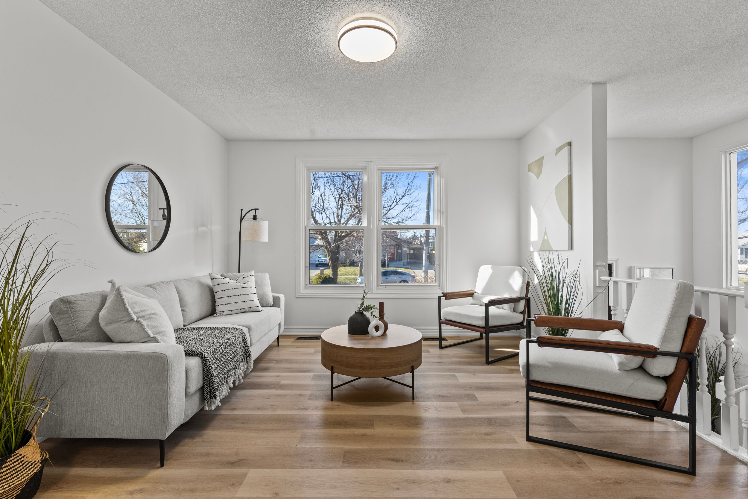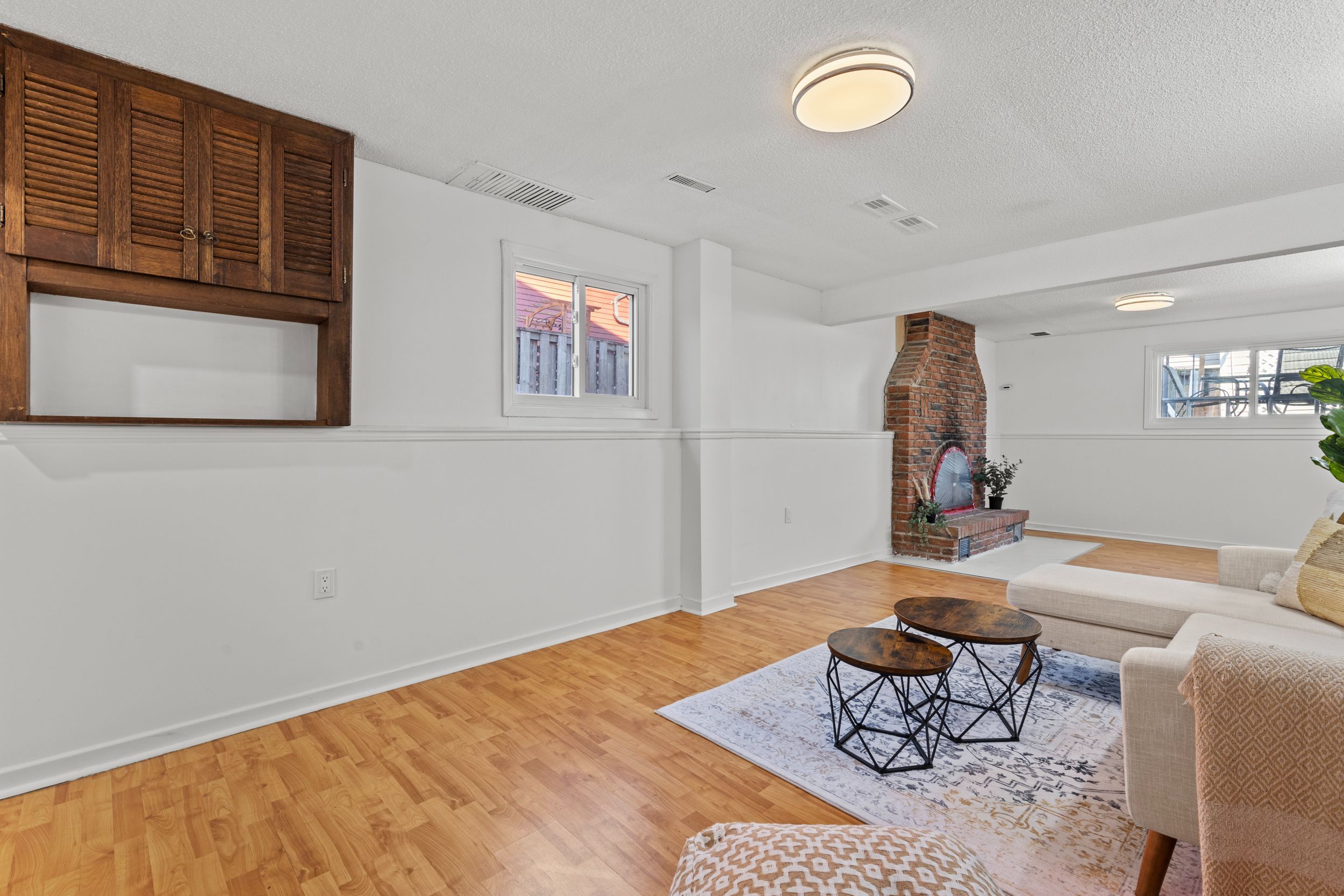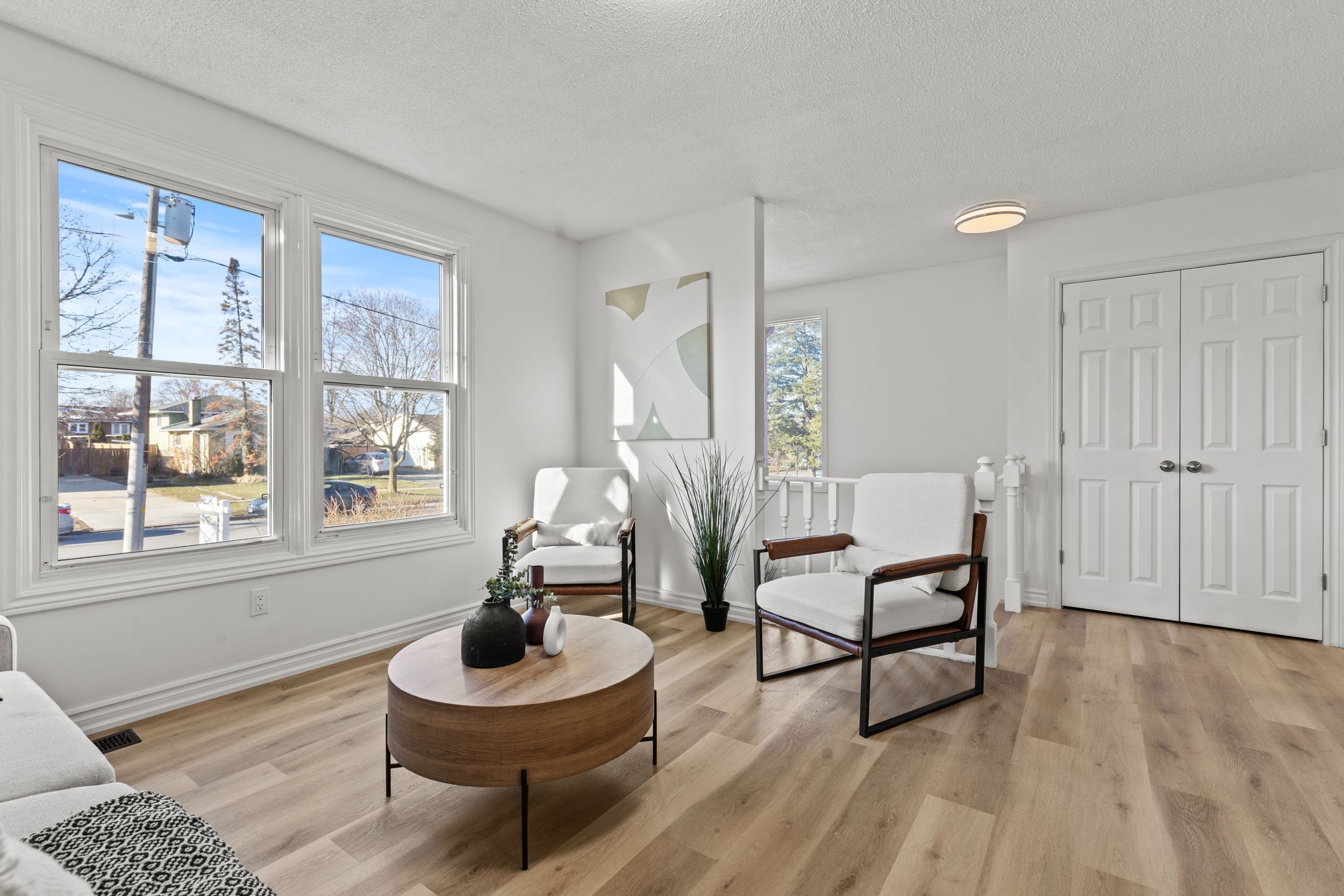 • Bright living room with large windows for plenty of natural light.