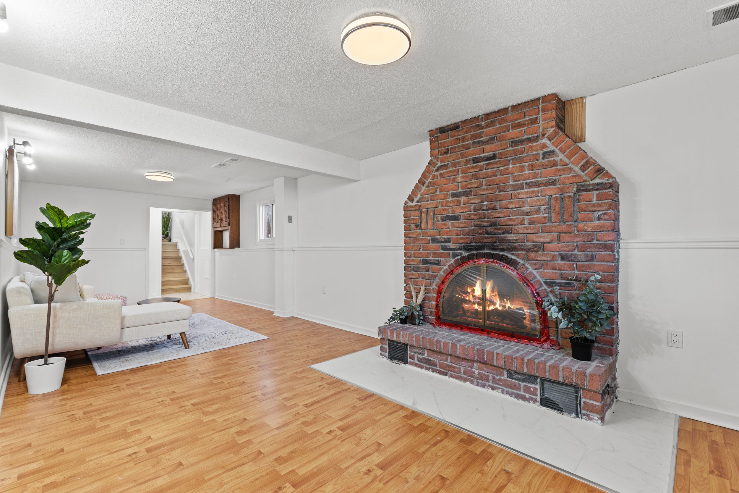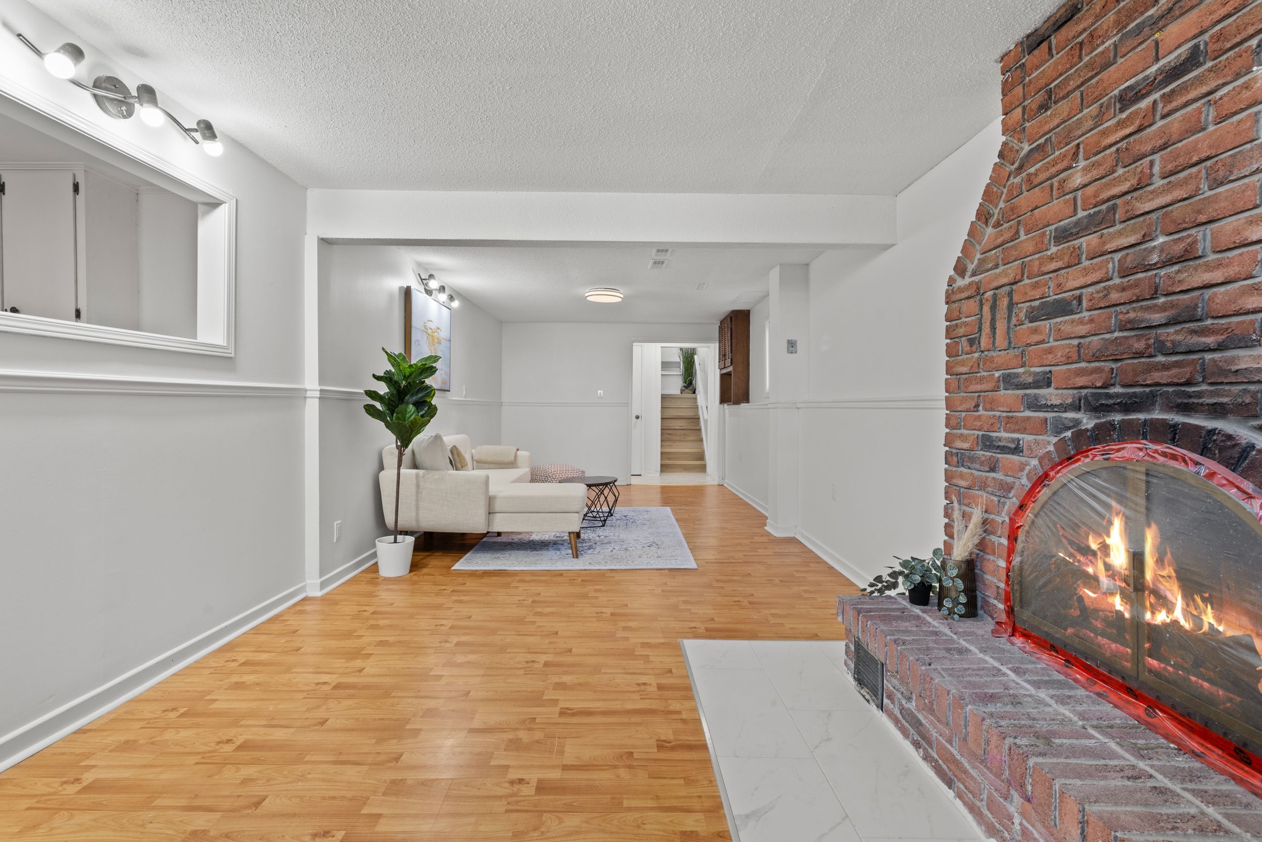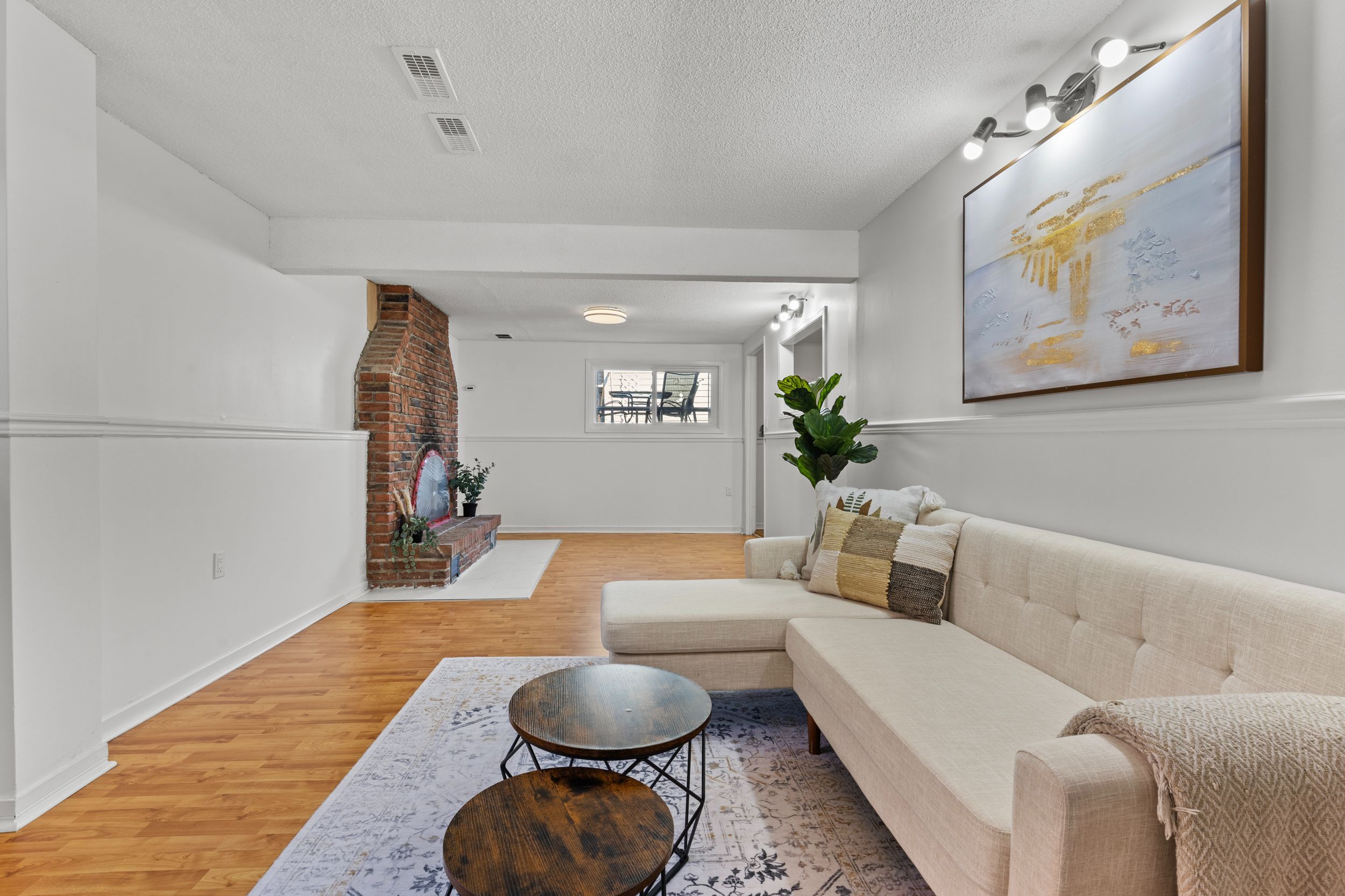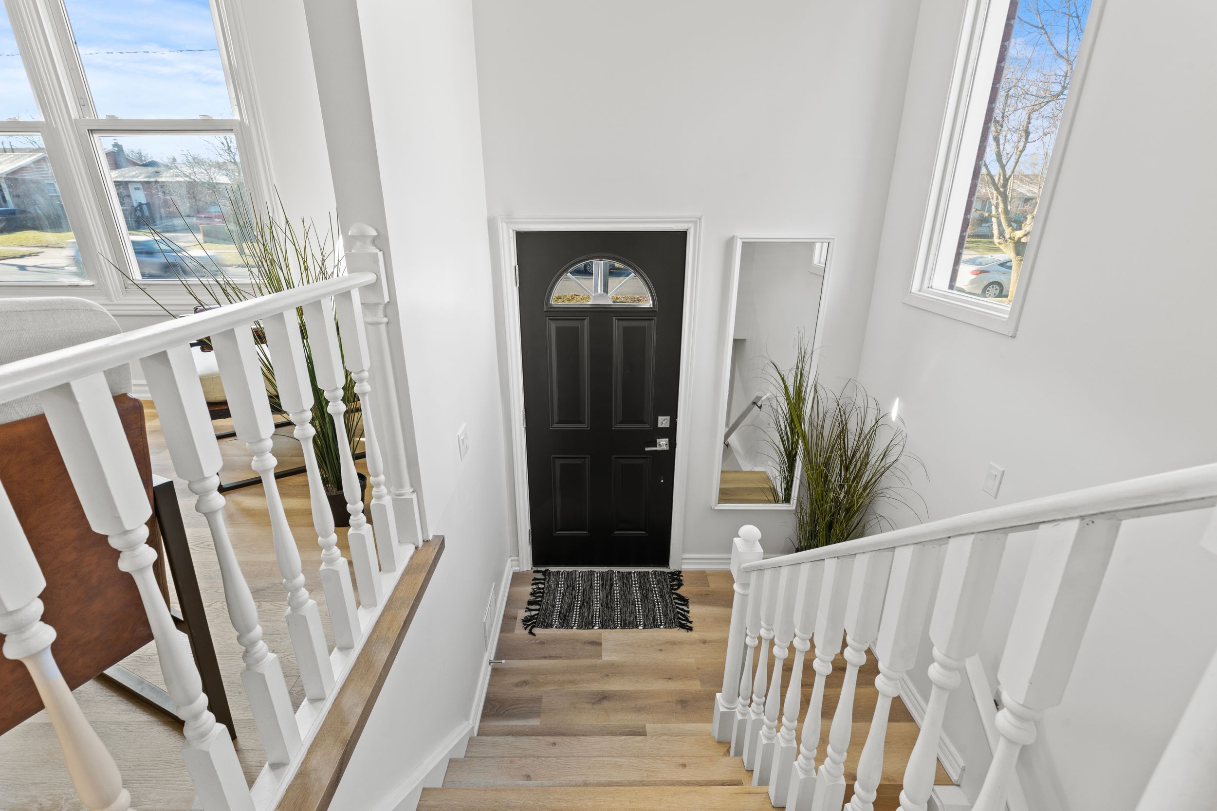 • Bright living room with large windows for plenty of natural light.