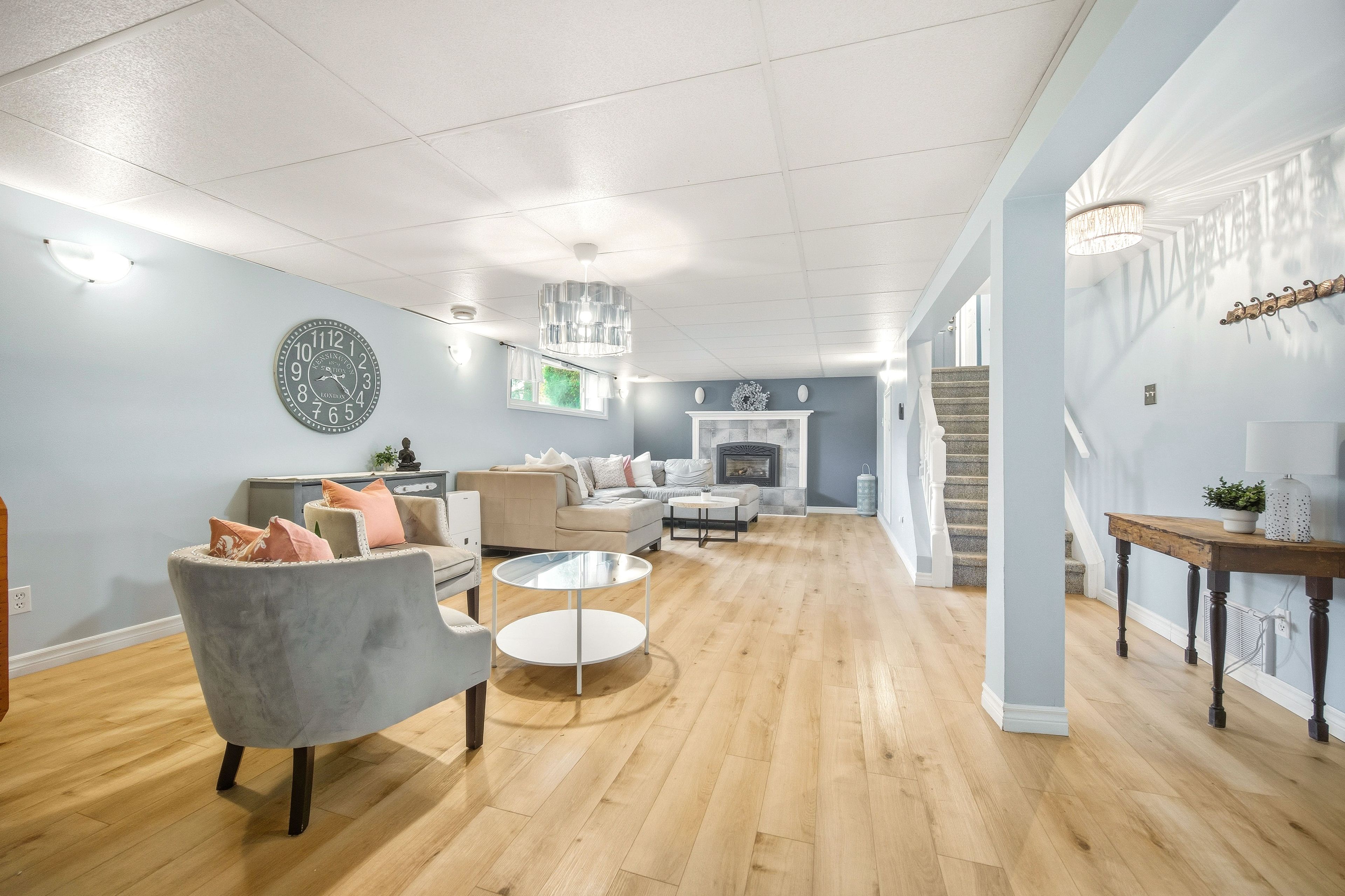 • Fully finished basement with two additional bedrooms and a gas fireplace.