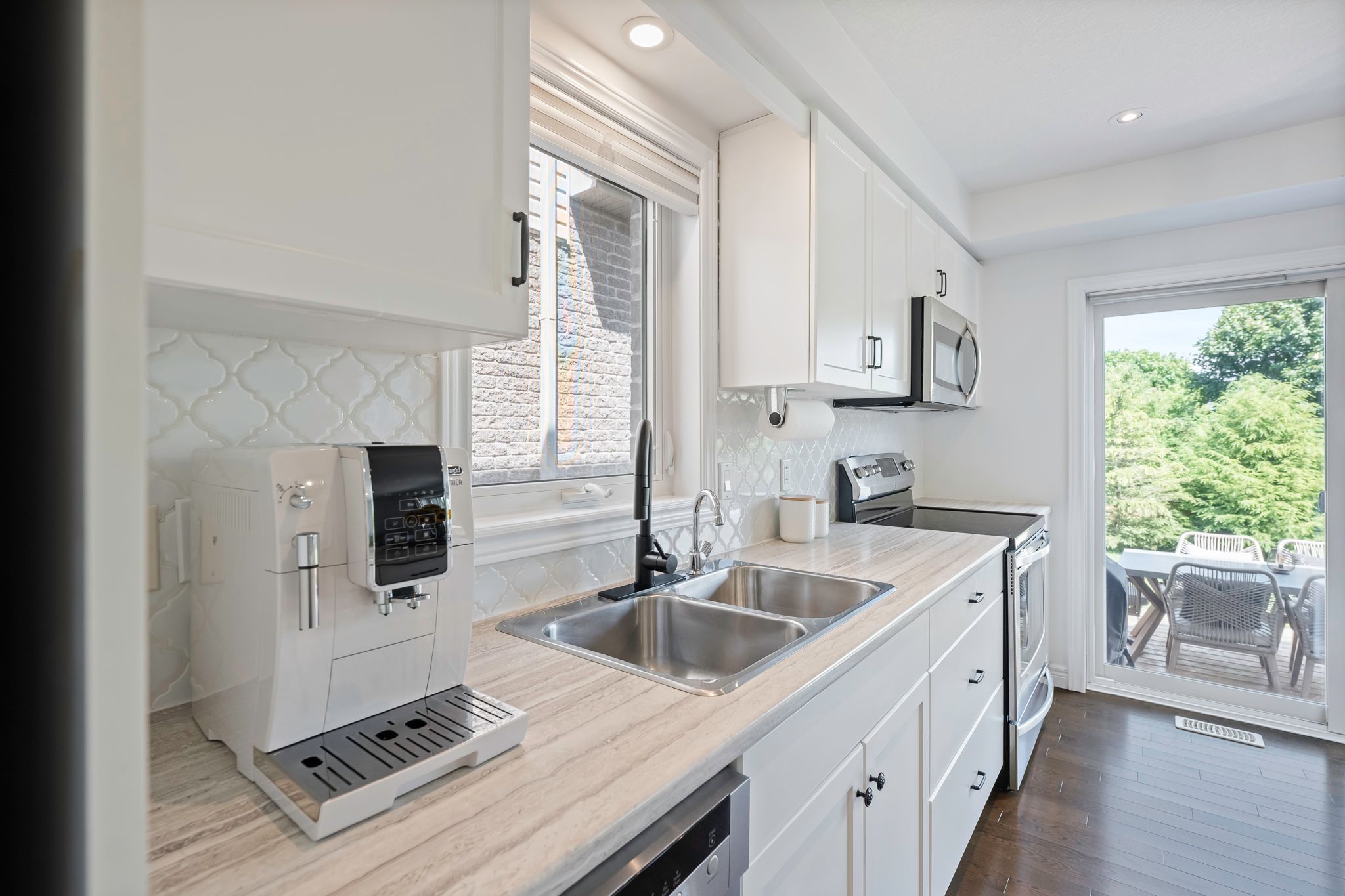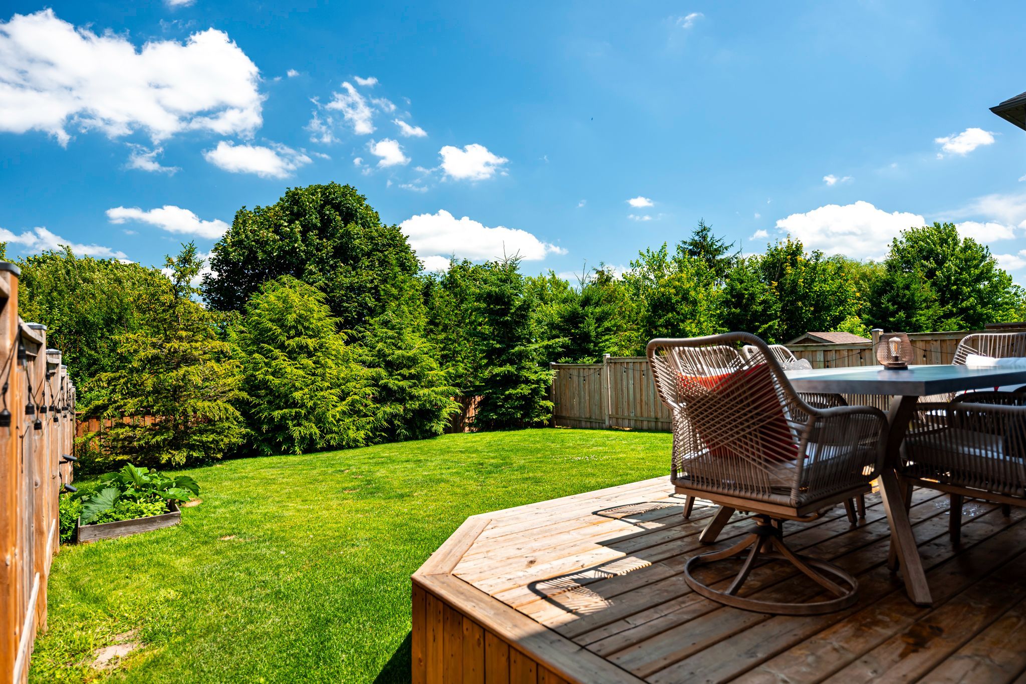 • Well-kept home in a private, green backyard surrounded by mature trees.