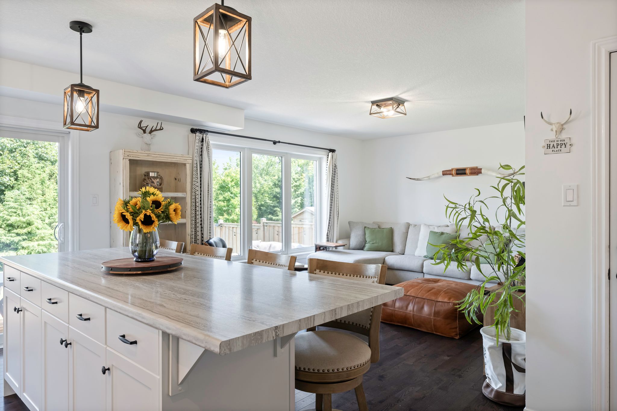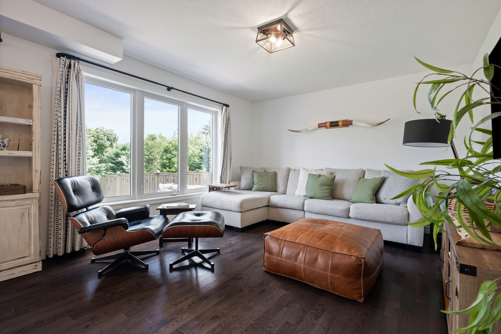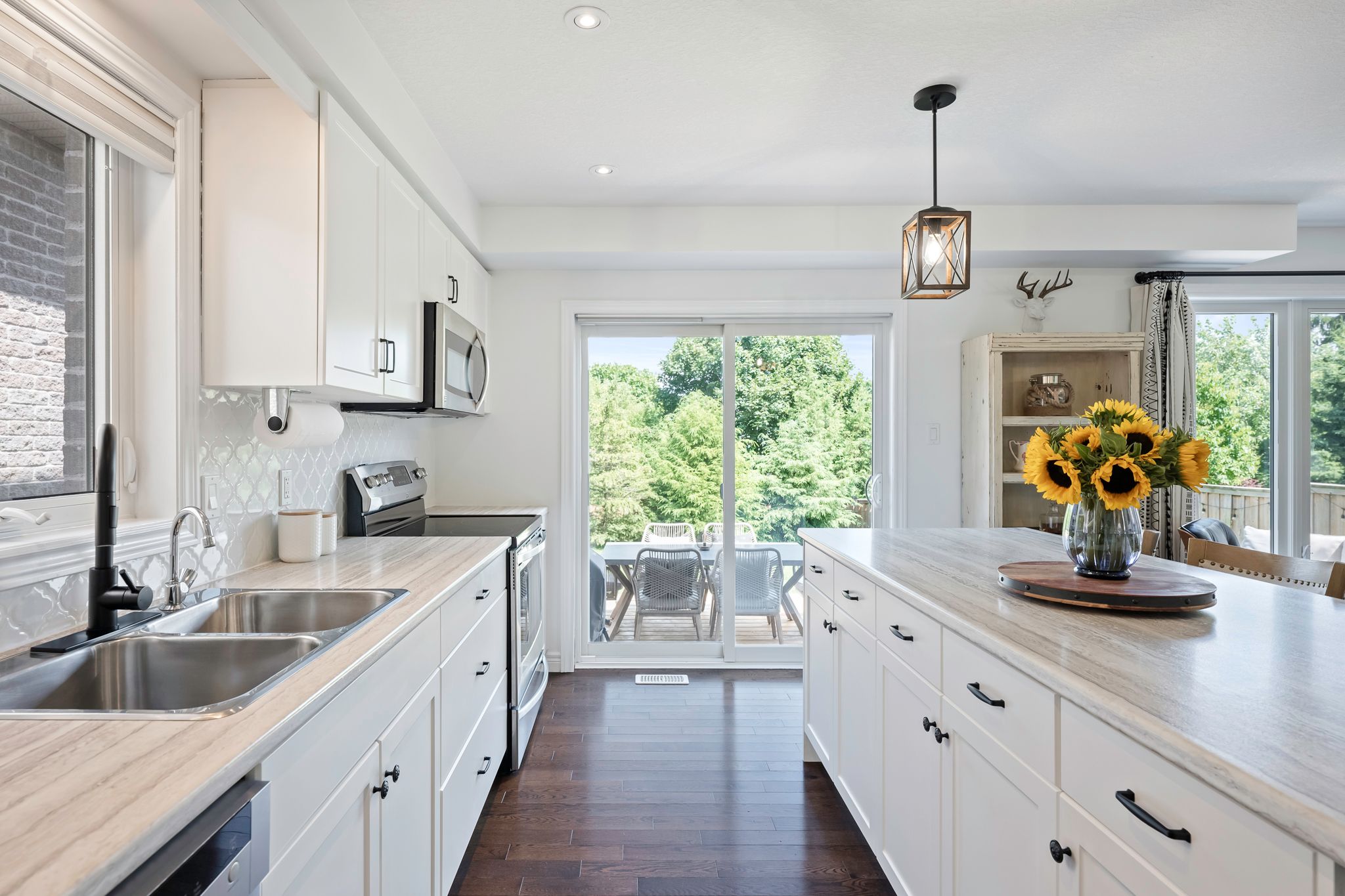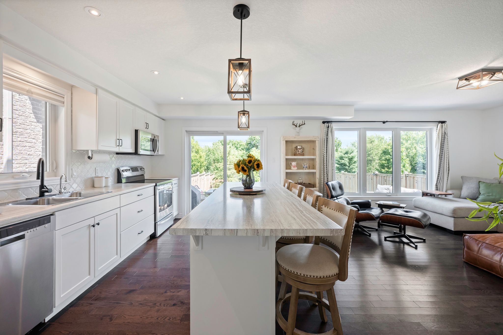Set in grand valley's mayberry hill community, 121 taylor drive is a well-kept thomasfield home with a backyard that stands out. Fully fenced and framed by large mature trees, the space feels private, green, and far less exposed than you expect in a newer neighbourhood. There is room to relax on the deck, room for kids or pets to run, and a backdrop that makes the whole property feel calmer. Built in 2015, this bright 3 bedroom, 3 bathroom home offers about 1,670 square feet of finished living space with a layout that feels open, practical, and easy to live in. Hardwood and tile run through the main floor, and large rear windows bring in natural light while keeping the backyard in view. The eat-in kitchen is clean and functional with white cabinetry, stainless steel appliances, tile backsplash, a large island with seating, and a walkout to the deck. Upstairs, you'll find three good-sized bedrooms, including a spacious primary with a walk-in closet and great natural light. The finished basement adds extra flexibility for a rec room, home office, workout area, or play space, along with another bathroom and useful storage. With a double car garage, modern finishes, and a backyard that gives you real privacy, this is a strong option for first-time buyers and downsizers looking for a move-in-ready home in grand valley.