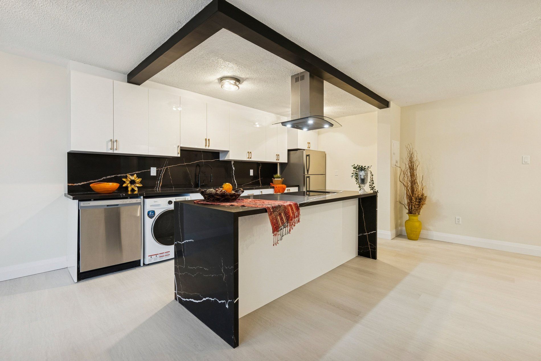 Welcome to this beautifully renovated three-bedroom residence, where thoughtful upgrades and modern finishes come together to create a home that truly stands out. Highlighted by a fully redesigned kitchen featuring an expansive waterfall island, striking quartz countertops and backsplash, and premium brand-new, never-used appliances. Gleaming new flooring flows seamlessly throughout the unit, adding warmth, continuity, and a refined contemporary feel. The generous layout offers exceptional living and dining space, ideal for entertaining or everyday comfort. Three spacious bedrooms provide excellent flexibility for families, professionals, or those working from home. Striking the perfect balance of space, quality, and modern design, all within a condominium setting that offers convenience and ease.