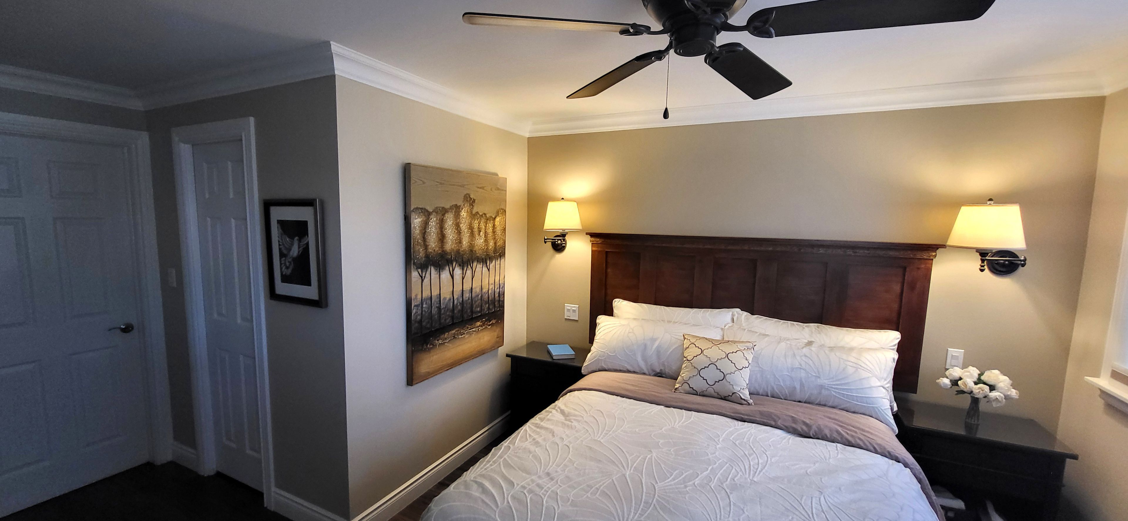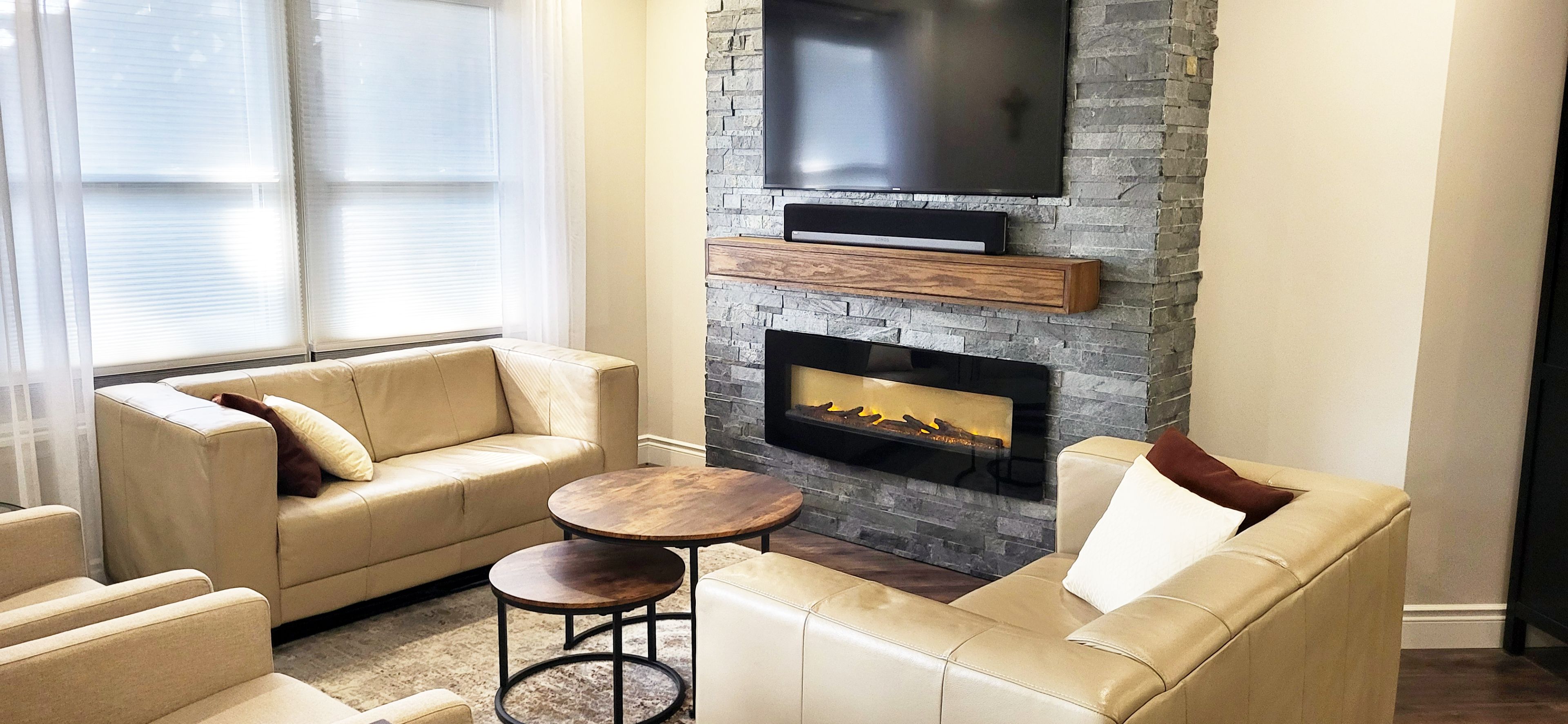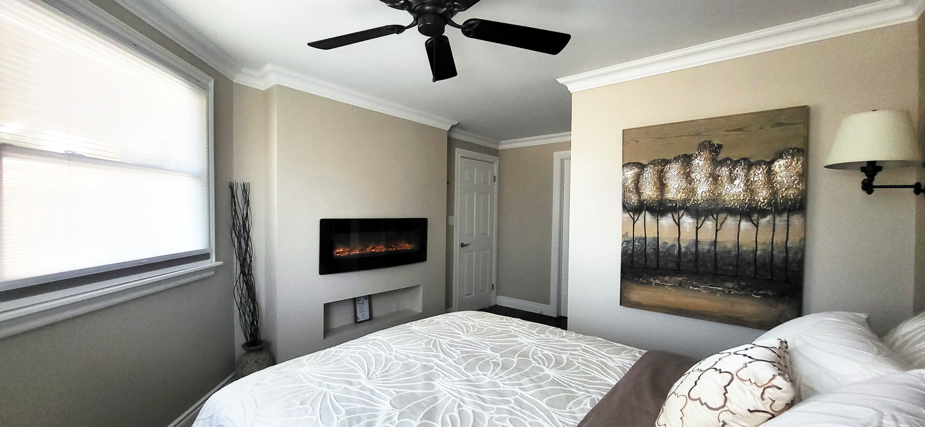• Spacious primary bedroom with electric fireplace and spa-inspired ensuite.