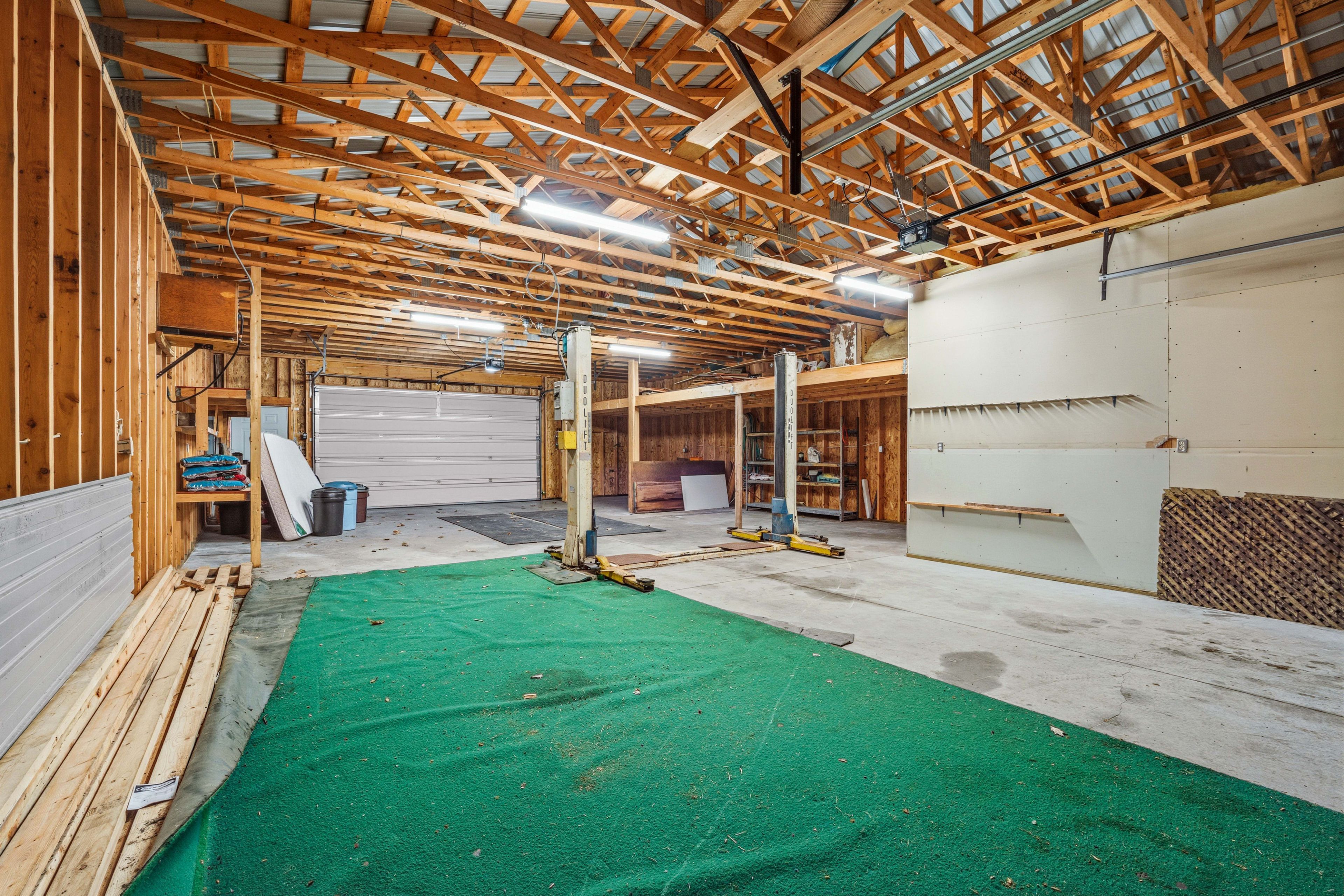 • Impressive detached garage/shop with vehicle lift, perfect for hobbies.