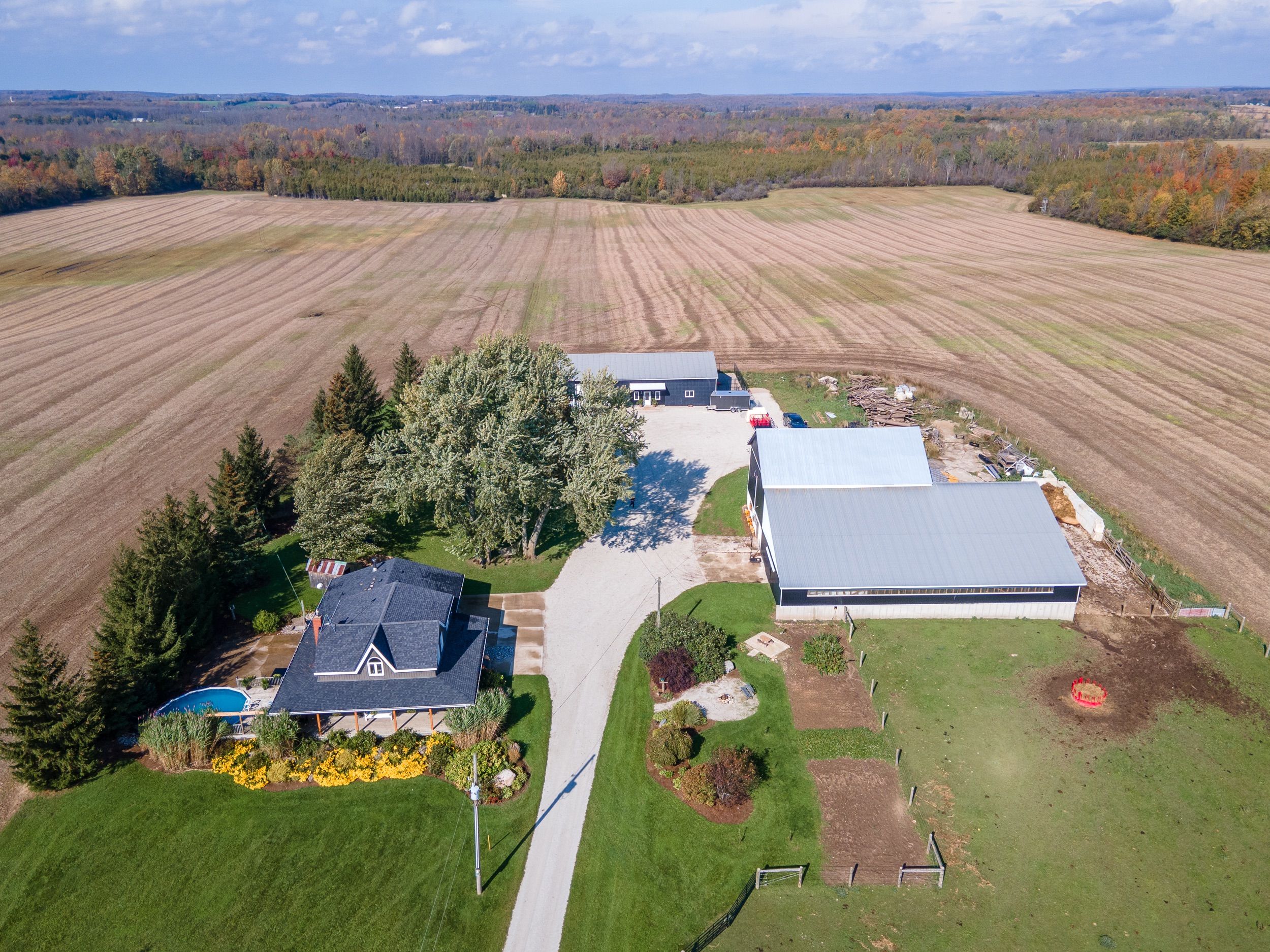 Exceptional modern working cattle farm just minutes from tara. This private 100-acre property offers approximately 80 workable acres and 40 acres of well-fenced pasture with high-tensile fencing, all set against a backdrop of sweeping countryside views. The updated two-storey farmhouse blends comfort with rural character, highlighted by a wraparound porch and peaceful views. Inside, enjoy an open-concept renovated kitchen and family room, along with a practical mudroom entry. The upper level features three bedrooms, including a spacious primary suite with a three-piece ensuite and double sinks, a separate four-piece main bath, and a lower-level laundry room. Currently operating as a cow-calf operation, the farm is well equipped with an upgraded 40' x 52' bank barn, a 40' x 90' pole barn with an attached 44' x 16' lean-to, calf pen lean-to 44' x 22' and a separate shop 81' x 40' insulated outbuilding. The setup features a 100 ft. Feed rail and 4-acre fenced yards. This versatile space also includes a heated shop with a 16. 2 ft overhead door, in-floor heating, a 20' x 15' farm store, dog kennels, and five horse stalls designed for both efficiency and flexibility. The land itself is equally impressive, offering a scenic mix of open fields, trails, a flowing creek, and mature sugar maple and cedar bush. Apple and pear trees, a woodshed, and ample parking add to the property's functionality and charm. A four-season off-grid cabin, sleeping up to seven and equipped with a generator and cooktop, also operates as a successful vacation rental. A turnkey farming opportunity that seamlessly combines productivity, lifestyle, and natural beauty.