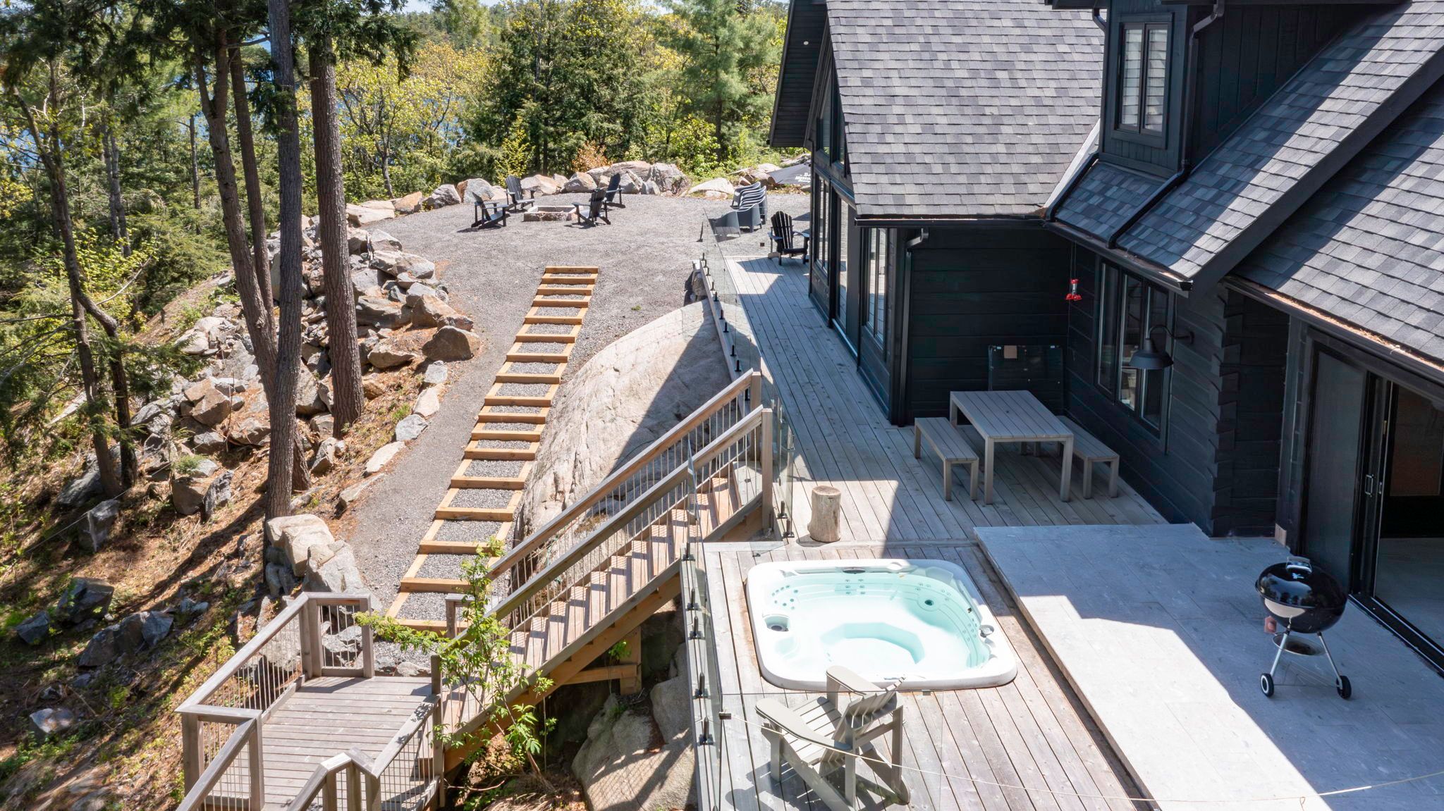 • Lakeside hot tub and screened Muskoka room for year-round enjoyment.