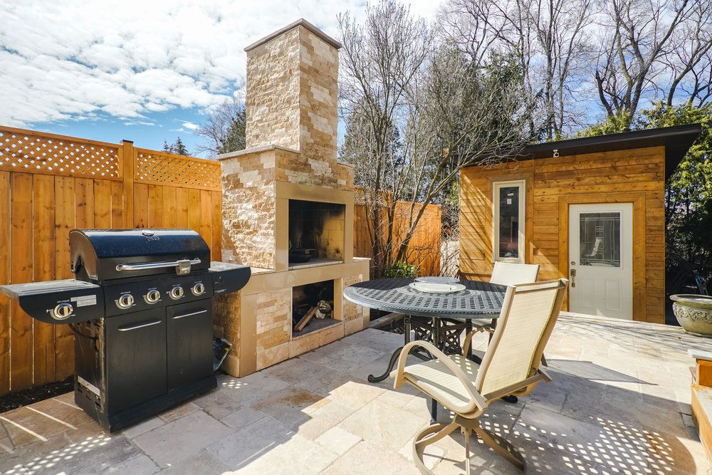 • Private backyard with tiered deck and custom BBQ for great outdoor living.