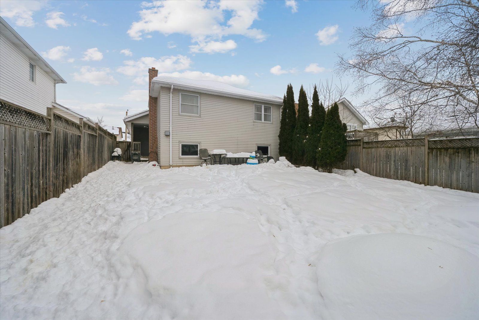 • Large fenced backyard ideal for summer barbecues and relaxation.