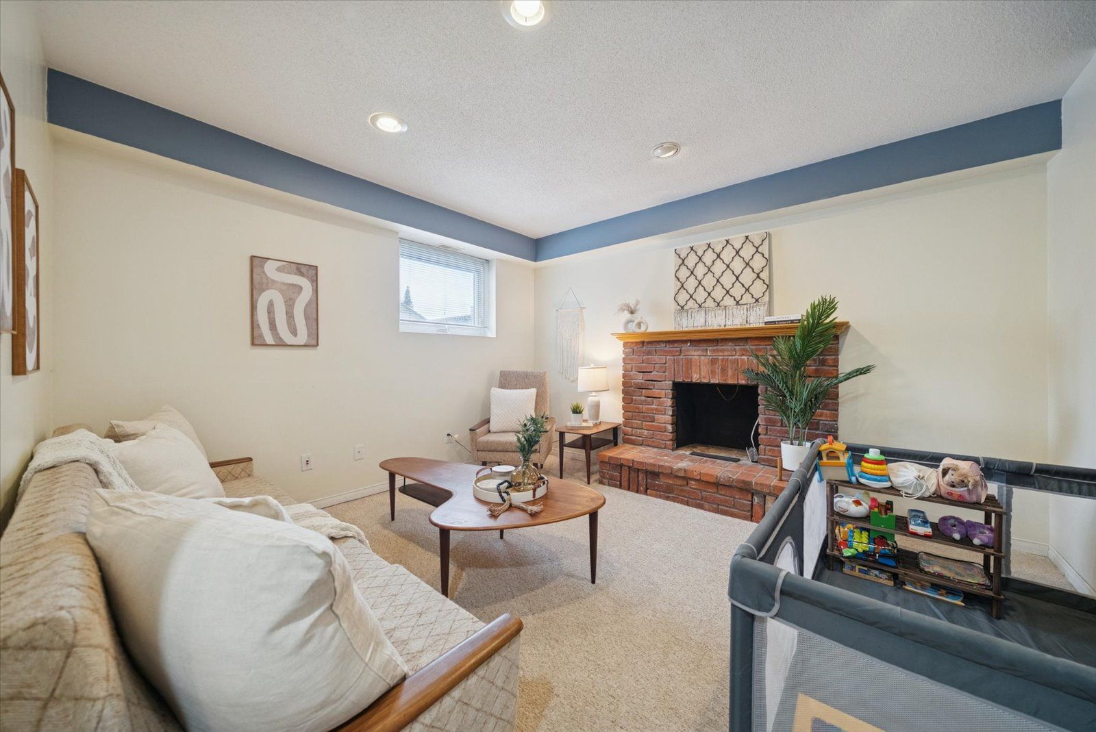 • Cozy lower level rec room perfect for guests or family time.
