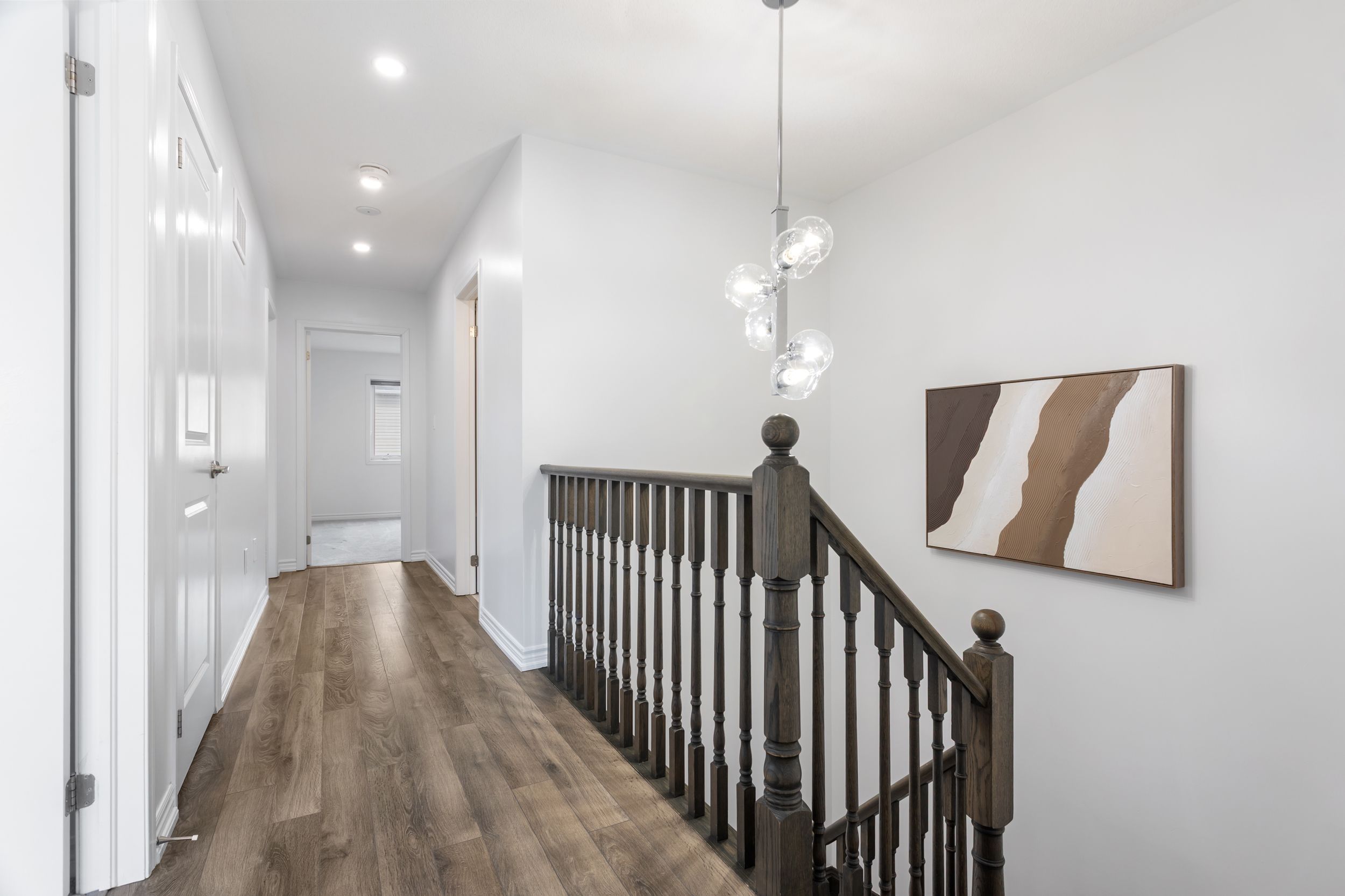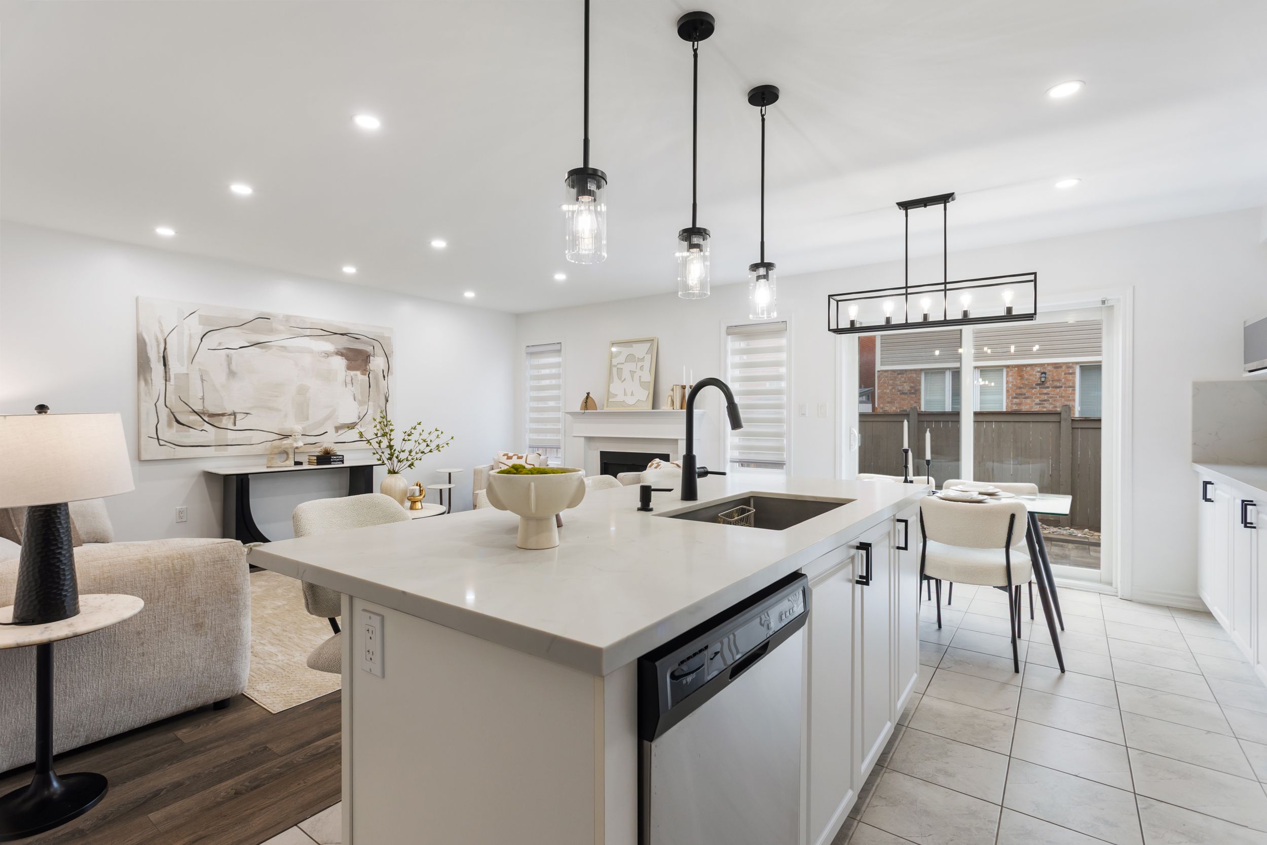 Welcome to this beautifully maintained mattamy-built townhome in milton's highly desirable ford neighbourhood, located in the sought-after hawthorne south village community. Offering a perfect blend of modern finishes and functional living space, this home is ideal for families and professionals alike. Featuring 4 spacious bedrooms and 3 bathrooms, this home provides plenty of room for comfortable everyday living. The main floor includes a versatile den, perfect for a home office or study area. The open-concept layout is enhanced by stylish laminate flooring throughout the main living areas, smooth ceilings on the main floor, and an elegant oak staircase. The upgraded kitchen is a standout feature, complete with extended cabinetry, stainless steel appliances, a modern backsplash, and ample storage-ideal for both daily use and entertaining. Additional upgrades include contemporary tile finishes and thoughtful details throughout. Situated in a vibrant, family-friendly community close to parks, top-rated schools, shopping, and all amenities, this home offers exceptional value in one of milton's most desirable neighbourhoods. A fantastic opportunity to own in hawthorne south village-don't miss it!