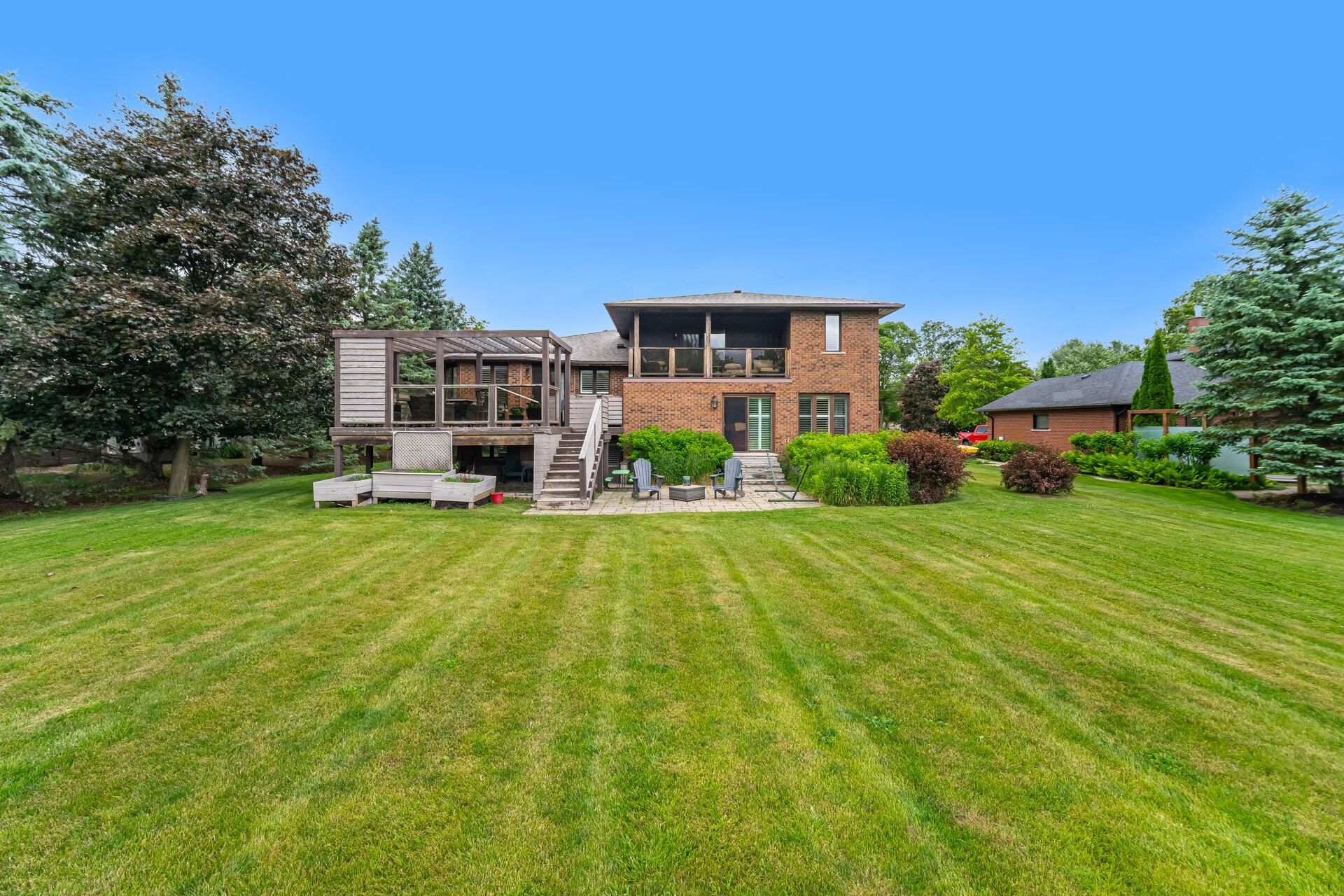 Proudly owned by the original family, this spacious 5-level sidesplit sits on nearly an acre in the highly coveted glen williams community. With plenty of room to grow, flexible living spaces, and timeless charm, this home is ideal for families of all sizes. Step inside the formal front entrance into a grand foyer illuminated by a skylight above. Double french doors lead to a bright, spacious family room, overlooking the elegant formal dining room, which also features its own set of french doors and a pocket door opening into a stunning eat-in kitchen, a true heart of the home. Thoughtfully designed for both everyday living and entertainment, the upgraded eat-in kitchen boasts granite counters, high-end appliances, two sinks, pot lights, ample cabinetry, and a walkout to the backyard deck. A secondary front entrance leads to a potential in-law suite, complete with a generous living area, kitchenette, a well-sized bedroom with a 4-piece ensuite, and direct walk-out access to the backyard offering privacy and comfort for extended family or guests. Upstairs are three bedrooms with built-ins, a sky-lit 4-pc bath & laundry. The double-door primary suite is a private retreat with a large walk-in closet, a 5-piece ensuite, and a walk-out to a peaceful private balcony overlooking the yard. The lower level with its own separate entrance offers a large open-concept living space. It includes an enclosed den and a large walk-in pantry. With its unique floor plan and multiple entrances, this property offers a rare opportunity to convert into three distinct living spaces, perfect for multigenerational families or income potential. All set in a charming, walkable village with a vibrant arts scene, cafés, galleries, and scenic trails. Don't miss your chance to own a one-of-a-kind property in a community that perfectly blends natural beauty, heritage character, and modern convenience.