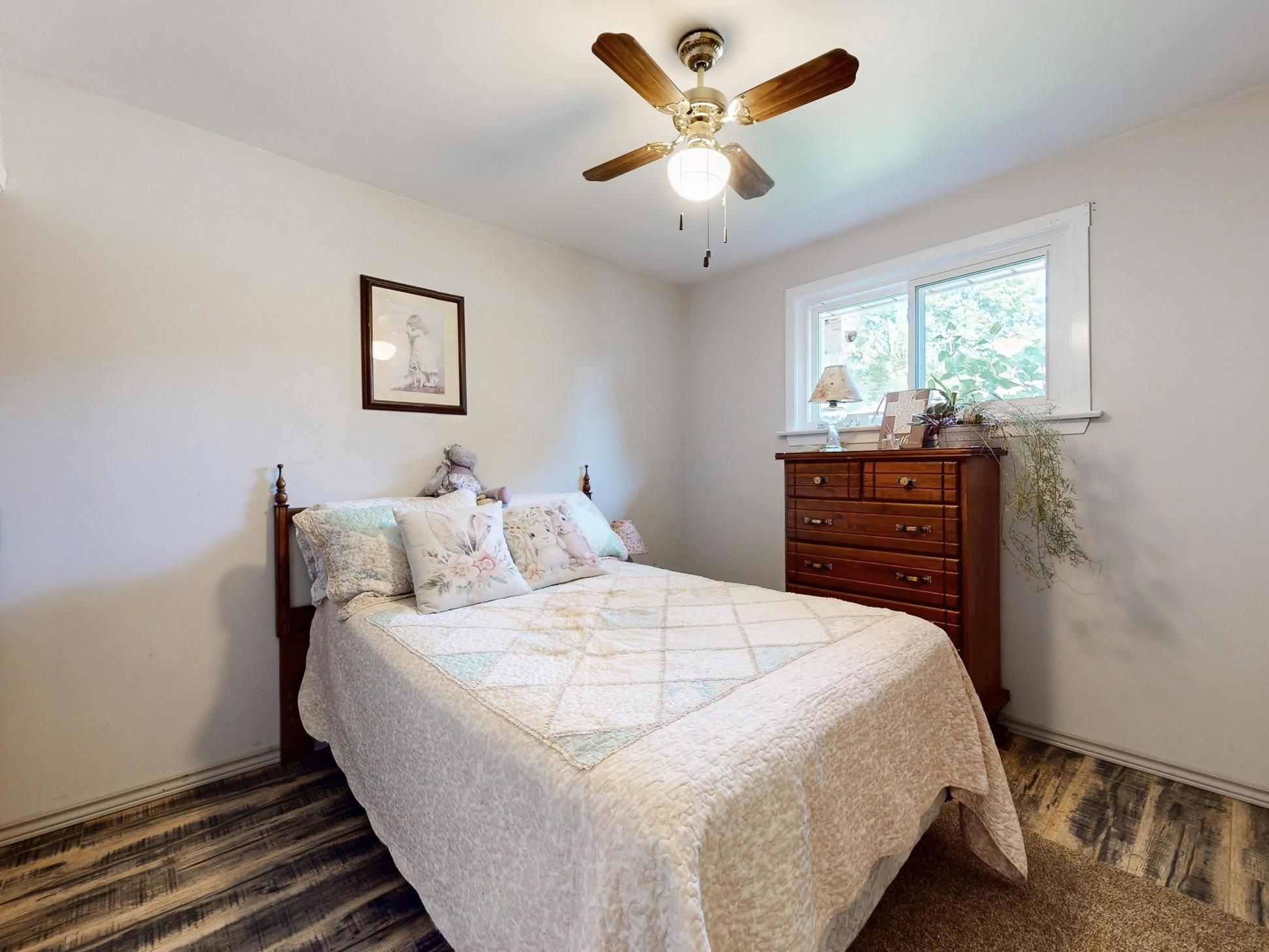 • Private yard surrounded by mature trees, perfect for gatherings.