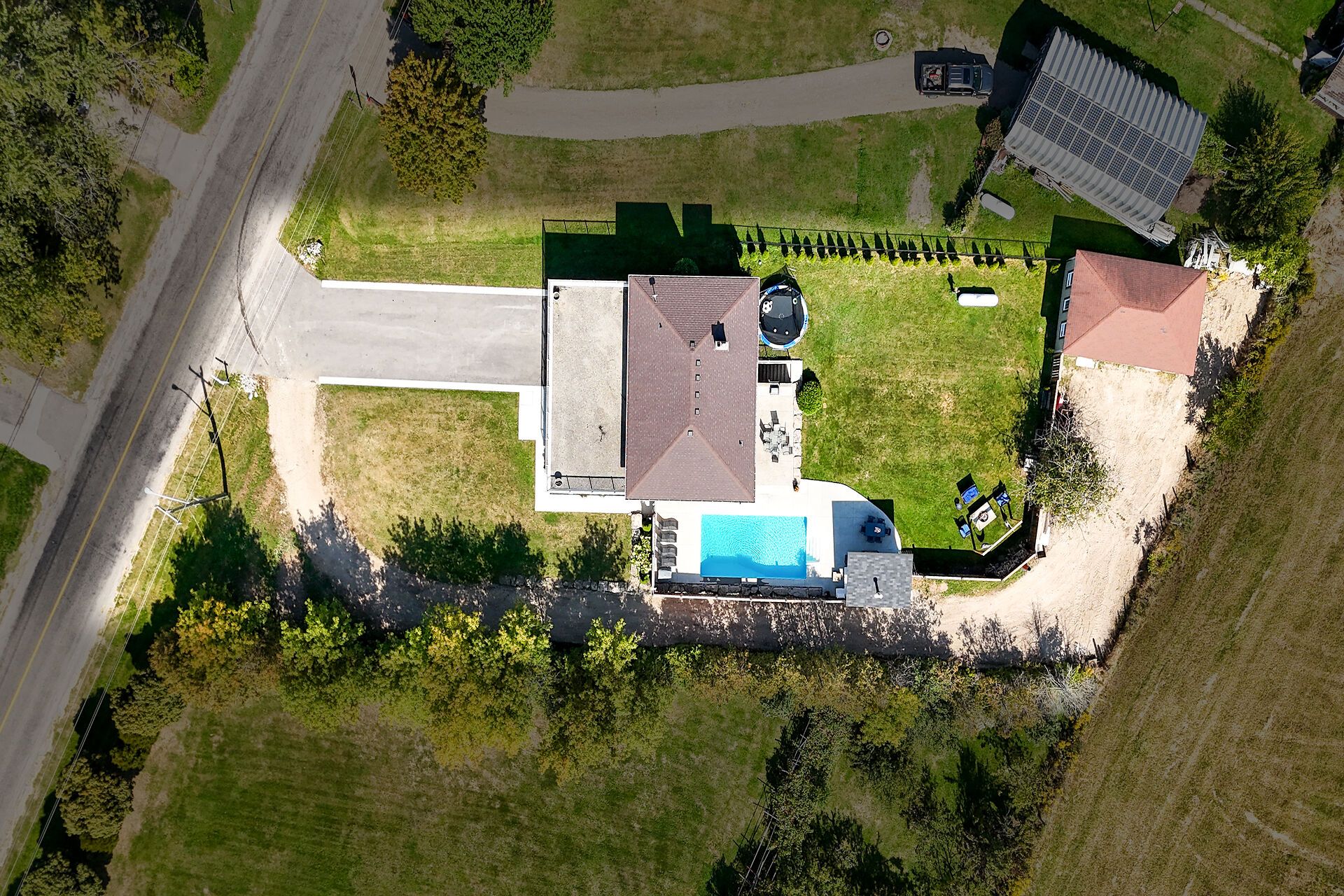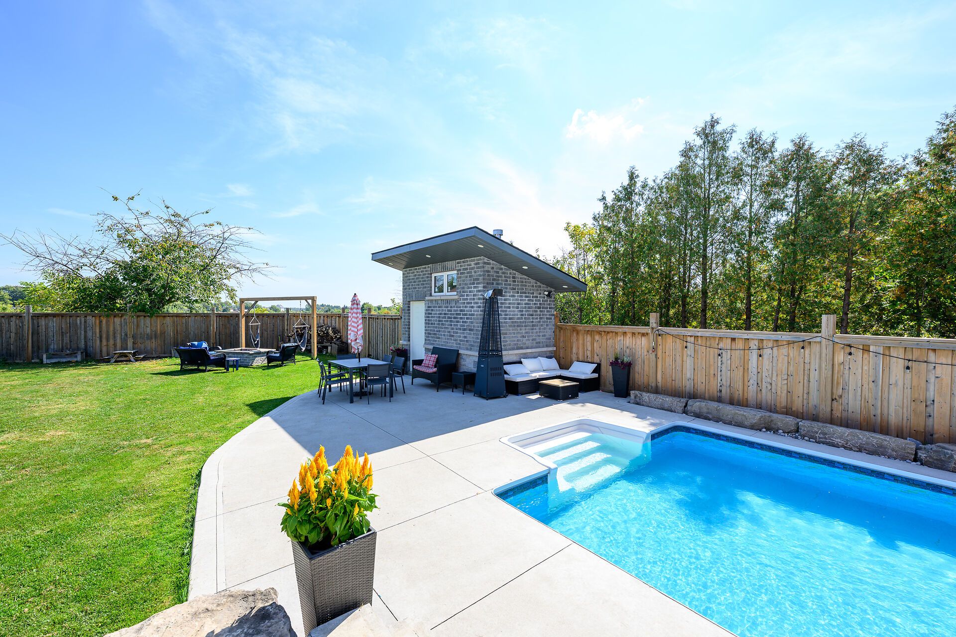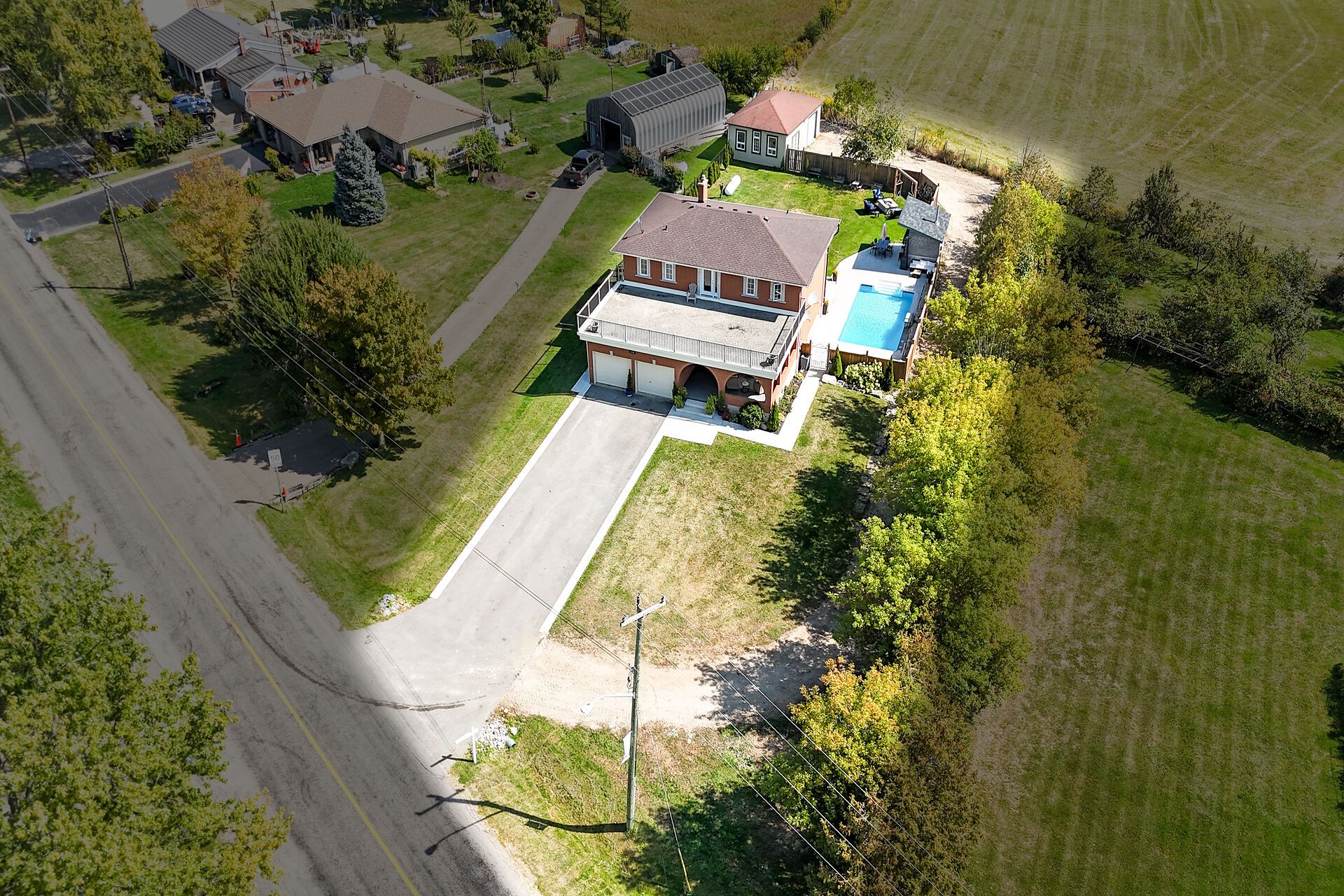 Stunning in sheffield country retreat with pool, in-law suite & workshop. Welcome to your dream country retreat in the heart of sheffield! This updated 4+1 bedroom, 4-bath home offers the perfect blend of space, style, and versatility-complete with a separate in-law apartment, heated saltwater pool, and private workshop with hydro. Enter through a covered porch into a bright 2-storey foyer. The main level features a modern eat-in kitchen with quartz counter tops and a walkout to the patio and views of fields, a spacious living room, and a cozy den with gas fireplace, plus inside access to the garage. Upstairs, the primary suite includes a walk-in closet and ensuite. Three more bedrooms and an updated 4-piece bath provide room for family. Best of all - a 800 sq ft rooftop patio for unforgettable gatherings. The finished lower level offers a self-contained in-law suite with its own walkout, kitchen, bedroom + office, bathroom, and laundry. A custom cantina/wine room adds a unique bonus. Enjoy your fenced backyard oasis with a heated saltwater pool (2020), pool shed with water and hydro, and green space. New pump for 100ft well. The detached workshop with hydro and private laneway is perfect for hobbies, storage, or a home business. All this just 13 minutes to cambridge and 25 minutes to hamilton, combining country calm with city convenience. With its in-law suite, rooftop patio, pool, and workshop, this sheffield property is more than a home - its a lifestyle!