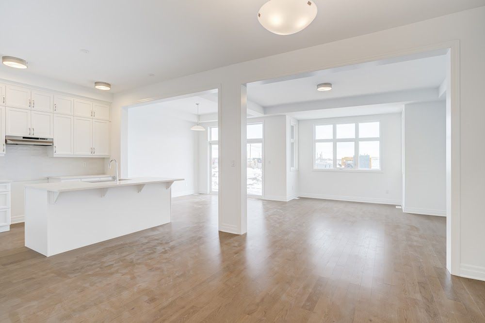Located at dundas st. E. And trafalgar in joshua creek, this mattamy "reign" model (english manor elevation) offers 2,758 sq. Ft. Including 70 sq. Ft. Open to below, with geothermal energy for long-term efficiency and comfort. Solid brick with stone skirt exterior and single car garage. The main floor features a welcoming foyer open to above, a spacious front walk-in closet to keep daily life organized, and a mudroom with direct garage access. A main floor office/den provides flexibility for work or study. The principal living area is beautifully open and connected - kitchen, dining and family room combined for bright, airy everyday living and easy entertaining. The kitchen is finished in timeless neutral tones with white cabinetry, chrome accents and linen cream quartz counters. Bathrooms are finished in white with blanco maple quartz counters and 12" x 24" white floor tiles. Hardwood flooring runs throughout the principal rooms in a neutral lauzon talpa finish. Upstairs, the large 14' x 14' primary bedroom comfortably accommodates full bedroom furniture and features a thoughtfully designed "quiet wall" - a clean, uninterrupted wall ideal for anchoring the room and creating a calm focal point. The laundry room is ideally located between the bedrooms for everyday convenience. A home office package is available in select bedrooms and dens (please speak to the design consultant for details). Interior doors are carrara style with two square panels, adding a clean, transitional touch throughout. **eligible first time home buyers may be able to receive up to an additional 13% savings on the purchase of this home through the proposed government fthb rebate program**