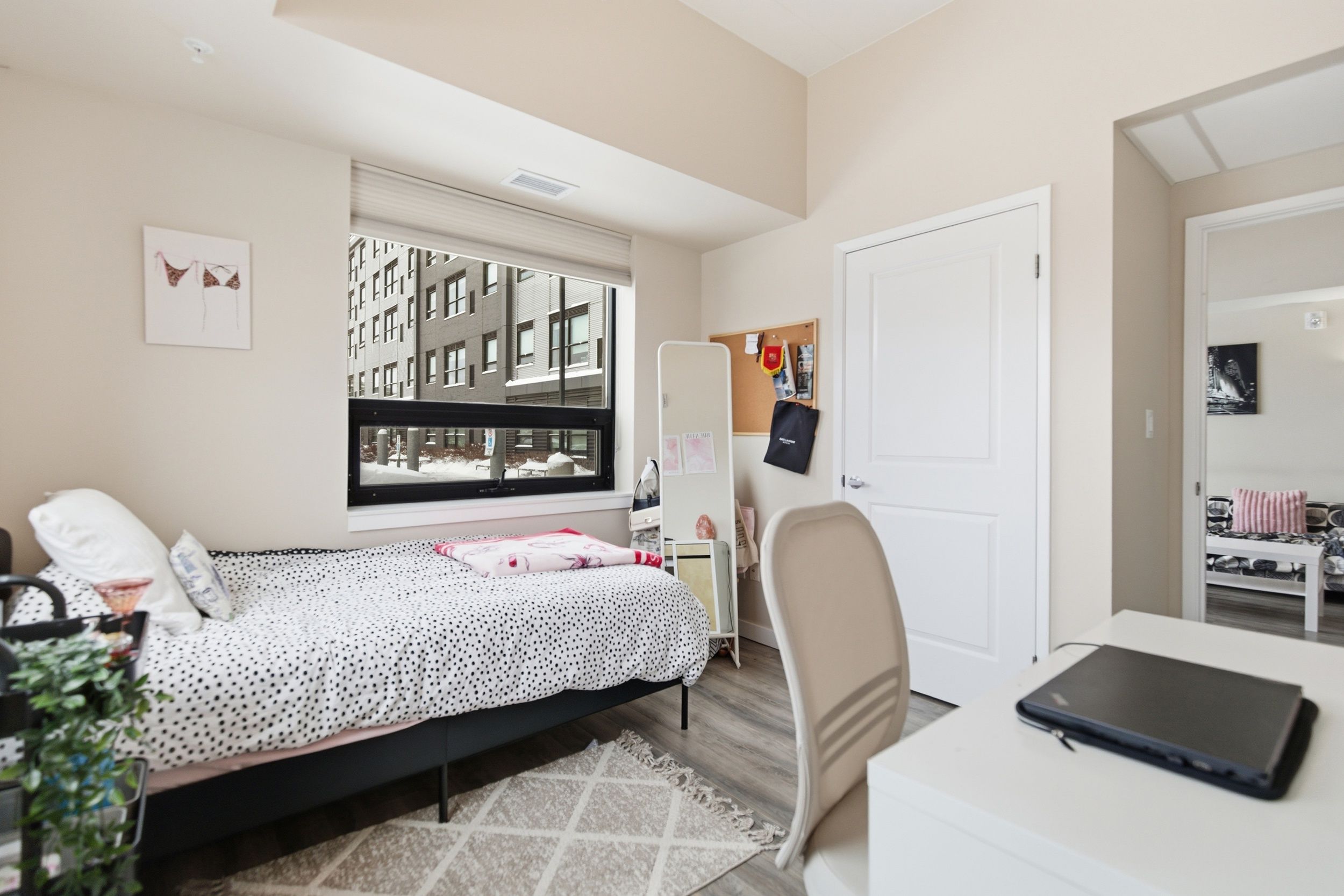 This isn't just a place to stay while earning a degree, it's a space designed to support focus, comfort, and connection during some of the most important years of life. Inside, this fully modern 3 bedroom, 3 bathroom suite offers the rare balance of privacy and togetherness. Each bedroom features its own bathroom, giving every resident their own retreat, a place to recharge, study, and truly feel at home. Clean lines, contemporary finishes, and a thoughtful layout create an environment that feels fresh, functional, and effortlessly comfortable. Beyond the unit, the building itself elevates the experience. Whether it's late night study sessions in the dedicated study room, unwinding in the games room, staying active in the exercise room, or gathering with friends in the lounge, every space has been intentionally designed to enhance student life. Step outside to the shared terrace, a perfect spot to take a breath, enjoy fresh air, or catch up between classes. As a parent, choosing the right place for your child isn't just about location, it's about trust, and knowing they're supported while they build their future. 106-1219 gordon street offers exactly that. This is where independence begins, memories are made, and the foundation for the future quietly takes shape.