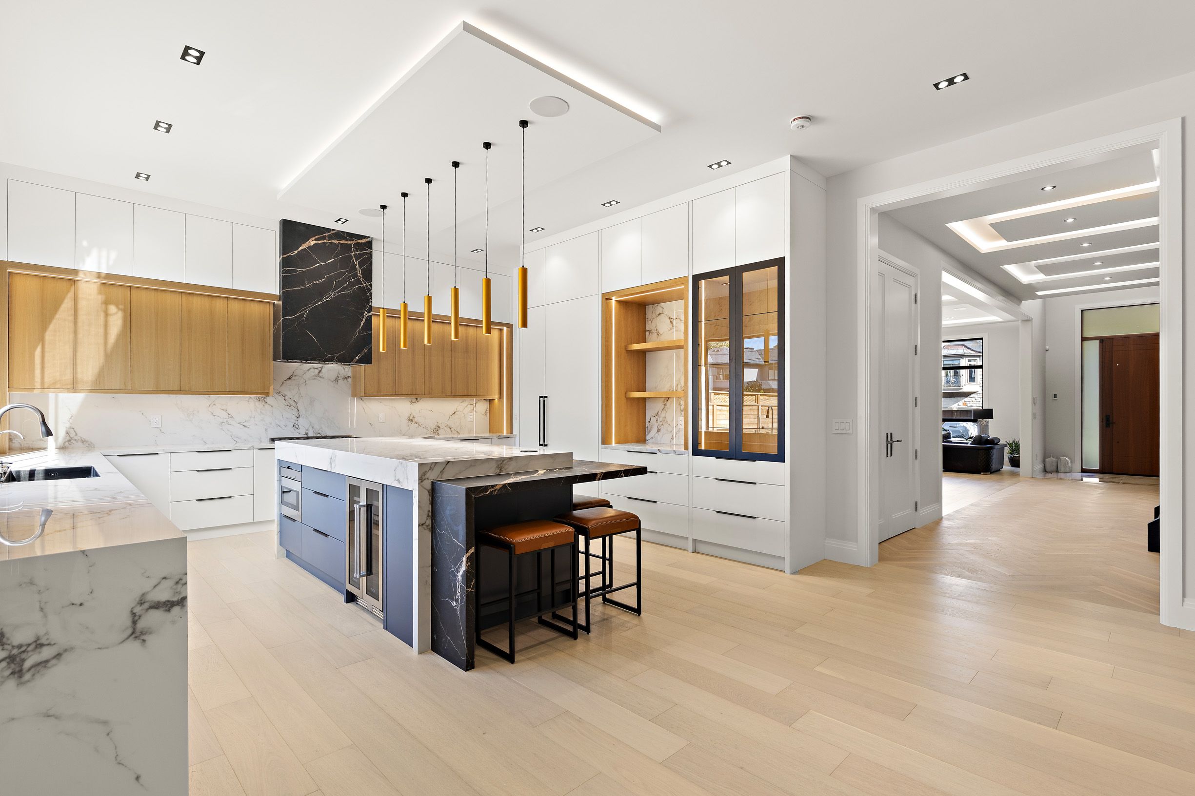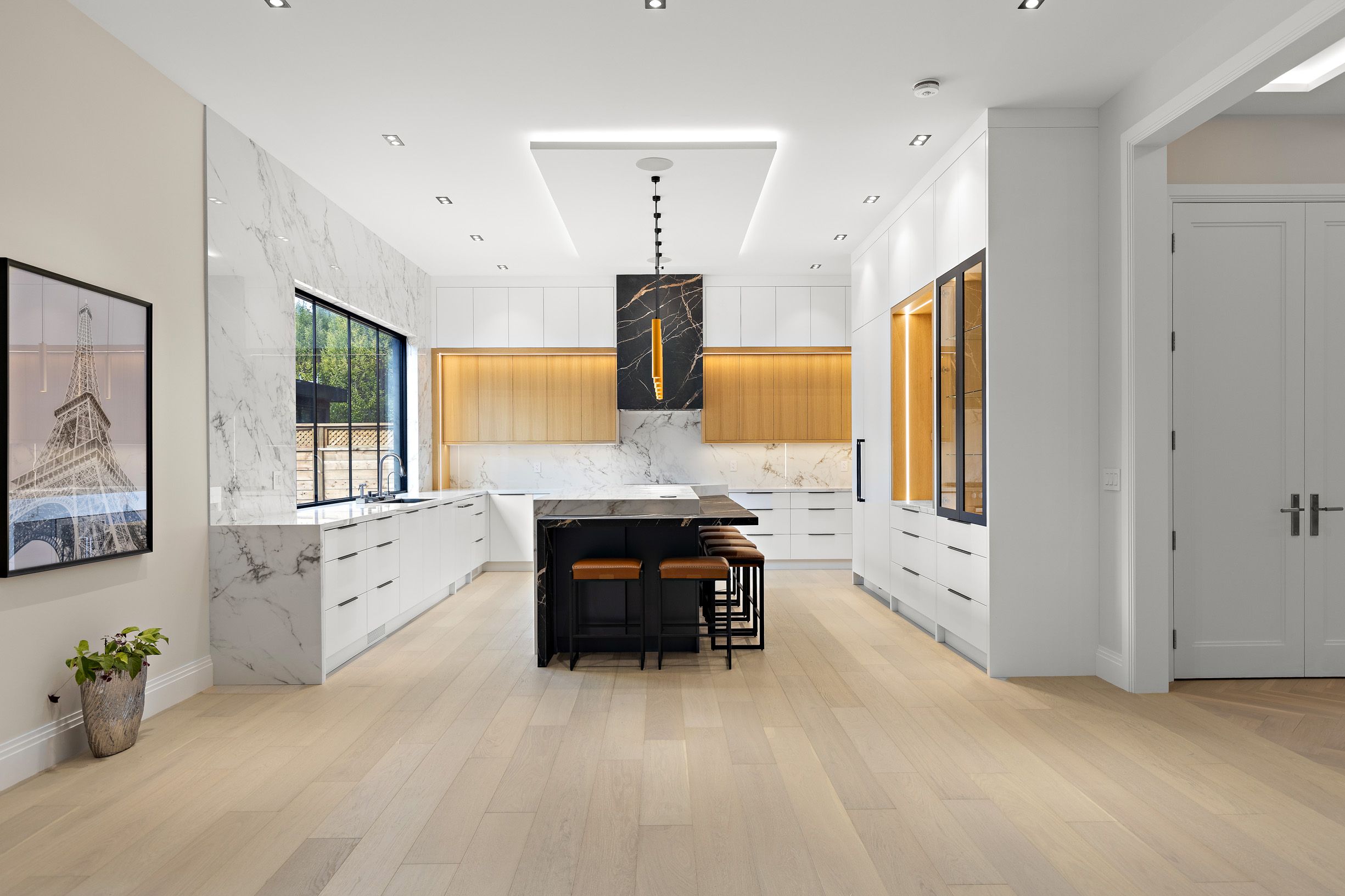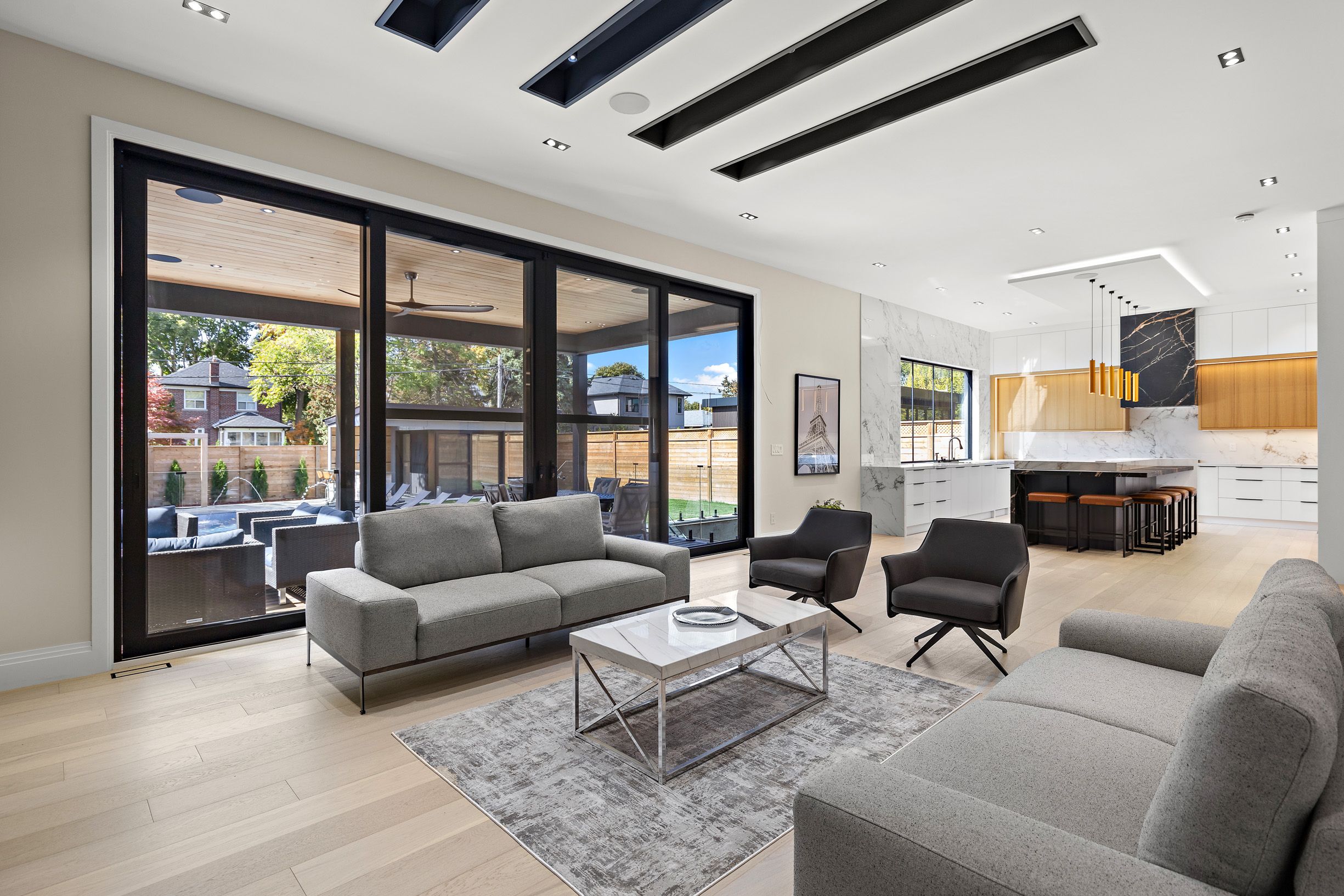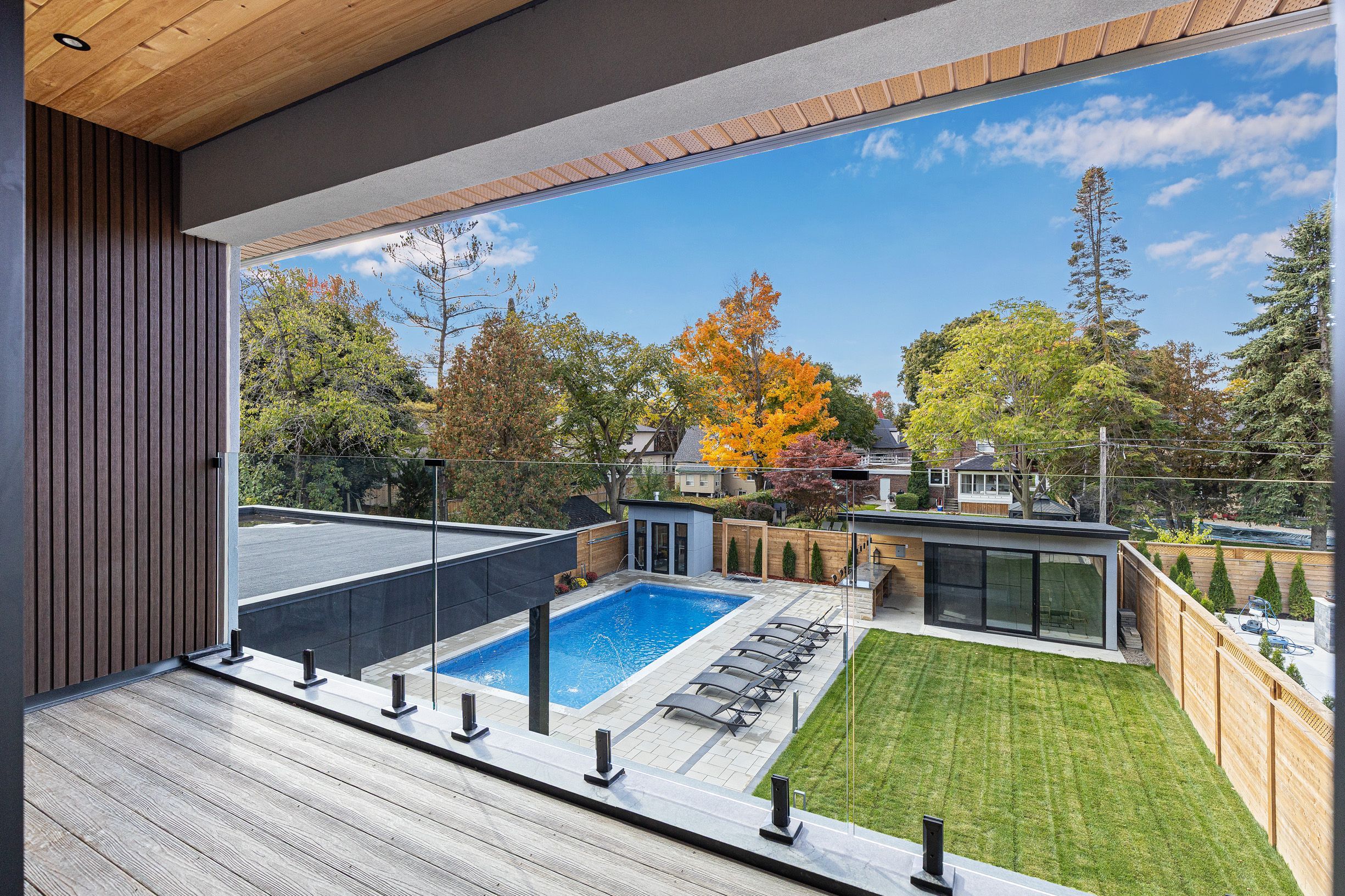 Step inside this breathtaking 5000+ sqft residence, where every detail embodies sophistication and comfort. The grand foyer welcomes you with soaring ceilings, leading to expansive living areas featuring custom millwork & designer notes from hardwood floors to ceilings. Experience culinary excellence in the gourmet kitchen, beautifully appointed with modern cabinetry, italian porcelain countertops & premium miele appliances. The adjacent full prep kitchen with a secondary range hood, cooktop & dishwasher ensures that your main kitchen remains flawless for your guests while you cook up a storm. Retreat to 1 of 2 private primary suites, complete with a spa-inspired ensuite, deep soaking tub, and bespoke walk-in closets. Entertain effortlessly in the lower level complete with home theatre built-in speakers, custom wine/cigar fridges, walk out to lower courtyard all finished in impeccable style. Glass walls open to a backyard with resort quality amenities featuring a generous size pool, landscape lighting, outdoor hot water shower, stone & granite bar & a glass enclosed cabana, offering the perfect blend of serenity and grandeur. From smart home automation to the private study to a seamless transit of indoor & outdoor space, every corner of this residence is curated for refined living. To explore the rest of this unparalleled lifestyle you simply need to call your agent and book an appointment.