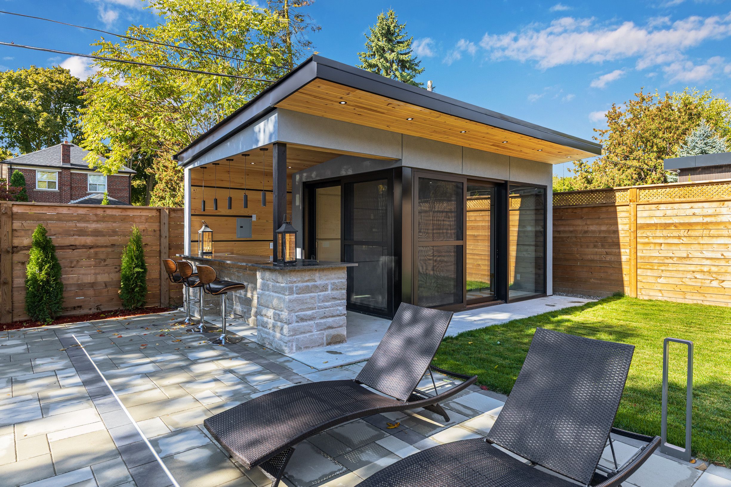 • Resort-style backyard includes a pool, cabana, and outdoor amenities.