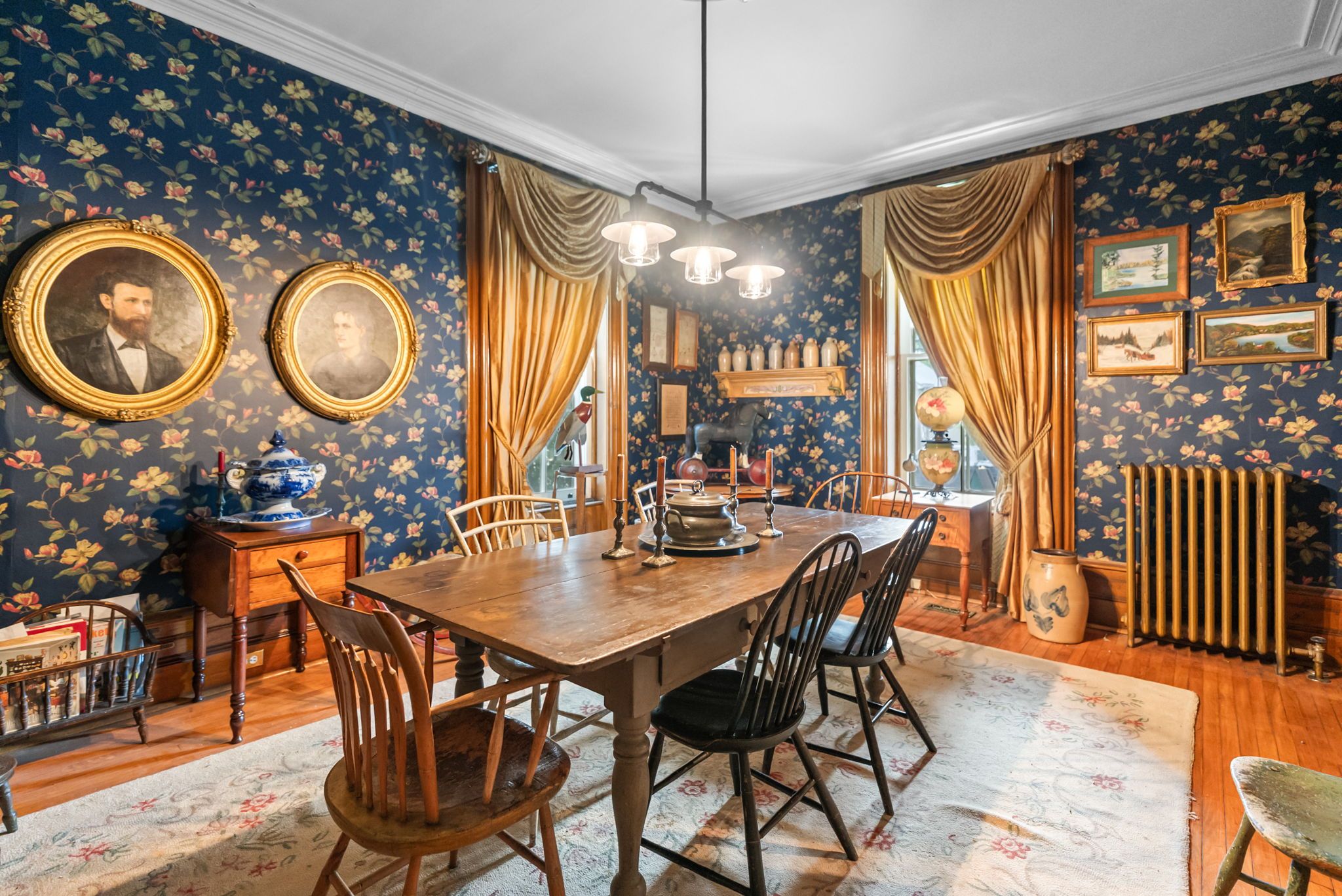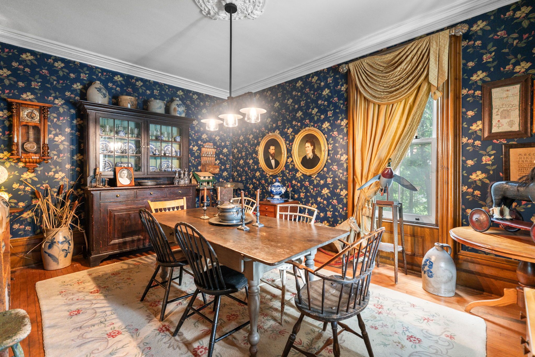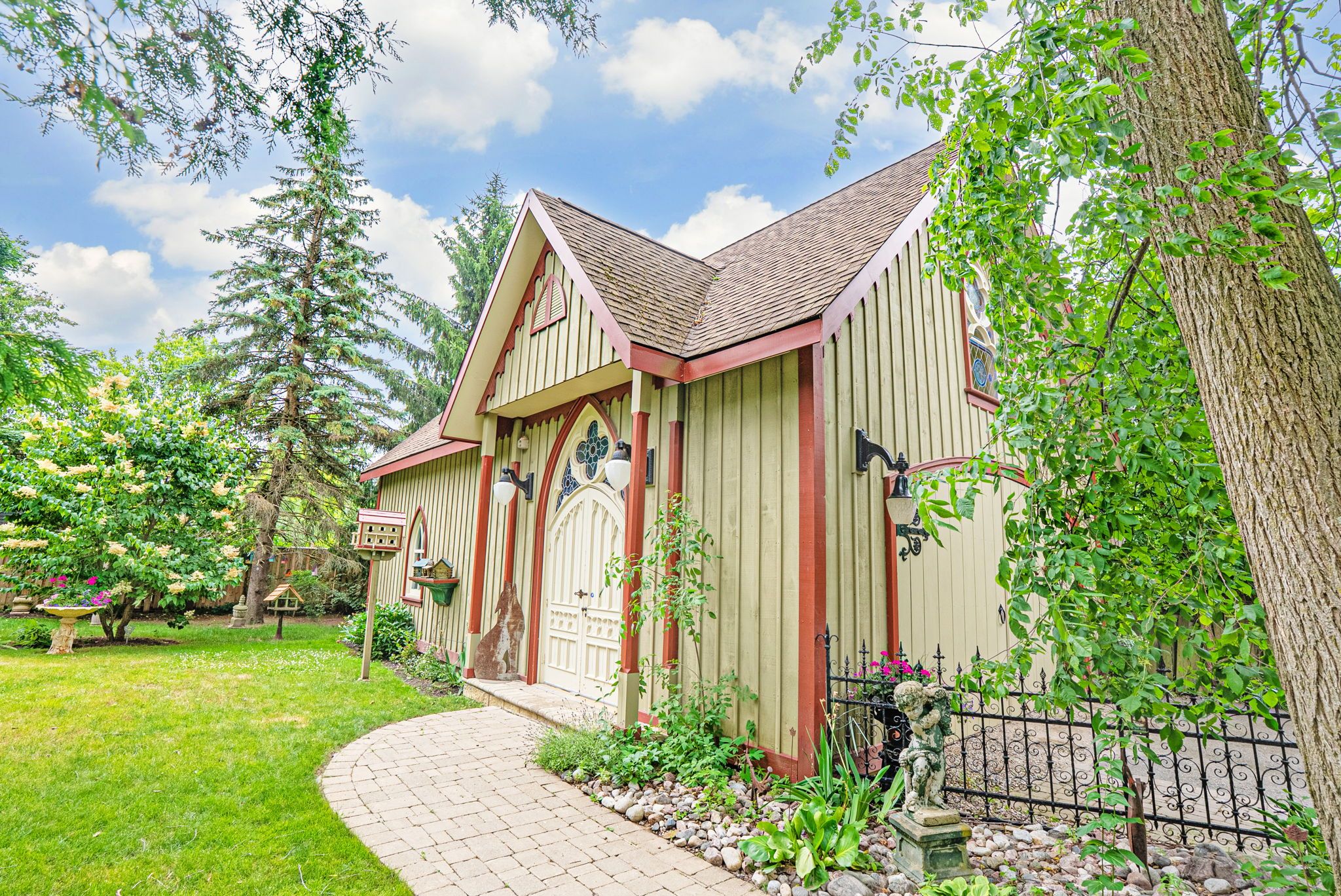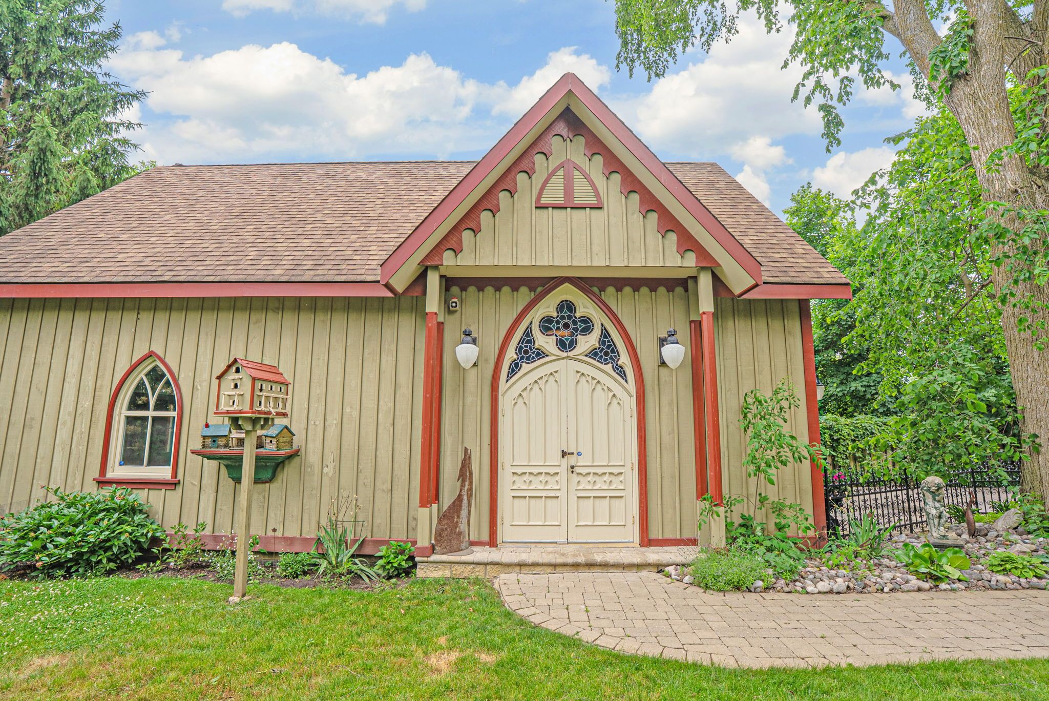 Step into a bygone era with this beautifully preserved 1. 5-storey century home, circa 1874, known as the "robert mooney residence," set on a mature, tree-lined lot in the heart of uxbridge. Rich in history and timeless appeal, this 3-bedroom, 2-bathroom home offers 2,366 sq. Ft. Of refined living space for those who value heritage, craftsmanship, and enduring character. From the moment you arrive, the ornate wrought iron fencing, classic proportions, and inviting porch hint at the story within. Inside, original details take centre stage-soaring ceilings, intricate wood trim, crown mouldings, ceiling medallions, and tall windows that fill the home with natural light. The formal living and dining rooms are elegant yet welcoming, perfect for gathering and entertaining in a setting that feels both grand and intimate. The heart of the home is a thoughtfully updated kitchen that blends modern function with classic style, opening to a sunlit breakfast area and a charming 3-season sunroom-ideal for slow mornings and relaxed evenings overlooking the private, treed backyard. Upstairs, the primary suite offers a peaceful retreat with a dormer window, walk-in closet with laundry, and a beautifully appointed ensuite. Additional bedrooms and a clawfoot tub bath continue the home's tradition of comfort and character. Outdoors, enjoy a serene setting with mature trees, a spacious deck, and covered porch, along with an impressive detached garage (approx. 40' x 24', built 2013) featuring a 19' cathedral ceiling, reclaimed doors, hardware, lighting, stained glass accents, and its own electrical panel-perfect for hobbyists or additional workspace. A rare opportunity to own a piece of uxbridge history-where craftsmanship, charm, and lifestyle come together.