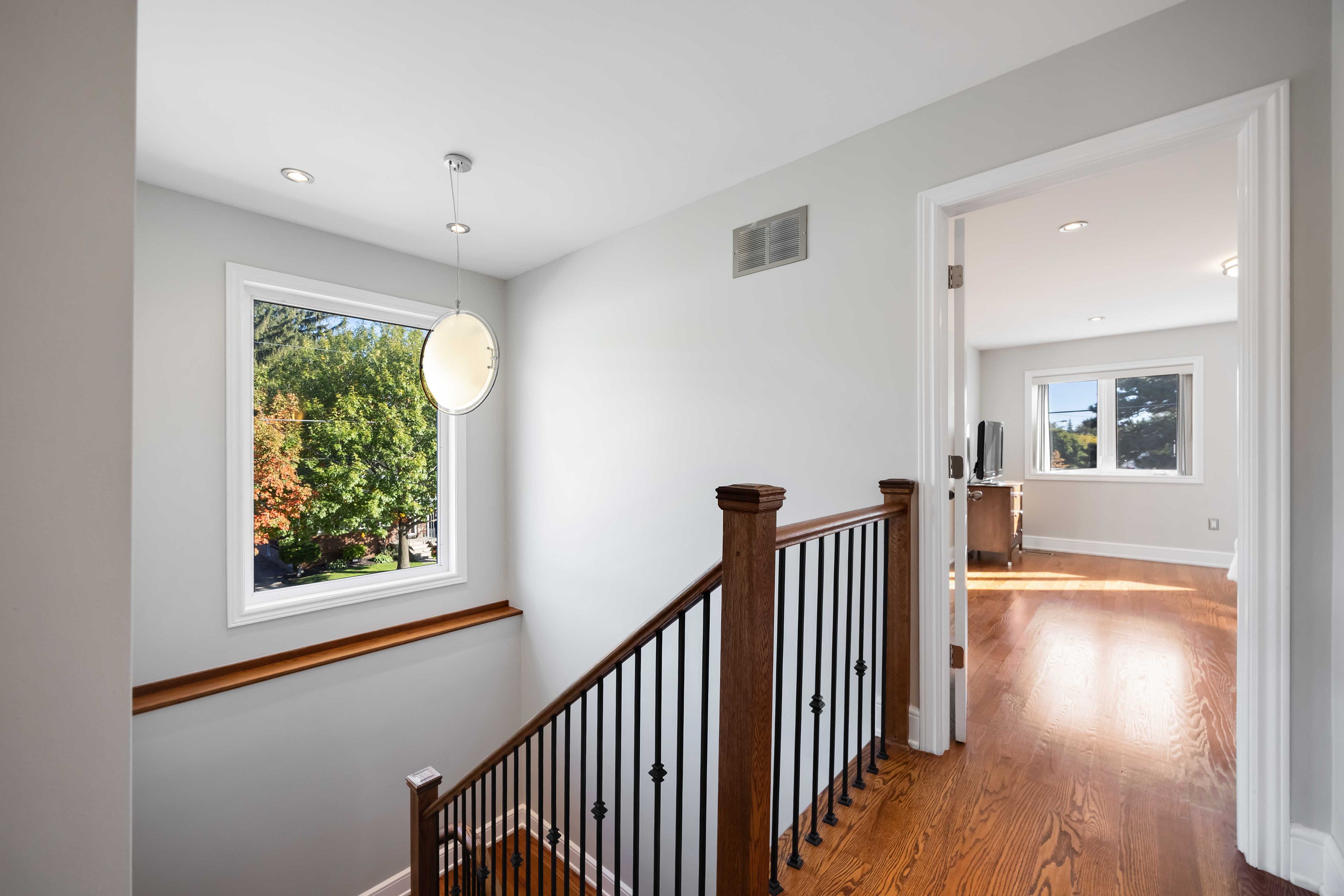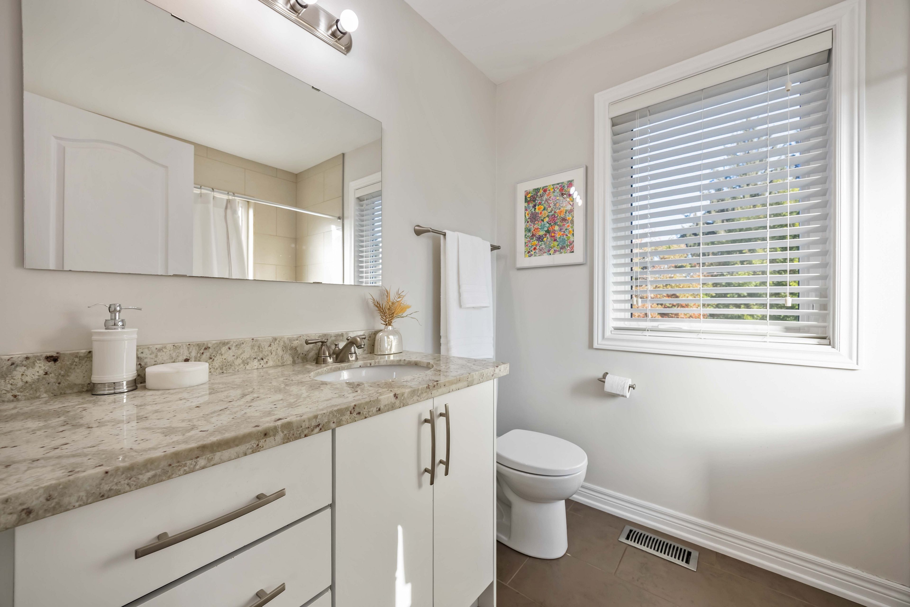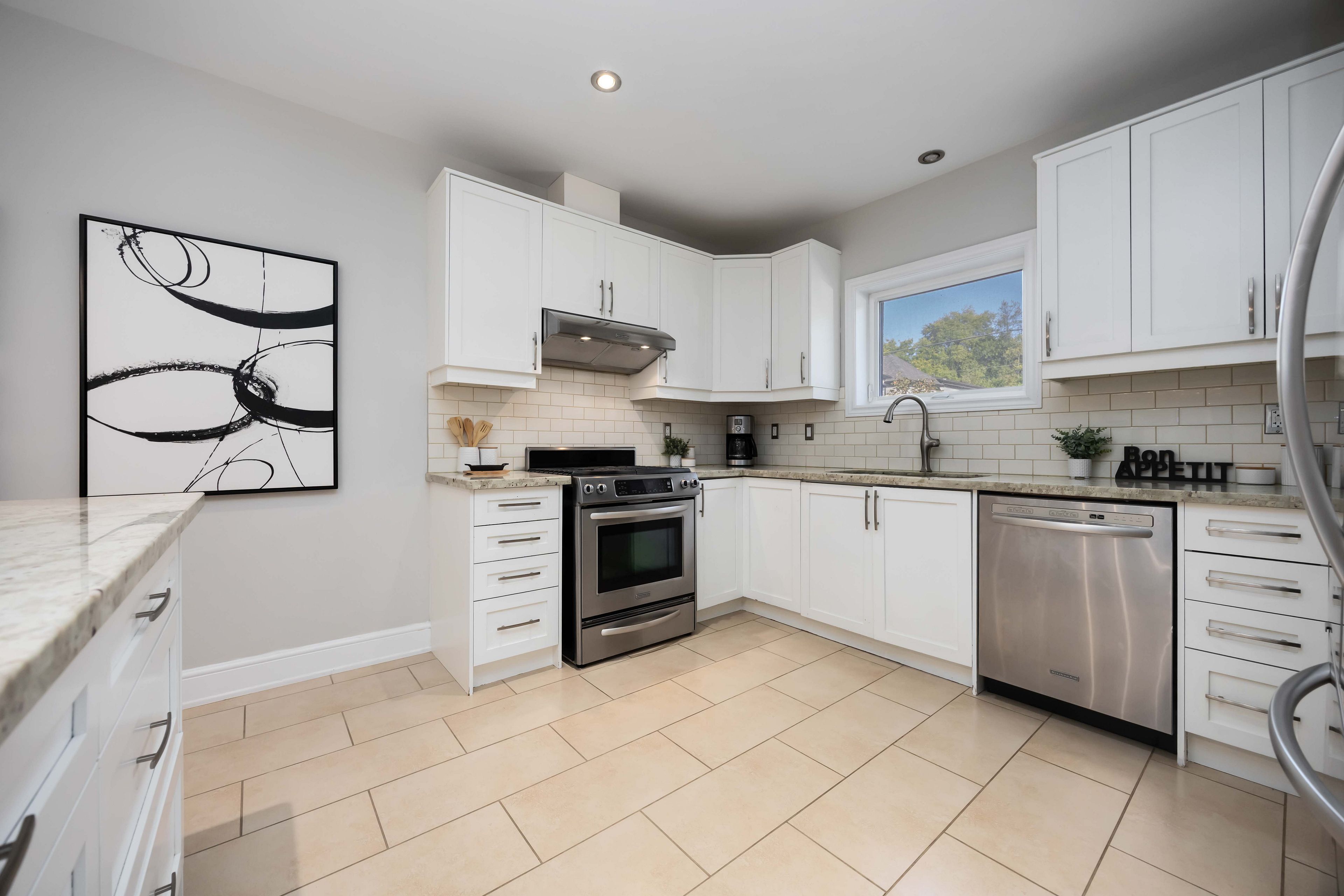 Welcome to 122 cedarcrest blvd - a beautifully updated three-bedroom, four-bathroom detached home that's truly move-in ready. From the moment you step onto the covered front porch, you'll feel the warmth and care that's gone into every corner of this property. Inside, a sun-filled foyer flows into a spacious open-concept living and dining area, where rich hardwood floors, oversized windows, and crisp neutral walls create an inviting backdrop for everyday life and easy entertaining. The renovated chef's kitchen is the true heart of the home, featuring white shaker cabinetry, granite countertops, a generous breakfast island with seating for three, classic subway-tile backsplash, and stainless steel appliances including a gas range. A built-in display niche in the dining area adds a custom designer touch. Upstairs, three well-proportioned bedrooms offer comfort and flexibility. The primary retreat is a true sanctuary, easily accommodating a king bed plus a sitting or work-from-home area, with treetop views from twin windows. A modern four-piece bathroom with stone counters serves the upper level, complemented by additional full bathrooms throughout the home for everyday convenience. The fully finished lower level extends your living space with a bright, oversized rec room and dedicated office nook - ideal for movie nights, hosting guests, or hybrid work life. Step outside to your private, deeply set backyard: a beautifully landscaped paver patio for al fresco dining, a lush manicured lawn, mature trees, and a tidy garden shed - all enclosed by a full privacy fence. Complete with an attached garage and additional driveway parking, this turn-key home delivers thoughtful updates, generous space, and an effortless lifestyle on a quiet, tree-lined street. Just unpack and enjoy.