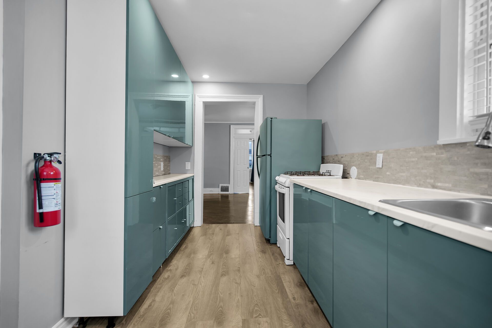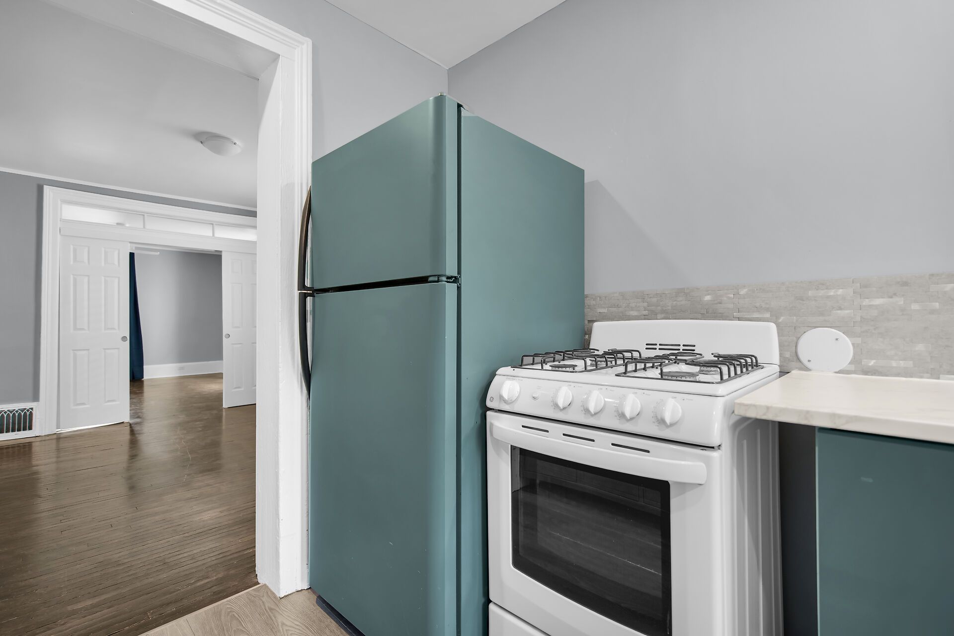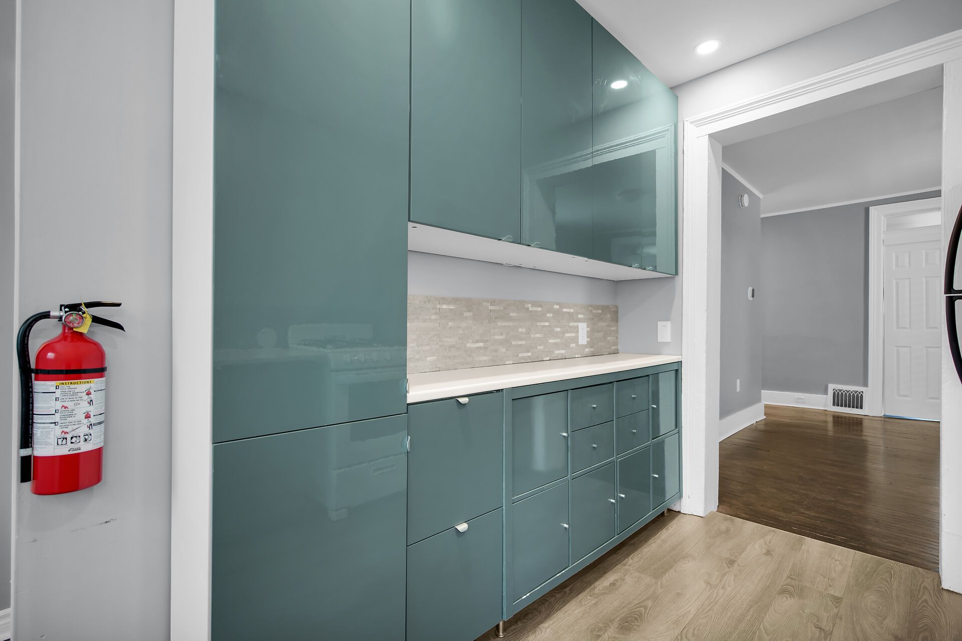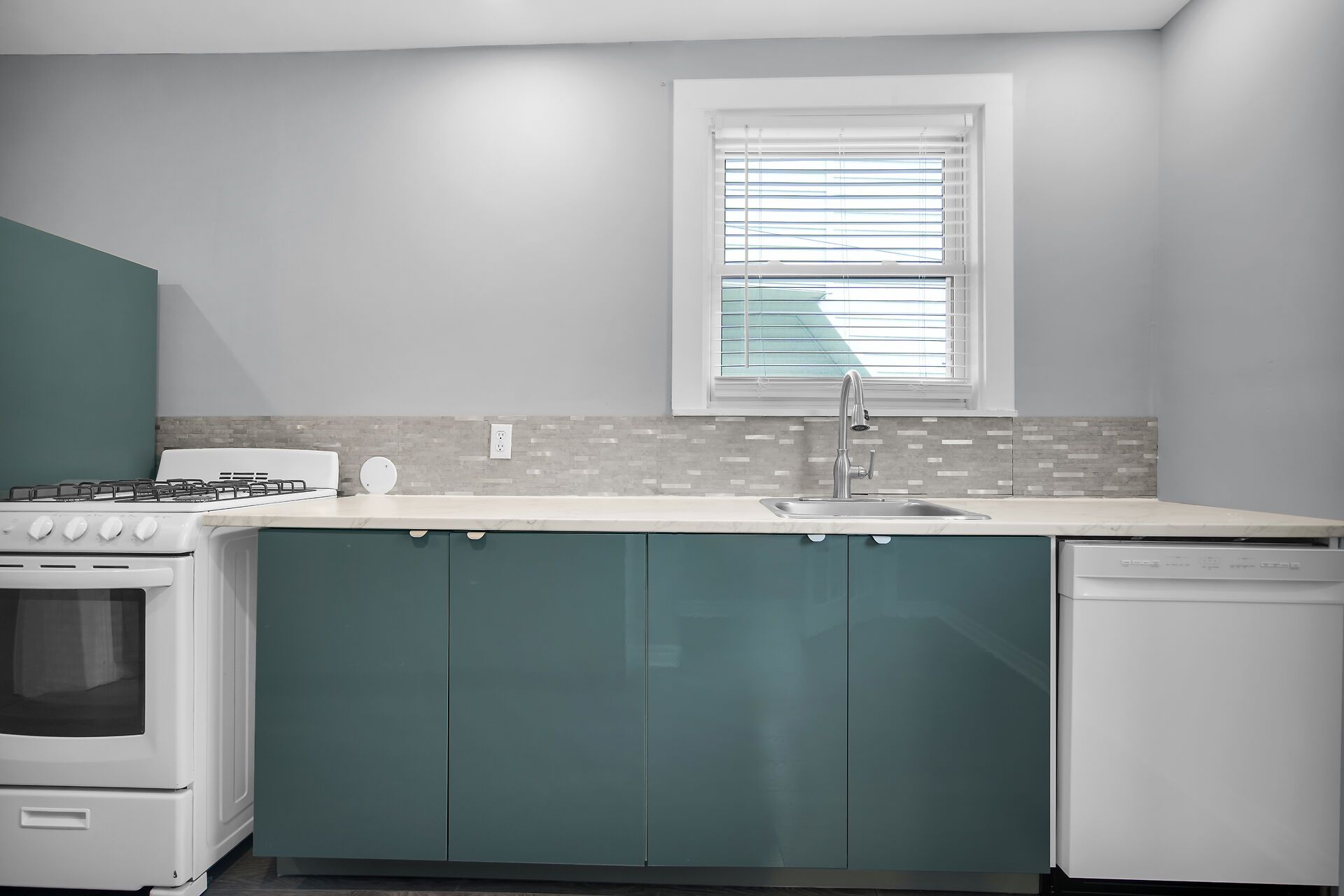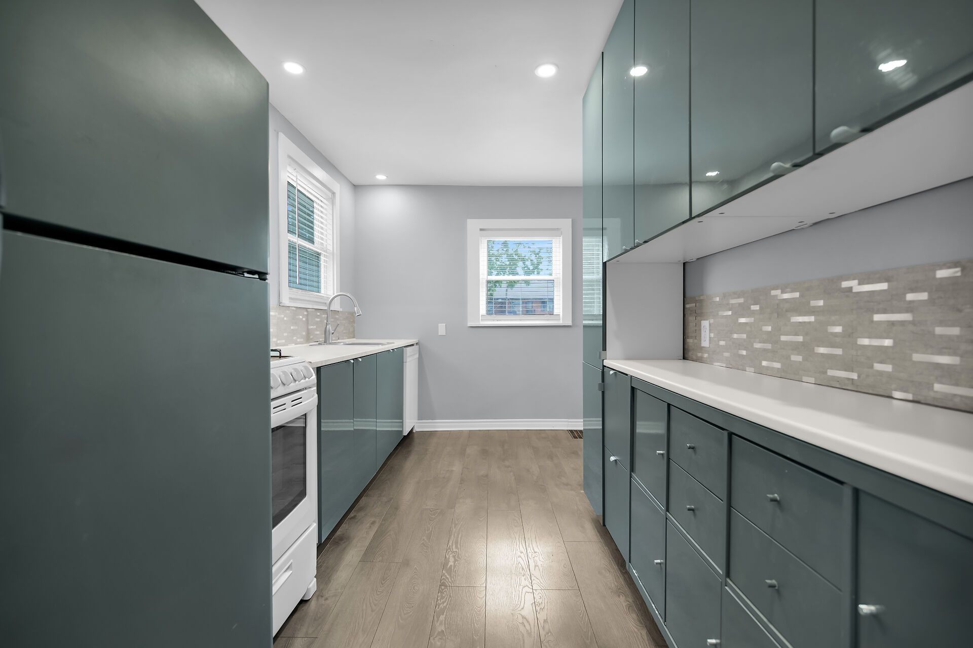 • Stylish three bedrooms with sleek sage cabinetry.