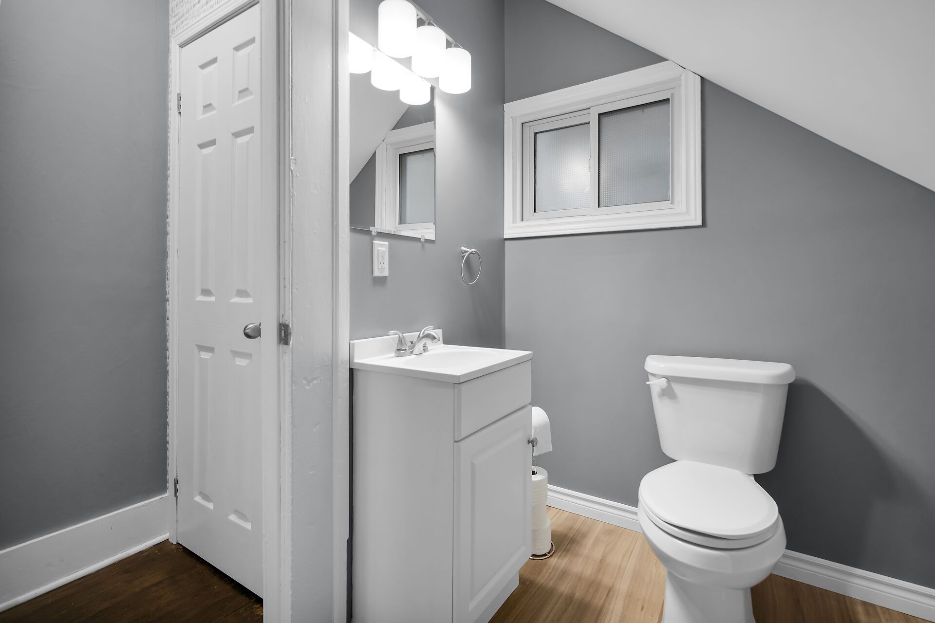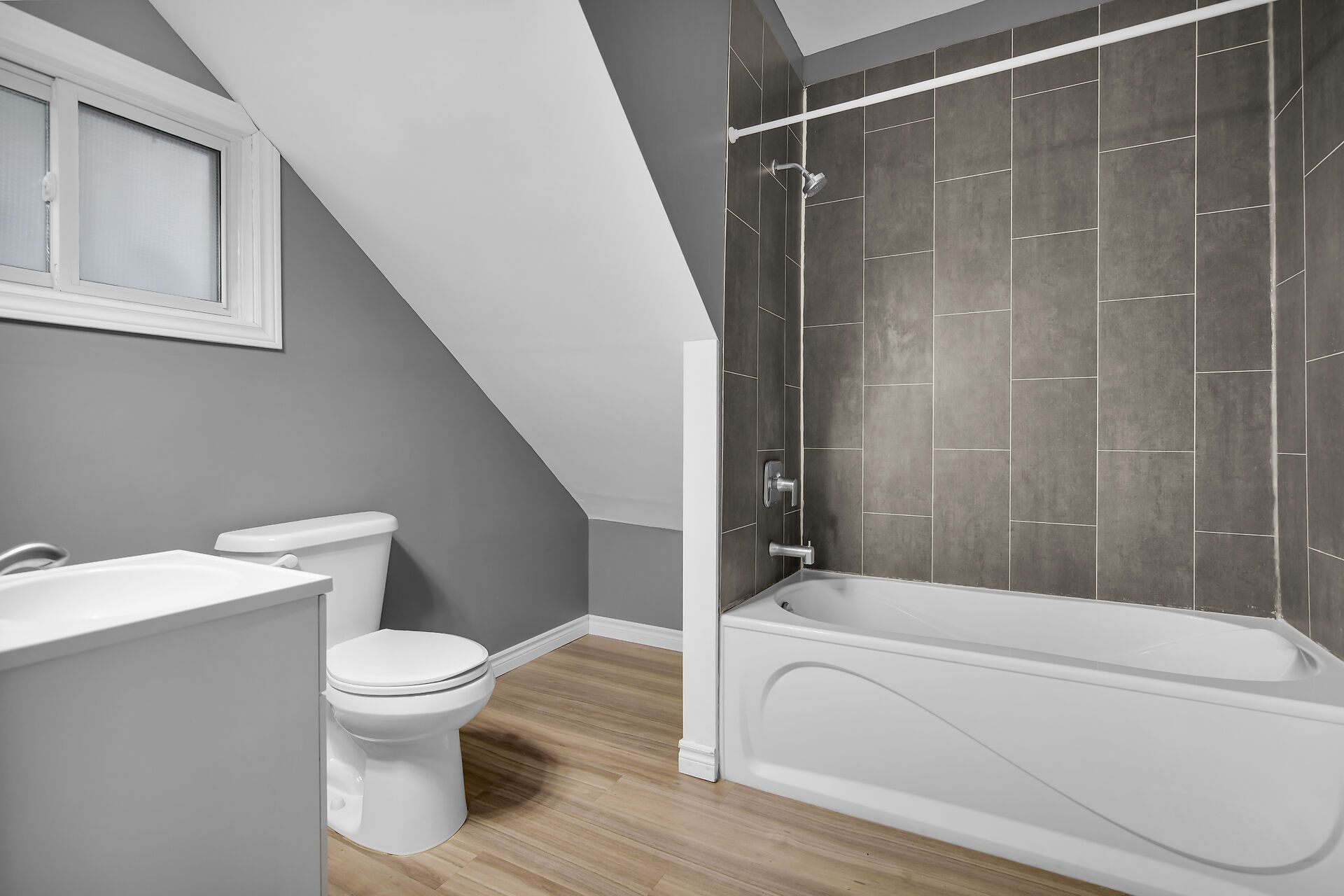 • Bright four piece bathroom offers a timeless design.