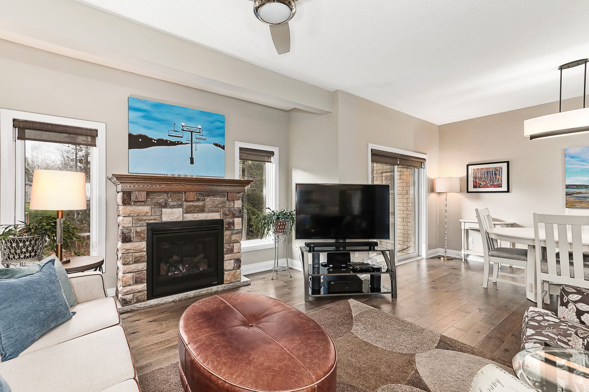 Welcome to silver glen preserve. A vibrant, friendly community perfectly situated in the heart of collingwood's renowned four-season playground. Enjoy the best of both worlds with downtown shops, restaurants, marina, golf courses, ski hills, and an abundance of scenic biking and hiking trails just minutes away. This beautifully upgraded home offers over 2,200 sq. Ft. Of finished living space, featuring 3 bedrooms and 3. 5 baths. The spacious primary suite includes a luxurious 4-piece ensuite with an oversized glass shower and a generous walk-in closet. Two additional bedrooms with walk in closets with built-in closet organizers and a full 4-piece bath complete the upper level, providing plenty of space for family or guests. The finished lower level offers a convenient laundry area, a cozy family room, with an additional 4-piece bathroom ideal for relaxation or hosting overnight visitors. Step outside to your back patio, surrounded by mature trees that create a private, serene setting perfect for entertaining or quiet evenings outdoors. Additional features include an attached garage with a workbench, built-in shelving, and inside entry for added convenience during the winter months. Select furnishings are included, making this home move-in ready and perfect for those seeking a turnkey lifestyle. Residents enjoy access to an outstanding recreation centre, complete with a seasonal outdoor pool, fitness room, kitchen and entertainment area, social events, book library, and pool table - a true hub of community life. Experience the lifestyle, comfort, and connection that silver glen preserve has to offer. A must-see home that perfectly blends luxury and leisure.