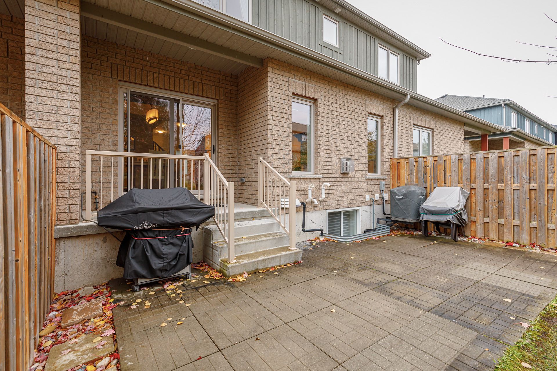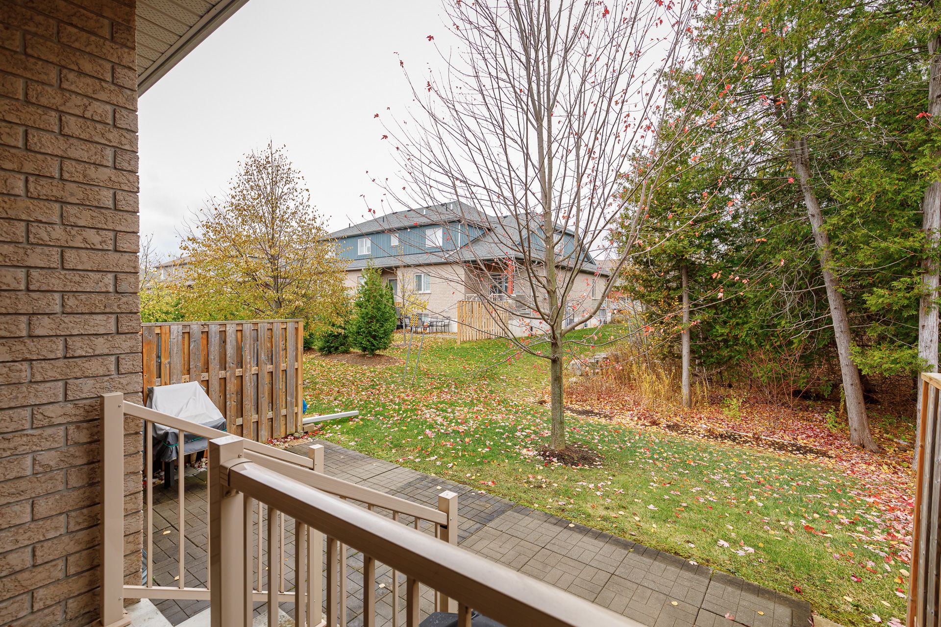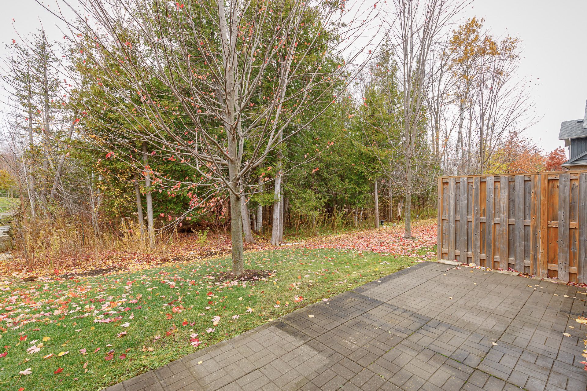 • Private back patio surrounded by mature trees for serene outdoor space.