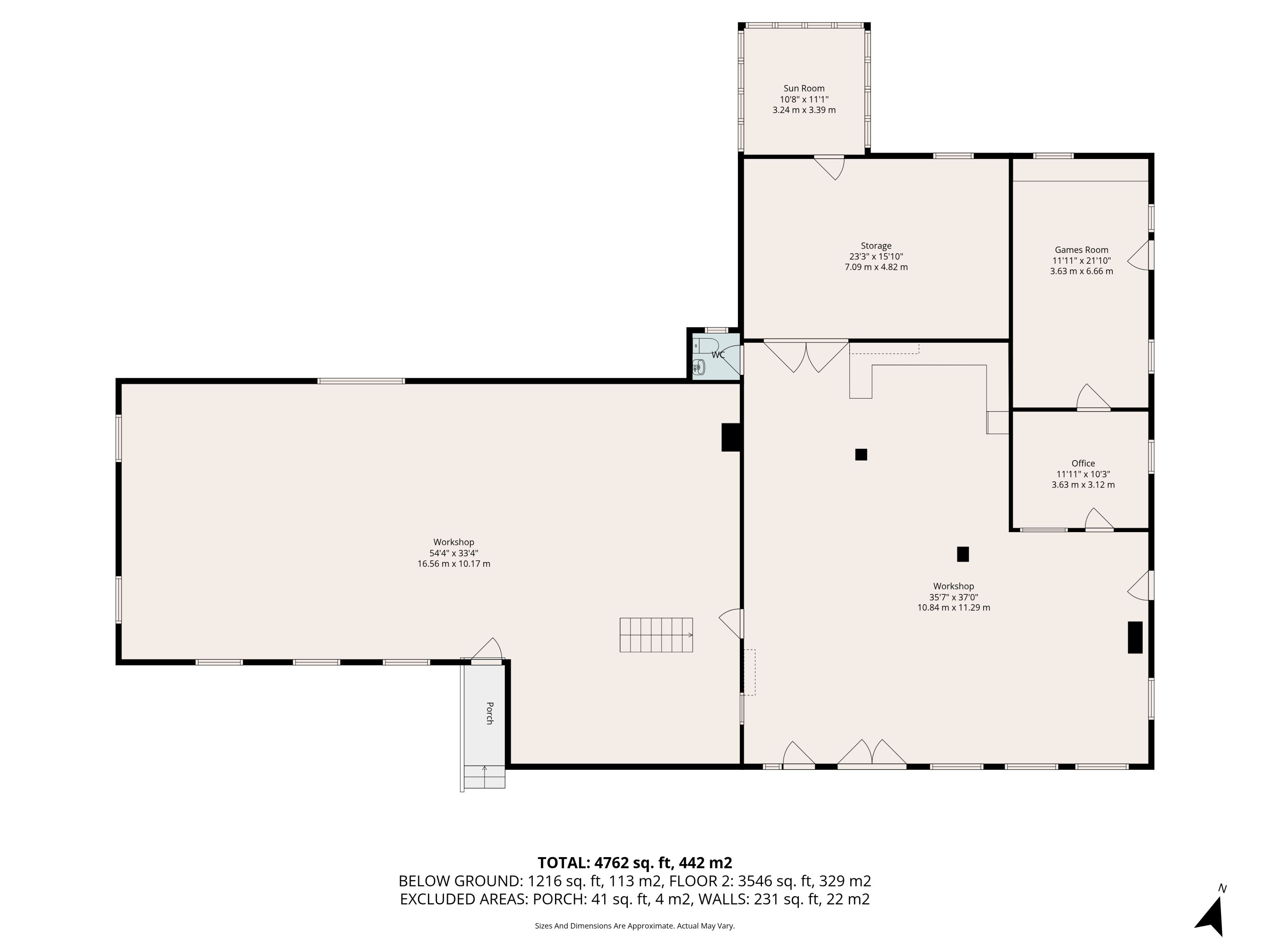 • 4762 sq ft shop suitable for commercial or industrial use.