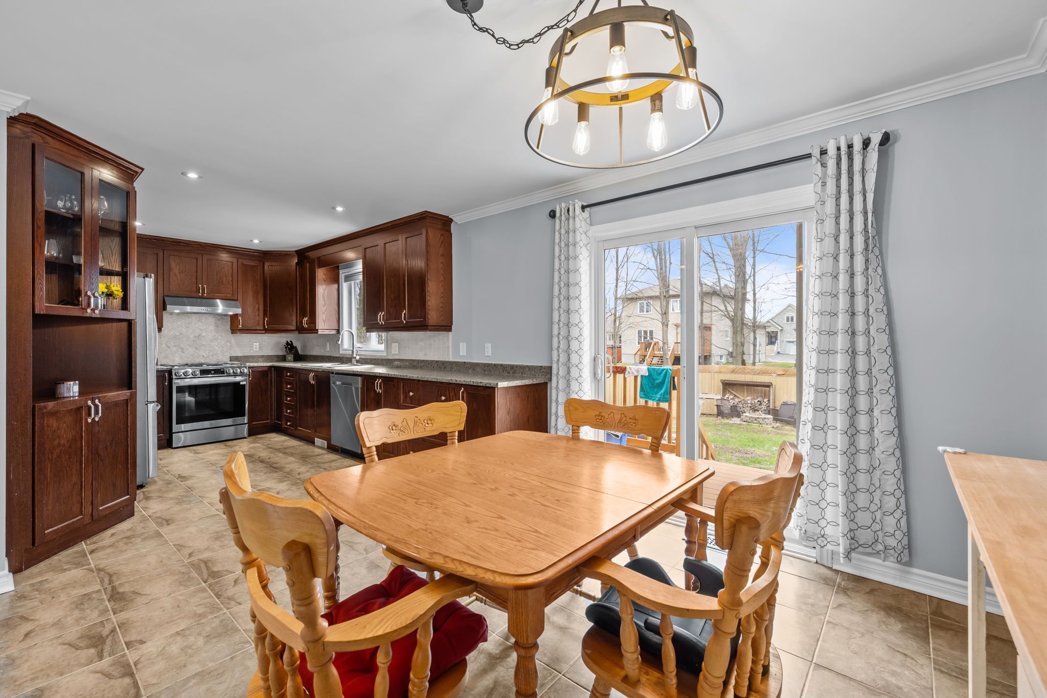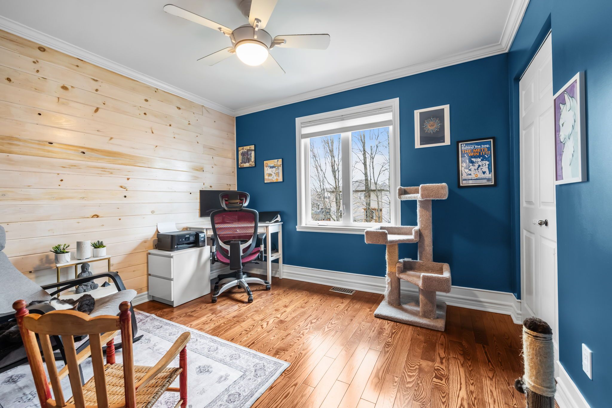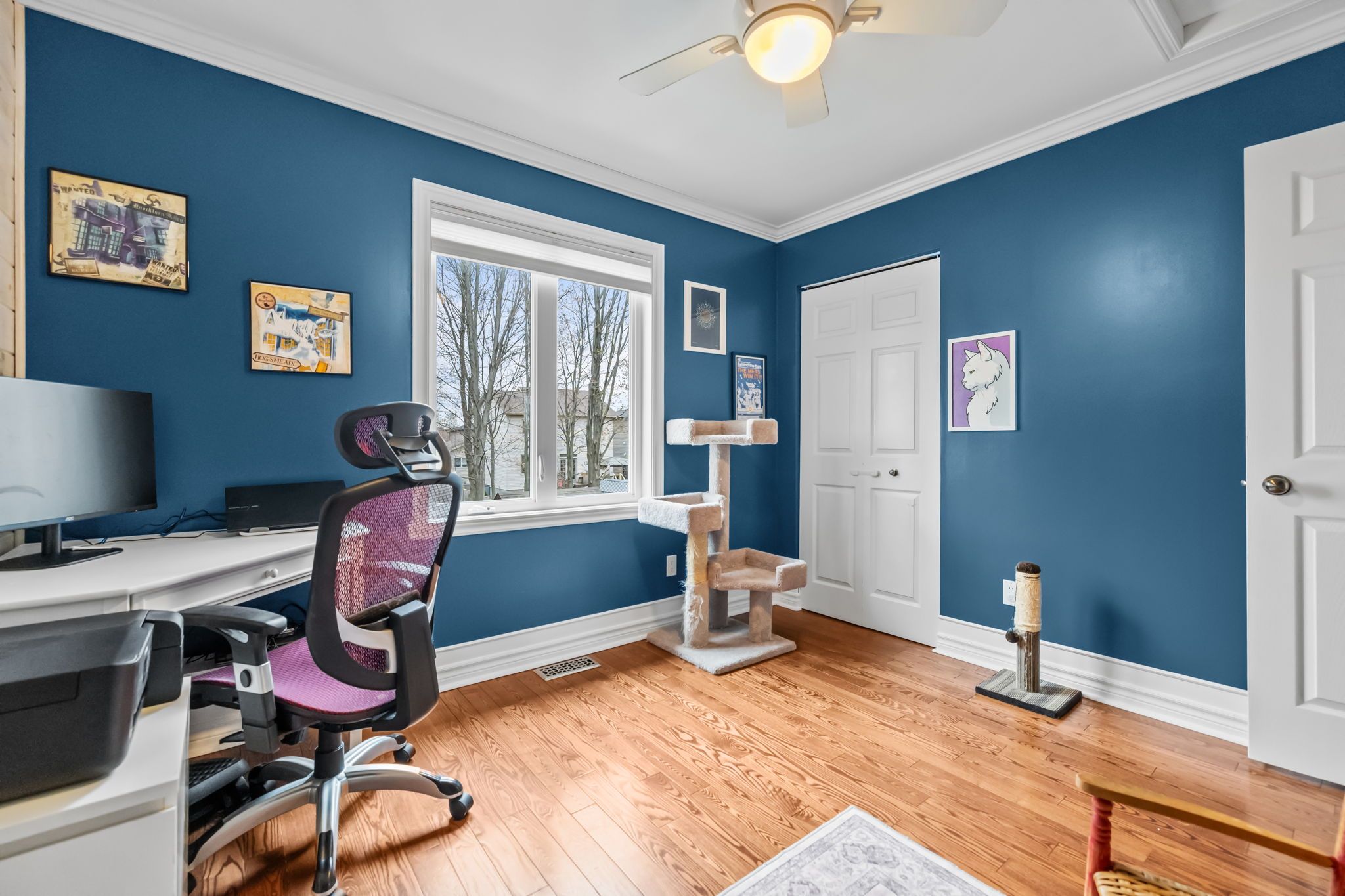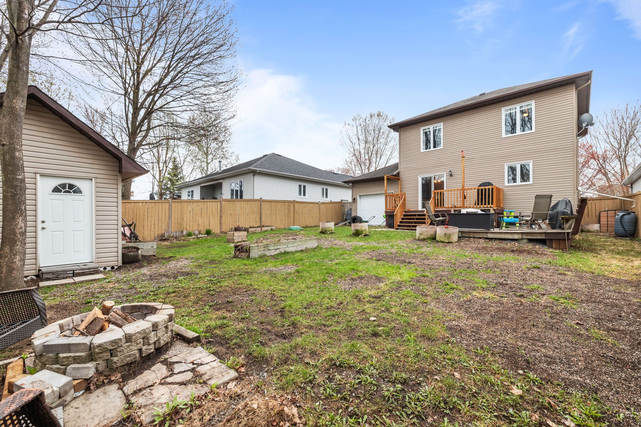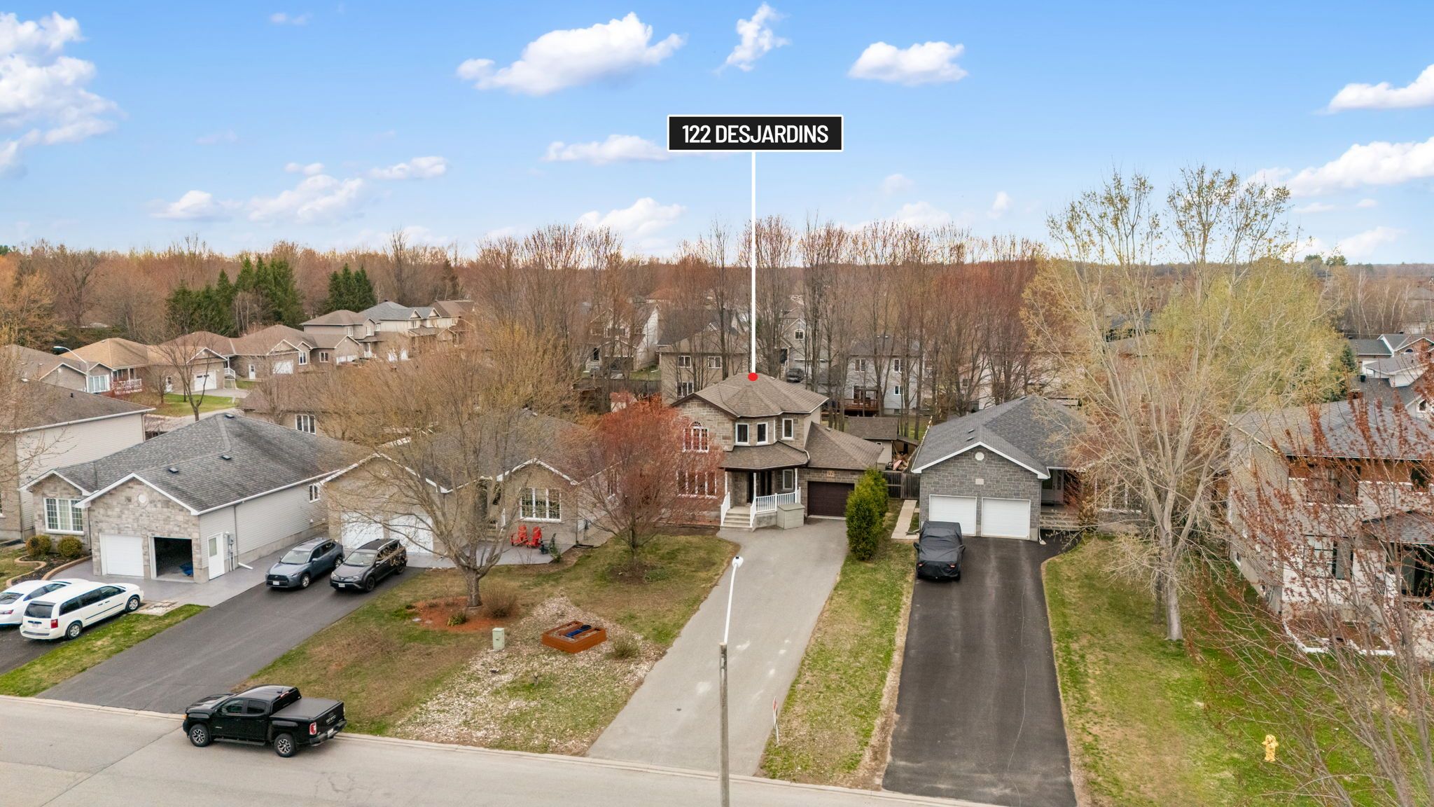Welcome to 122 desjardins st, a beautiful 3-bedroom, 3-bathroom home located in the family-oriented community of limoges-just minutes from shops, schools, parks, the amazon distribution centre, and calypso waterpark, while still offering the charm of country living with a short drive into ottawa. From the inviting front covered porch to the thoughtfully upgraded interior, this home offers both comfort and style. The main floor features hardwood flooring, pot lights, and crown moulding throughout, with an open-concept kitchen and dining area complete with ceiling-height cabinetry, stainless steel appliances including a natural gas stove, and ample counter space, seamlessly flowing into the spacious living room highlighted by a stunning stone feature wall and cozy gas fireplace. A convenient main floor laundry room adds to the home's functionality. Upstairs, you'll find three generously sized bedrooms, including a primary bedroom with a stylish plank feature wall. The fully finished basement extends your living space with a large family room, a versatile flex room, and a full bathroom featuring a sleek glass stand-alone shower. Step outside to enjoy the fully fenced backyard offering privacy and space for the whole family, along with an oversized lot, large driveway, single-car garage with a drive-through door to the backyard, and a shed for additional storage. With new windows already in place, this move-in ready home checks all the boxes in a fantastic location