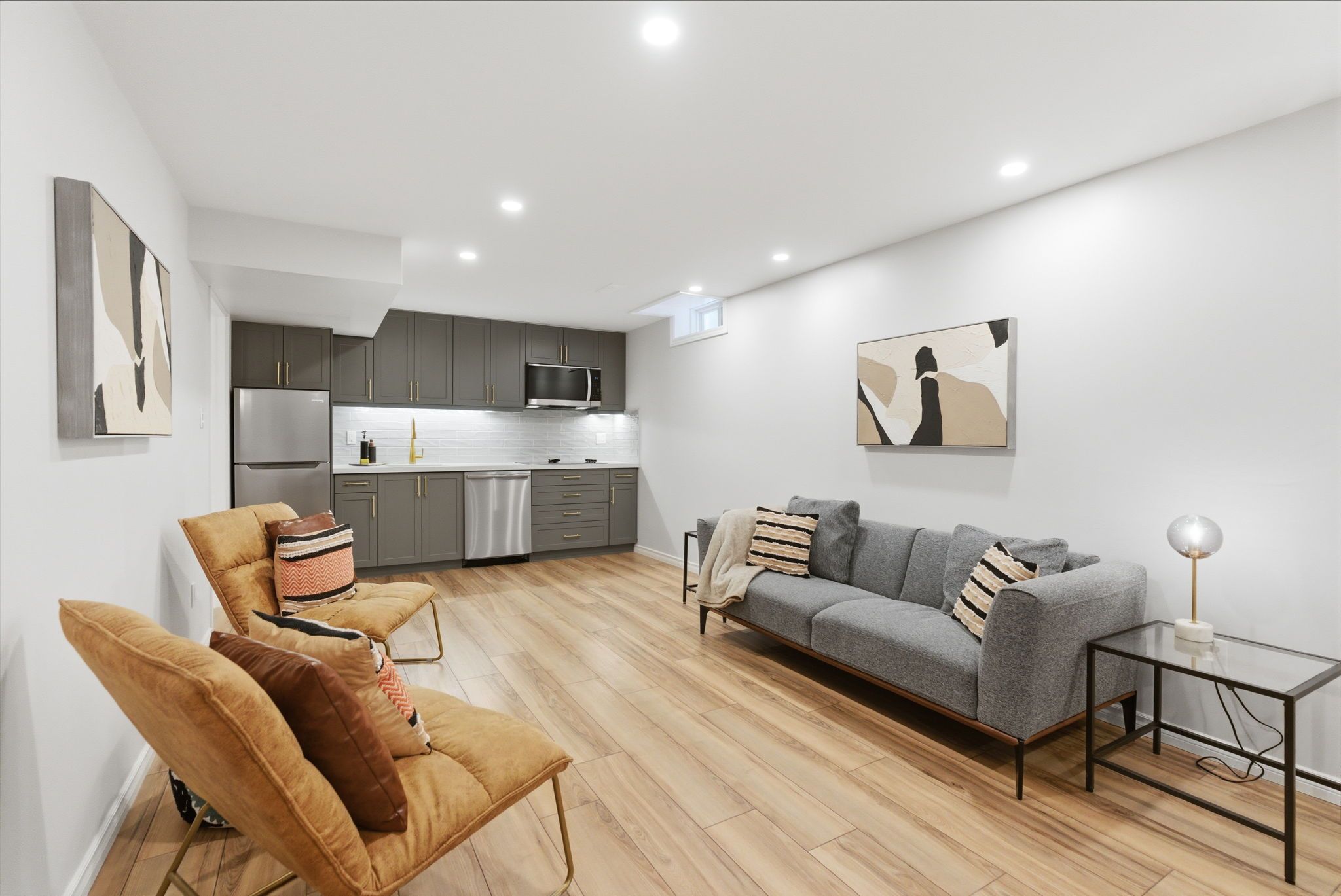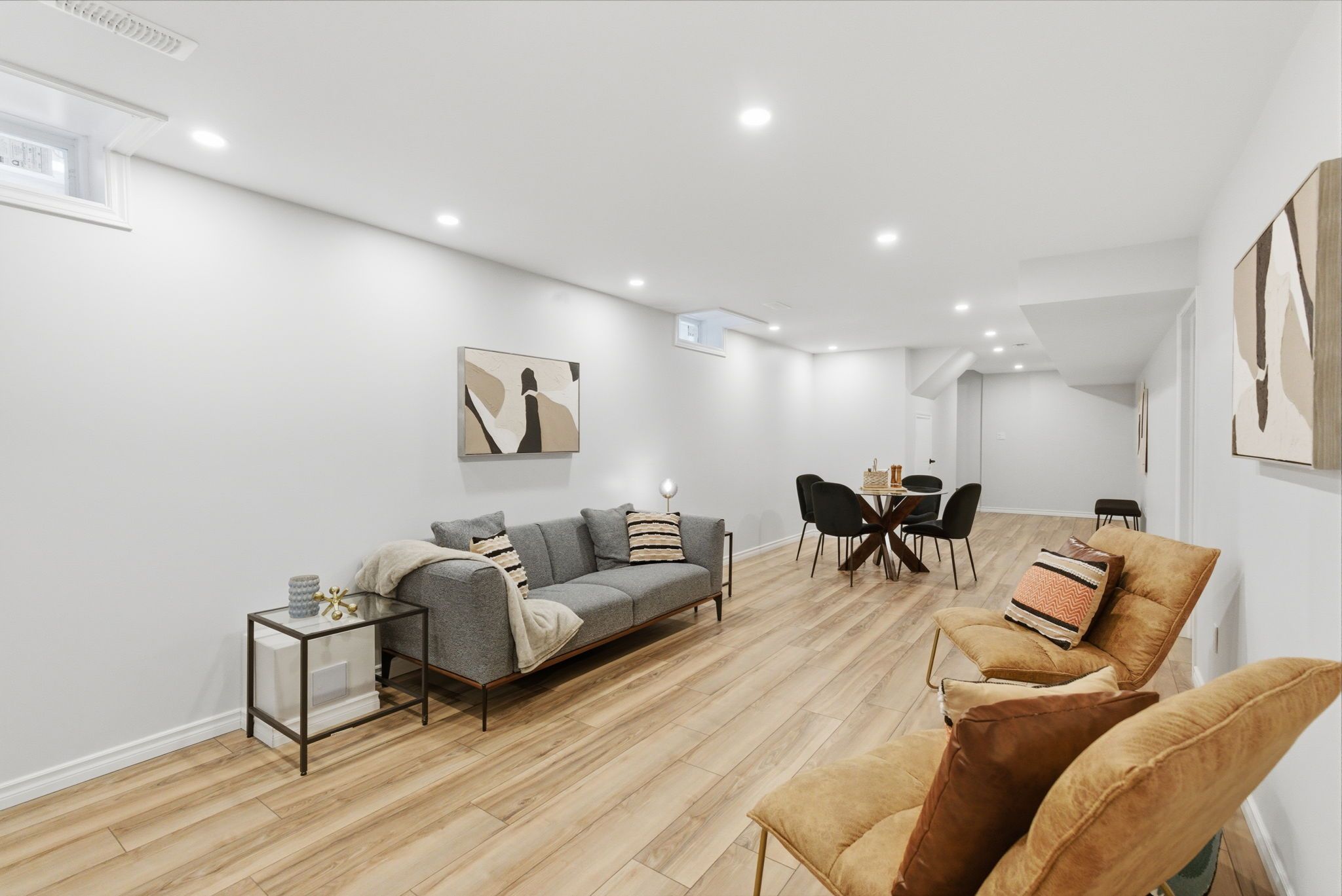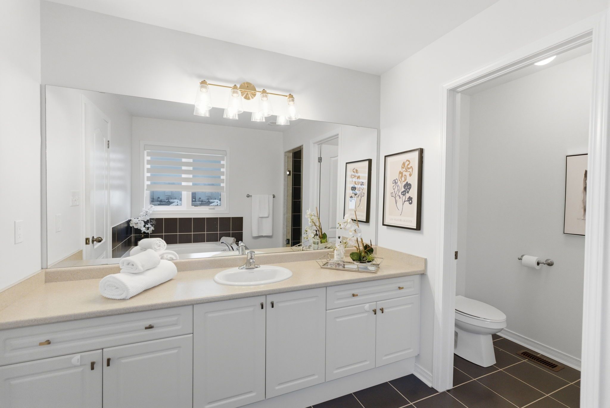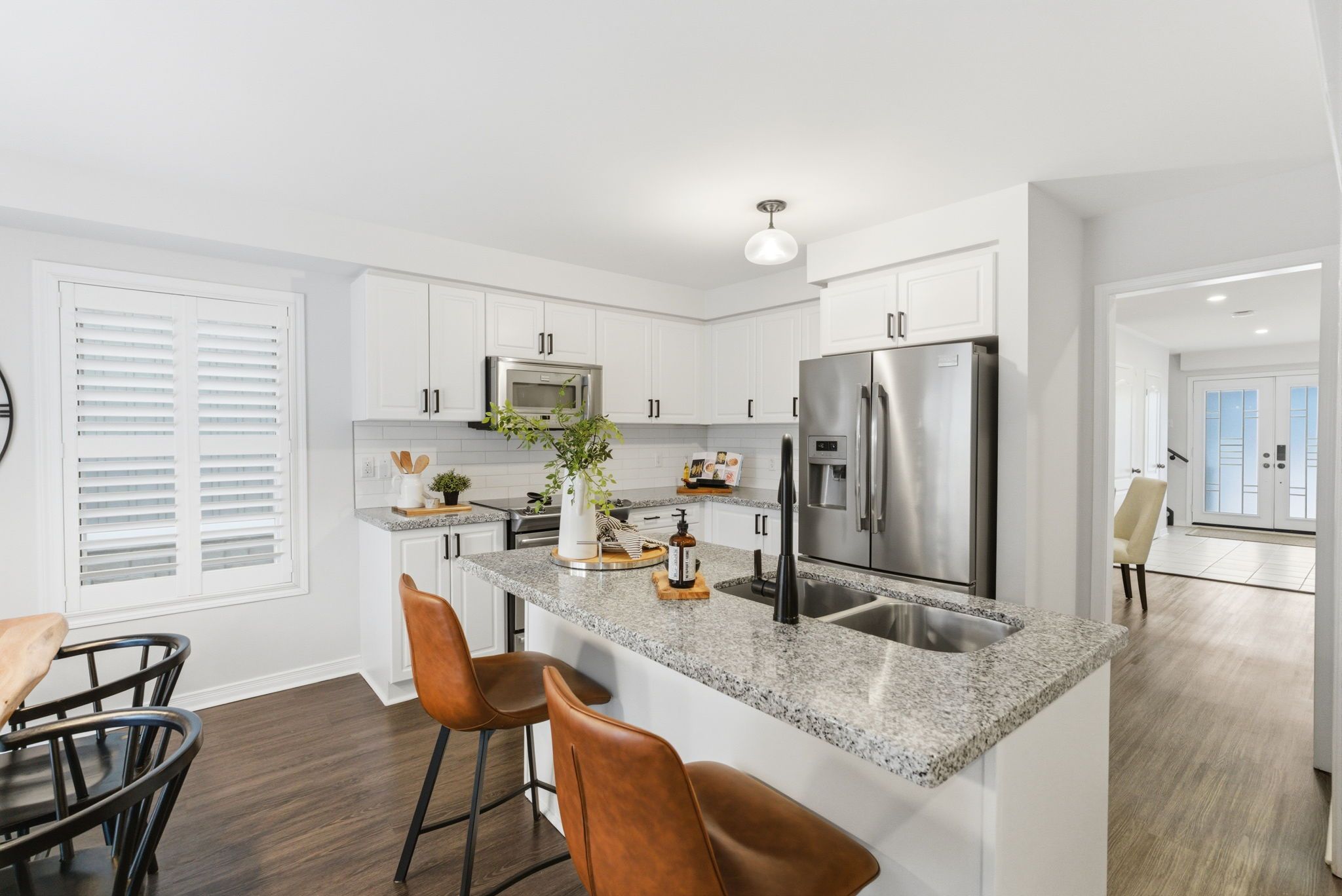 Beautifully upgraded, spacious 3+1 bedroom, 4-bathroom home offering incredible versatility for families, professionals, and multi-generational living. Located across from northglen park and just a 2 minute walk to the new northglen orchard p. S. (jk to grade 8 opening september 2026), this property combines everyday convenience with exceptional functionality. The main floor welcomes you with a bright living and dining area featuring pot lights, upgraded window coverings, laminate flooring, and california shutters. The cozy family room with a gas fireplace provides the perfect space to unwind, while the large kitchen impresses with granite countertops, stainless steel appliances, a breakfast bar, and a walkout to a deck overlooking a fully fenced backyard oasis, ideal for entertaining or relaxing outdoors. A dedicated office/den/workspace on the second floor makes working from home effortless featuring a built-in desk. Added practicality comes with main-floor laundry with direct garage access, upgraded lighting, faucets, and custom shelving. Upstairs, the spacious primary bedroom serves as a true retreat, complete with a large 4 piece ensuite bathroom and two walk-in closets. Two additional bedrooms offer generous closet space and natural light. The fully finished, completely independent basement is a standout feature, offering a true in-law suite with its own separate side entrance. It includes a full kitchen with under cabinet lighting, large living/dining area, private laundry, one bedroom with a 3-piece ensuite and pot lights throughout, perfect for extended family or potential rental income. Additional highlights include a 1. 5 car wide garage, extended and wide driveway with parking for up to 4 vehicles, upgraded bathroom lighting and thoughtful finishes throughout the home. This is a rare opportunity to own a move-in-ready property in front of a park and brand new school that truly checks every box for space, comfort, and flexibility.