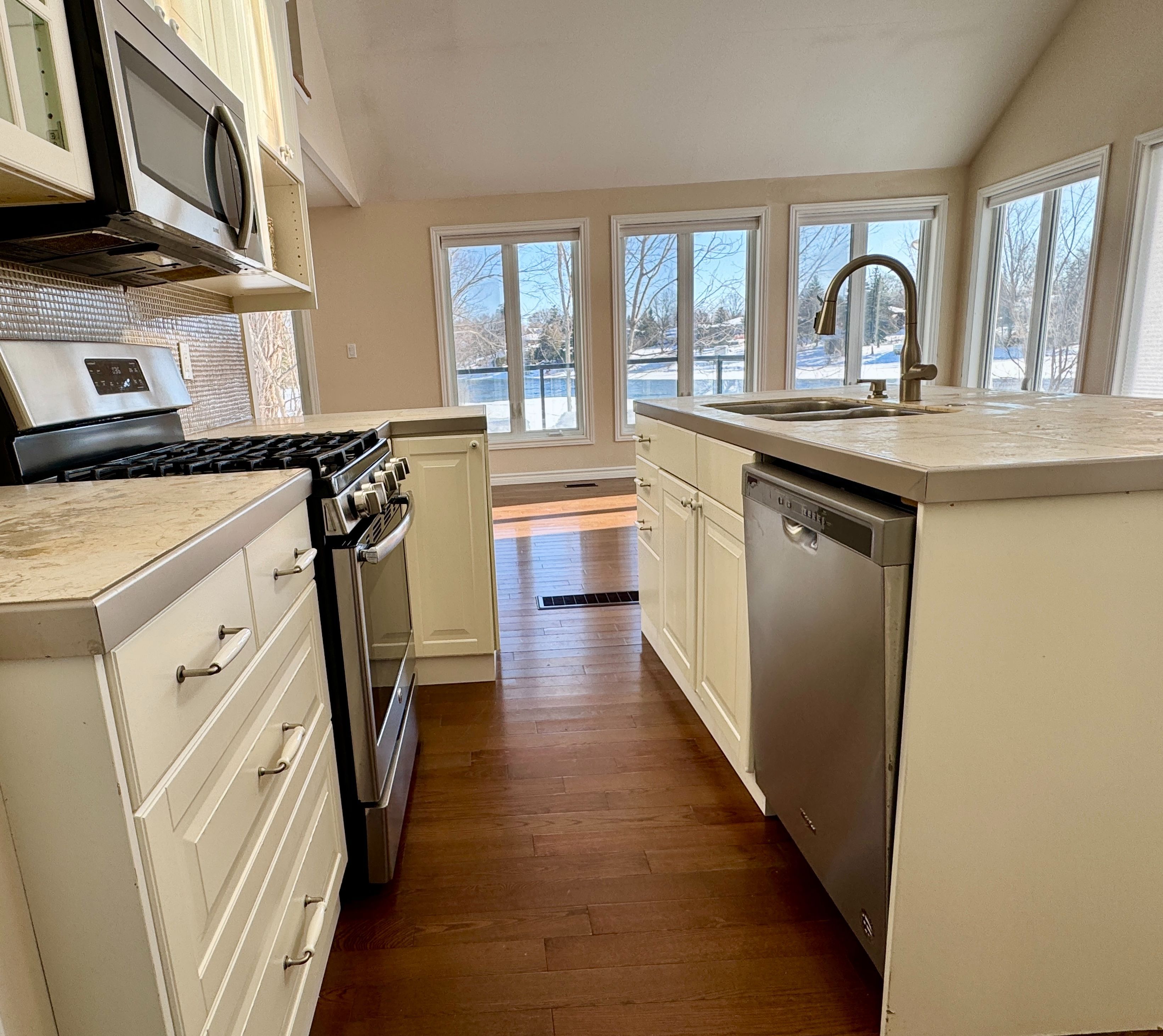 • Spacious 3+2 bedroom layout with vaulted ceilings and an open concept.