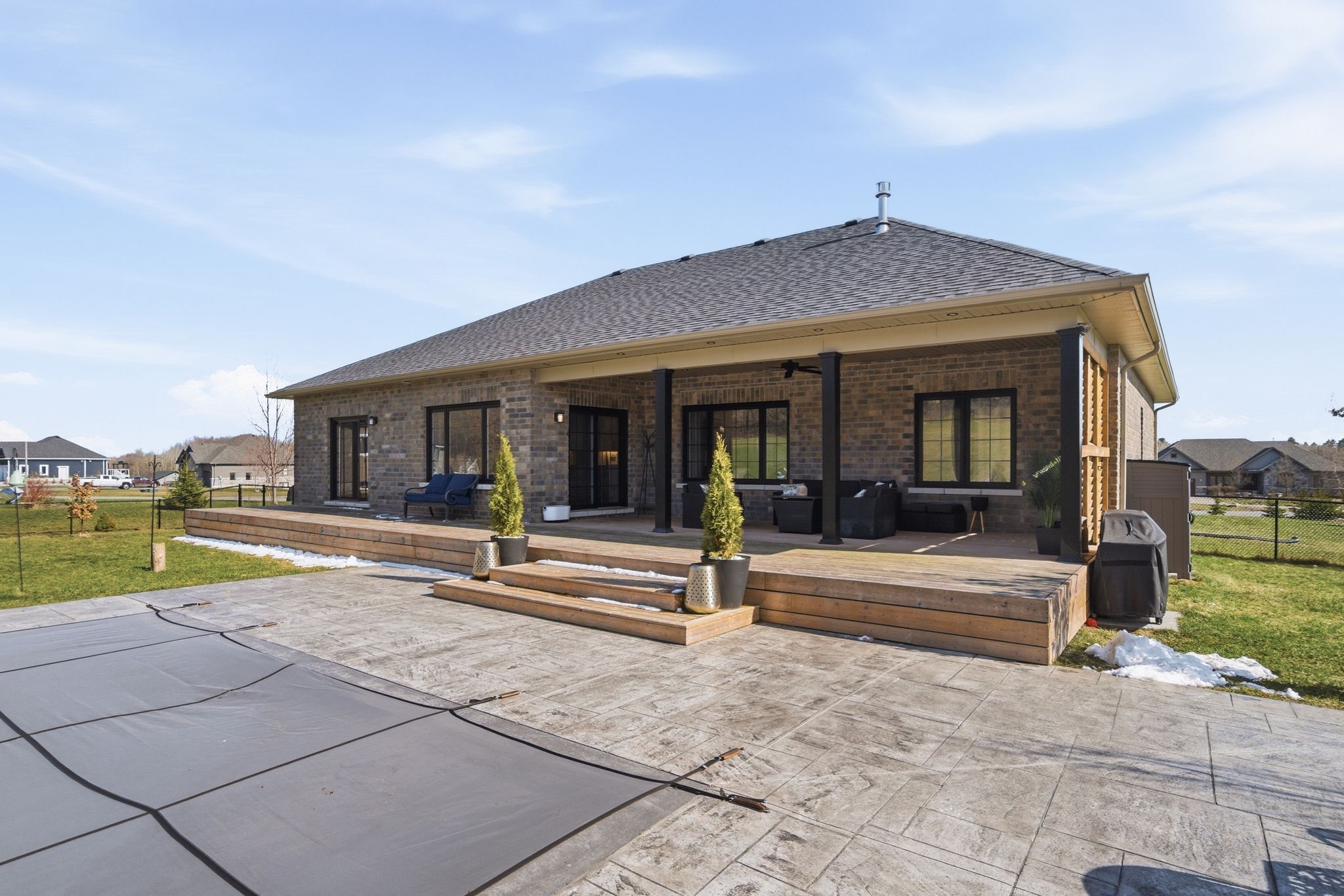 Set on a quiet street, in one of northumberland's best communities, this former stalwood model home (massey estate) sits on 1. 28 acres of landscaped grounds & has been designed to seamlessly blend indoor & outdoor luxury living! With upgrades throughout, the stone & brick exterior leads you to a covered front porch where you enter into the bright, open concept interior ft. 10-foot ceilings, b/i speaker system, upgraded trim, 8-inch baseboards & extensive pot lighting. The living room centres around a gas fp & built-ins w/ integrated lighting and coffered-style ceiling detail. Flowing into a custom eat-in kitchen w/ extensive upgrades; quartz counters & backsplash, work desk, ceiling-height cabinetry, undermount lighting, s/s appliances, servery w/ b/i microwave & centre island w/ apron sink overlooking the dining area ft. A 2nd recessed ceiling & w/o to the covered rear deck w/ pot lights + poolside oasis. W/ 3+1 beds, 3. 5 baths, this home lends itself to private living space for all. The primary suite offers a w/o to the patio, upgraded tray ceiling, w/i closet & 5pc. Ensuite feat. Heated floors, dual quartz kitchen-height vanity, freestanding tub & glass shower w/ bench, while 2 additional beds & 4pc. Are positioned on the other side of the home! Mf laundry w/ custom cabinets & utility sink as well as a mudroom w/ b/i storage offers inside access to the insulated 2-car garage. A finished lower level provides a spacious rec room w/ projector screen, built-ins & games area, 4th bed, 4pc. Bath and room to expand if you wish! Outside, the fully fenced yard is designed for both relaxing and hosting. W/ large access gates on both sides, a paved 10-car drive, outdoor speaker system, a landscaped patio to soak up the sun & a 20x40 heated saltwater pool complemented by a pool house w/ roll up bar window, hydro, prep area & private change room. An absolute true oasis, loaded with value. Mins. To highway 401, lake ontario access, public beaches, schools, shopping & more.