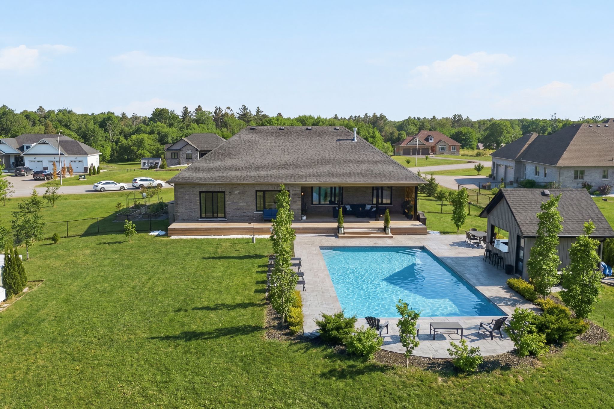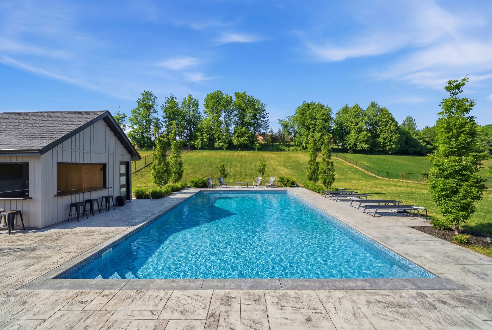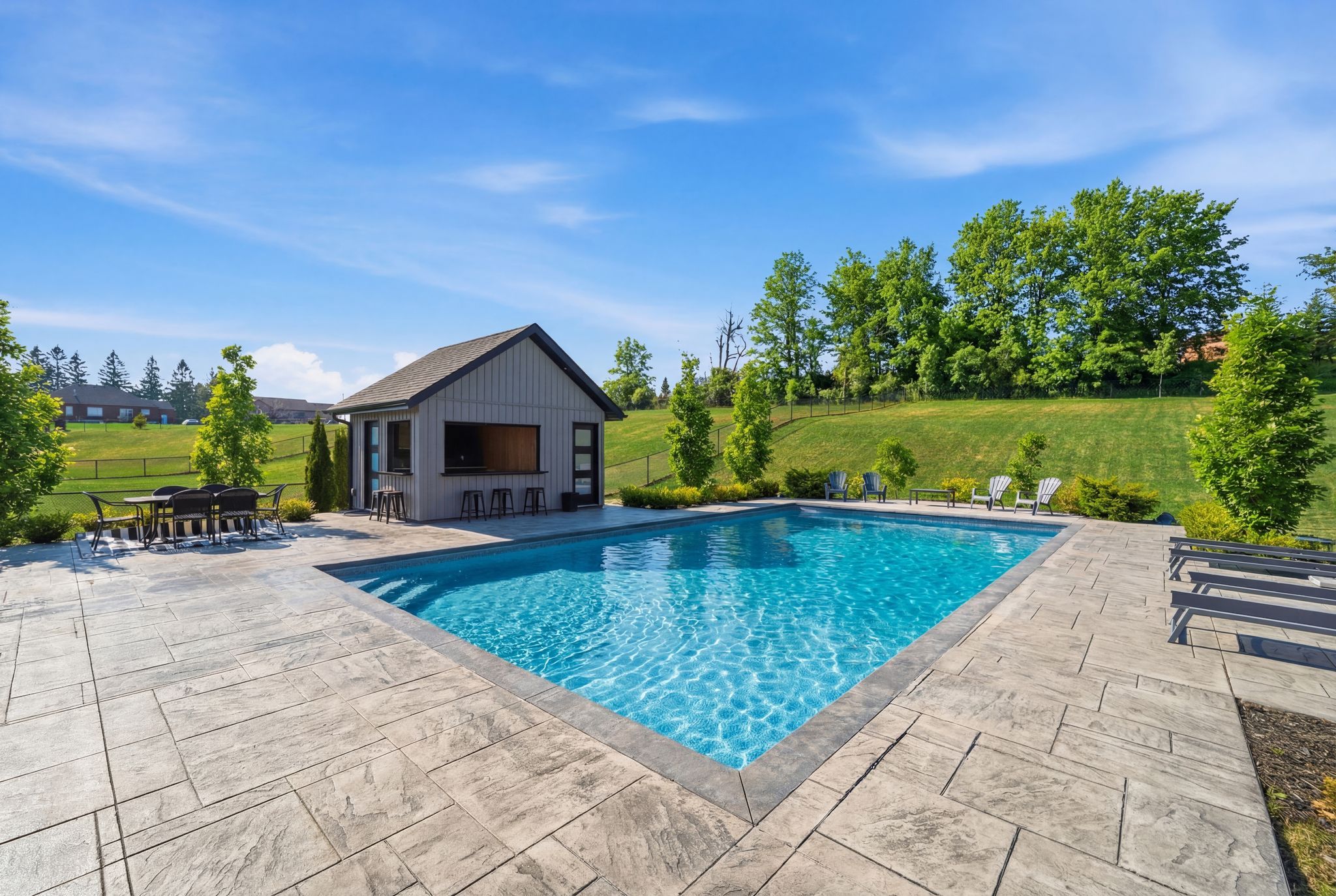 • Heated saltwater pool and pool house for luxurious outdoor living.