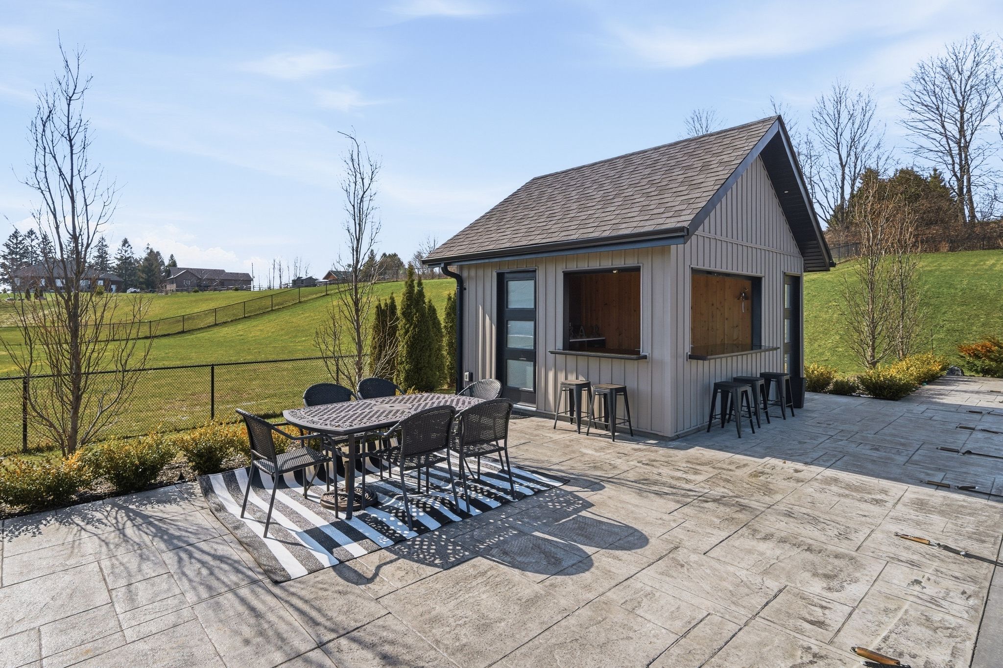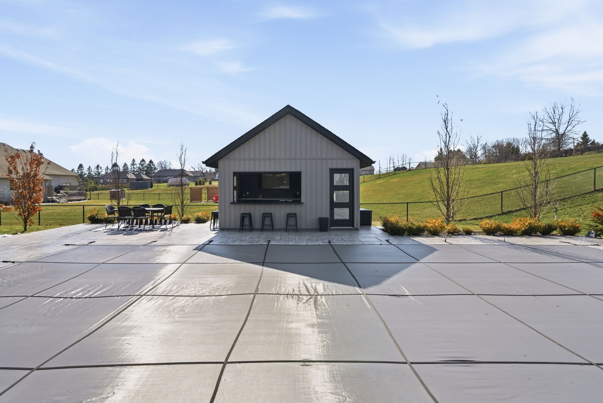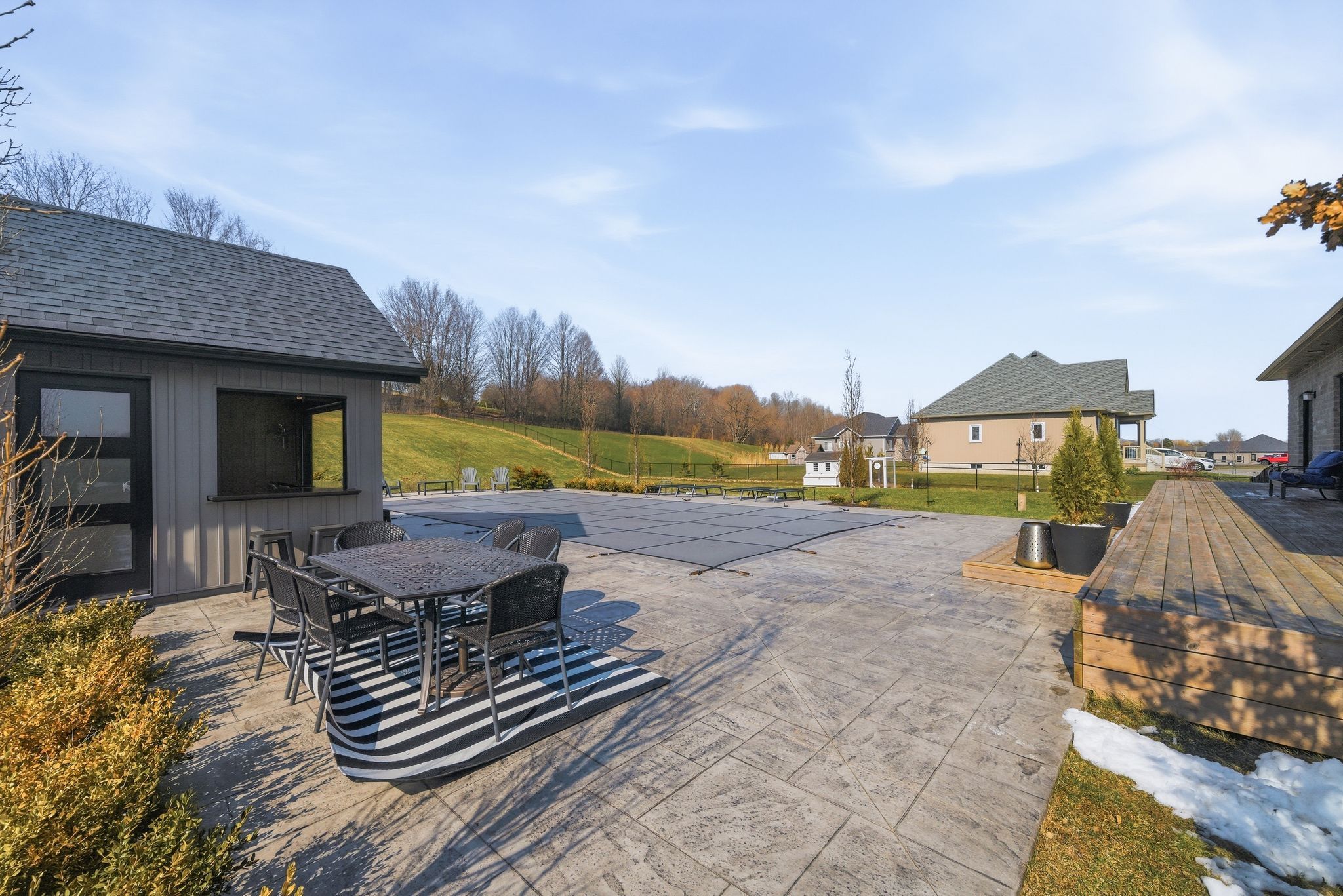• Heated saltwater pool and pool house for luxurious outdoor living.