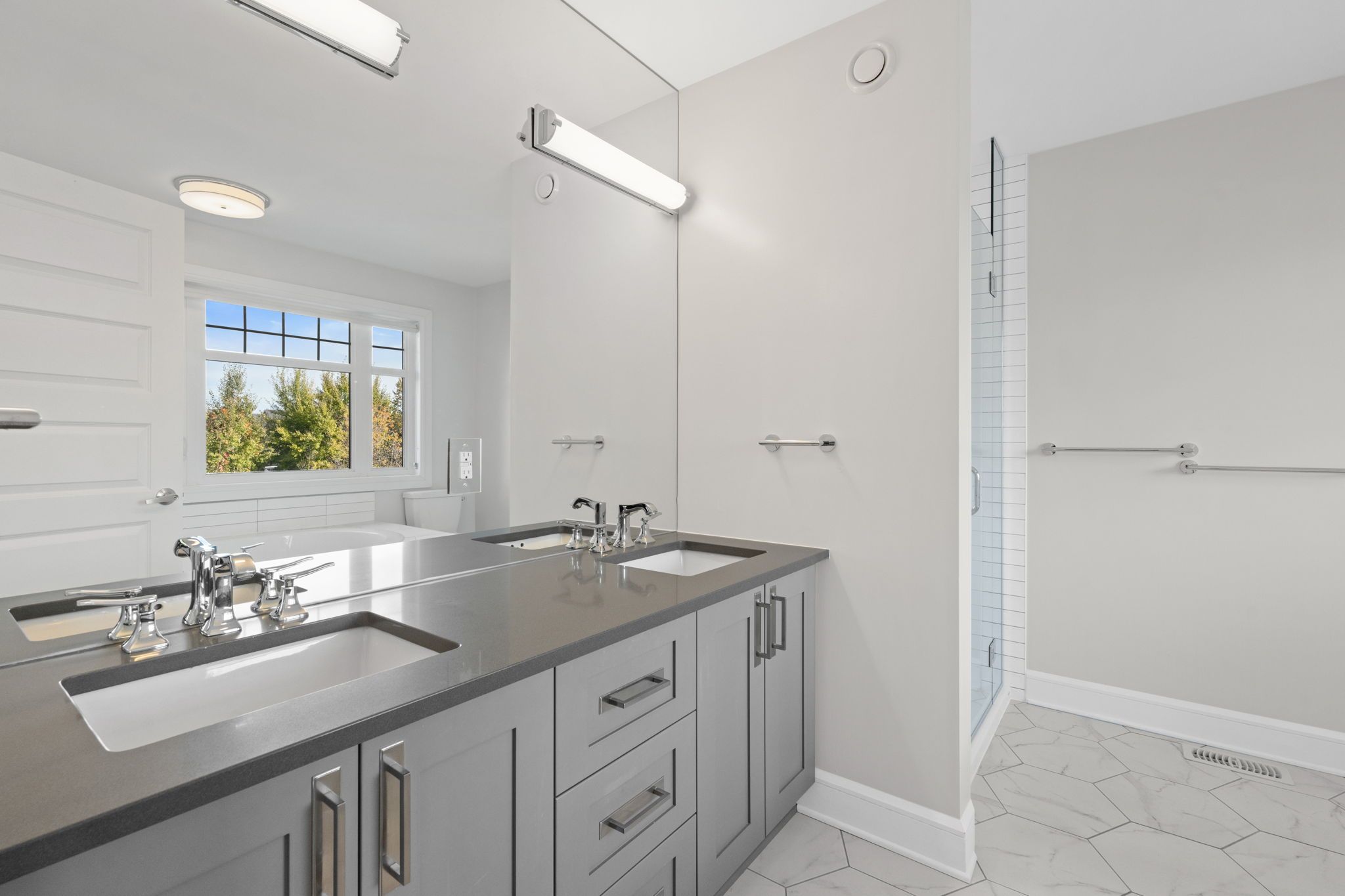 Welcome to this stunning 5-bedroom, 3. 5-bathroom tartan model home nestled in the desirable, family-oriented community of findlay creek! This beautifully upgraded residence - boasting over $250,000 in premium upgrades - offers a modern open-concept layout designed for both style and functionality. The grand kitchen showcases new cabinetry, an eating area with vaulted ceilings, and views overlooking the backyard - perfect for everyday living and entertaining. The kitchen flows seamlessly into the bright and spacious family room featuring large windows and a cozy gas fireplace. The main floor also offers a dedicated home office and a formal dining area, ideal for family gatherings or remote work. Upstairs, discover four generously sized bedrooms, including a luxurious primary suite complete with a walk-in closet and a 4-piece ensuite featuring dual vanity sinks, a soaking tub, and a walk-in shower. The fully finished basement adds incredible versatility, offering a fifth bedroom, a full bathroom, and a large recreation area for added living or entertaining space. Additional highlights include a freshly epoxied garage floor, a brand-new fenced backyard, no front neighbours with peaceful greenery views, and extra space between homes - a rare 10' gap instead of the standard 5' in the newer phase - providing enhanced privacy and comfort. Located close to top-rated schools, parks, shopping, restaurants, walking trails, and public transit, this home truly embodies the best of findlay creek living.