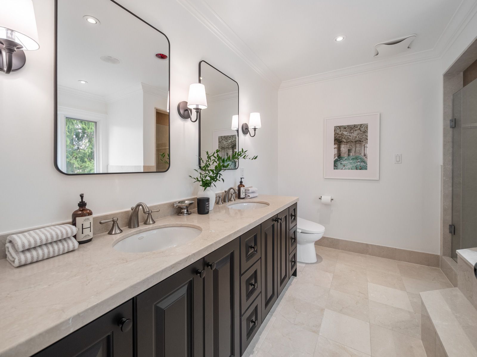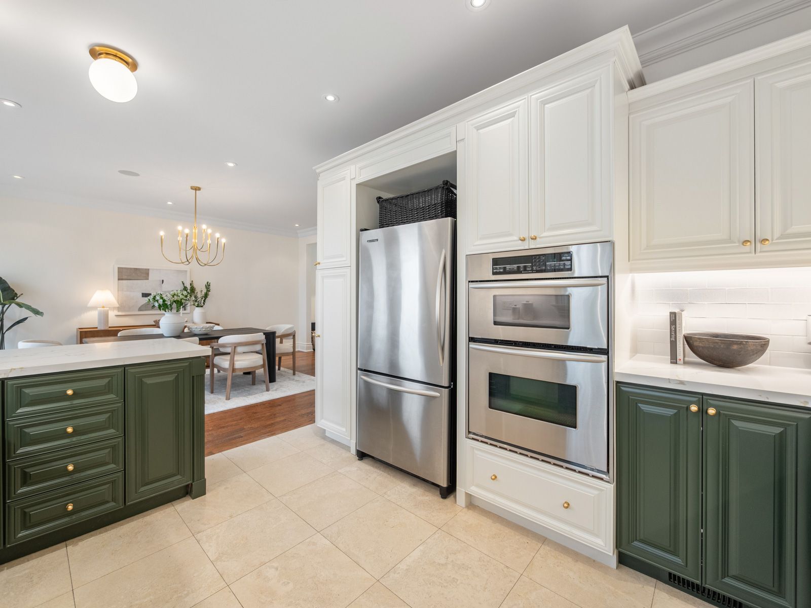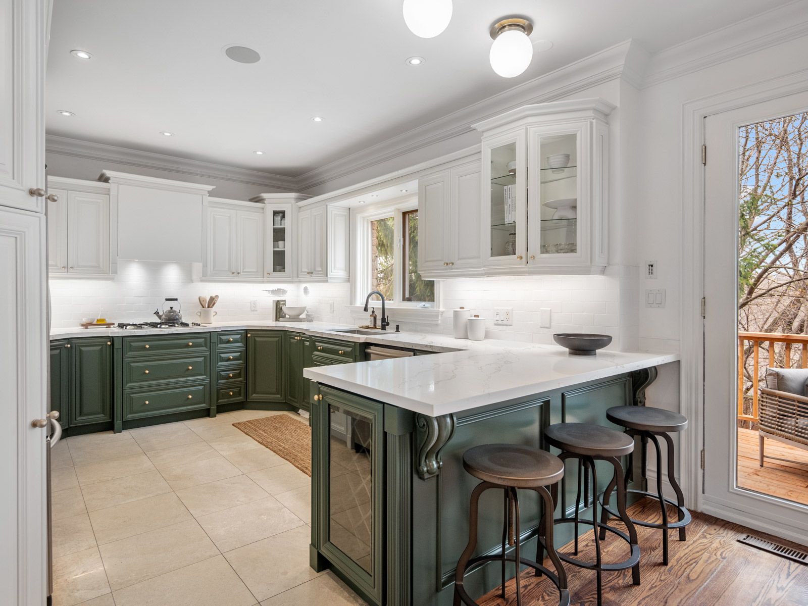 • Gorgeous chef's kitchen with custom cabinetry and quartz countertops.