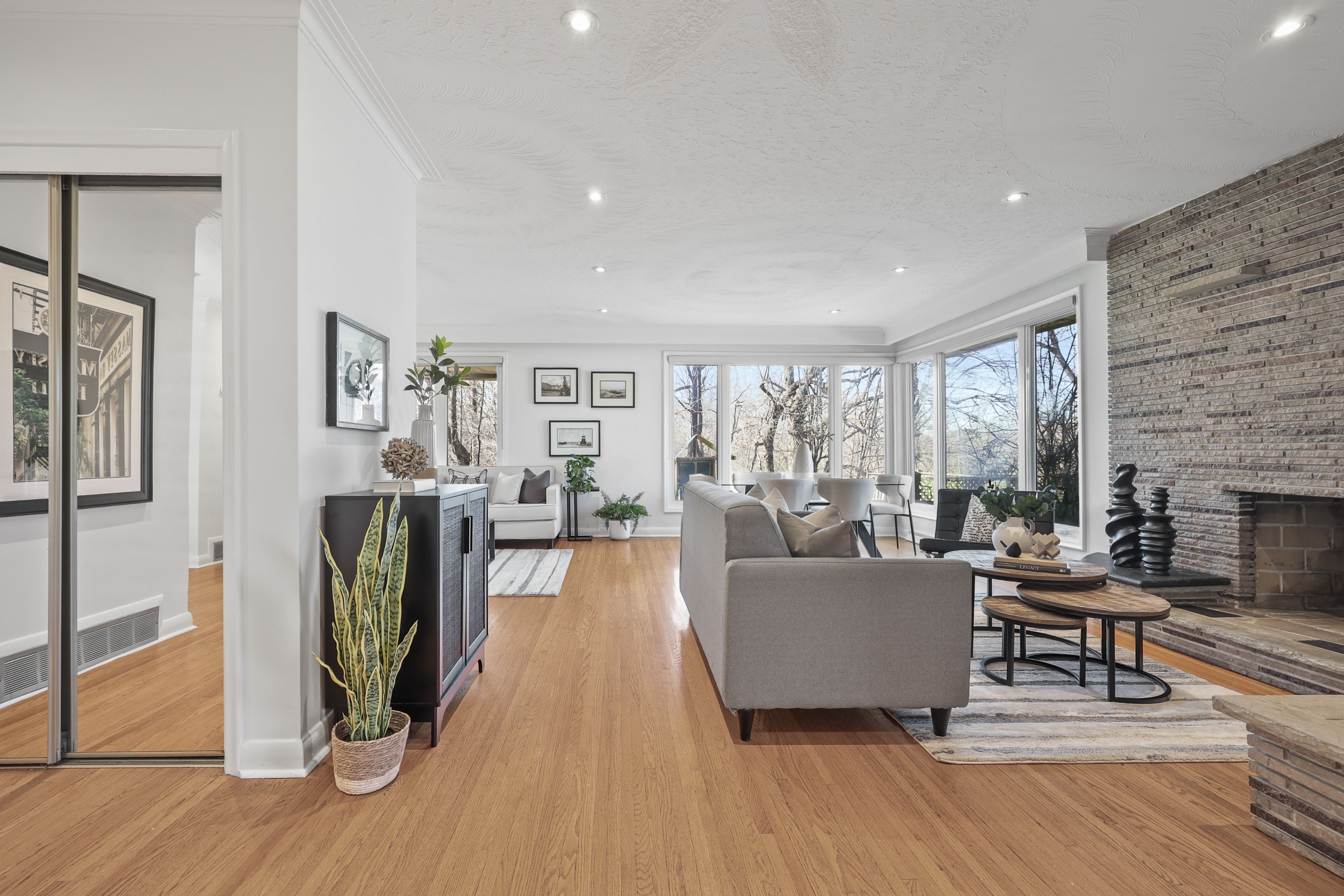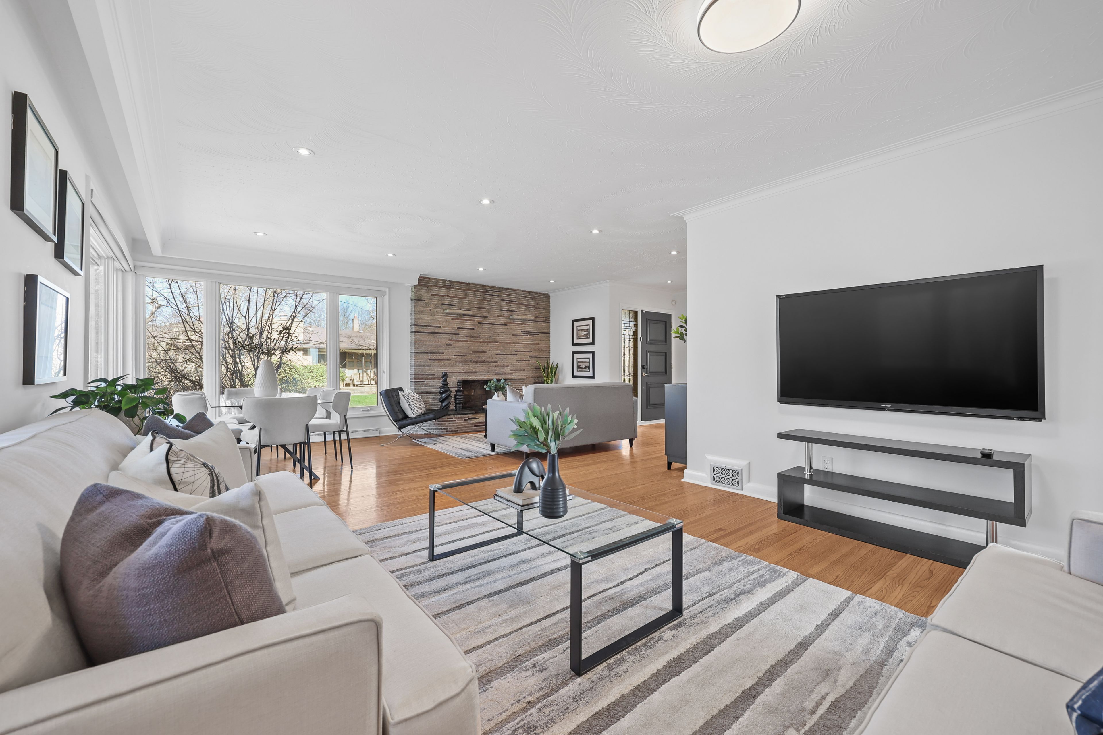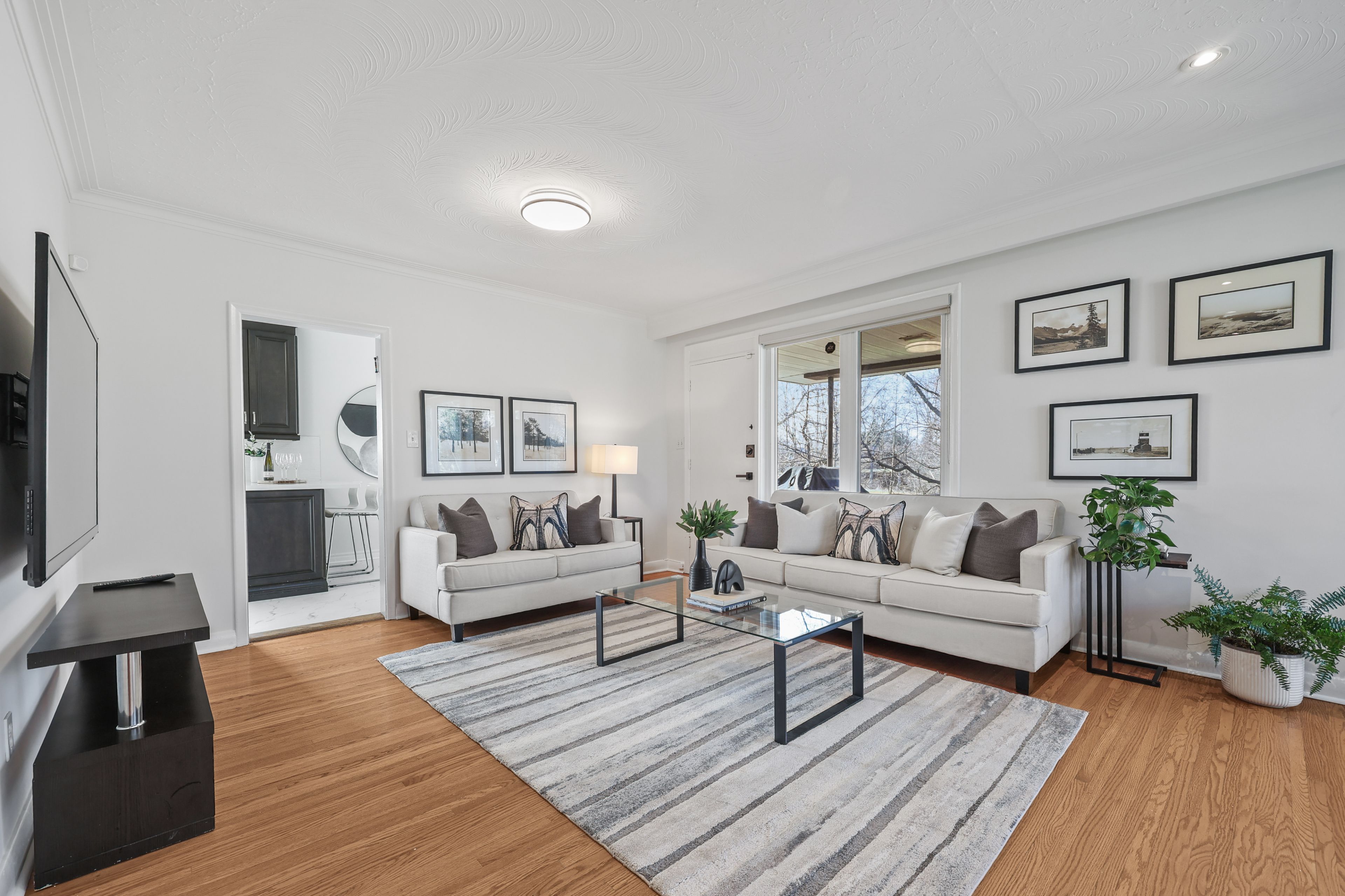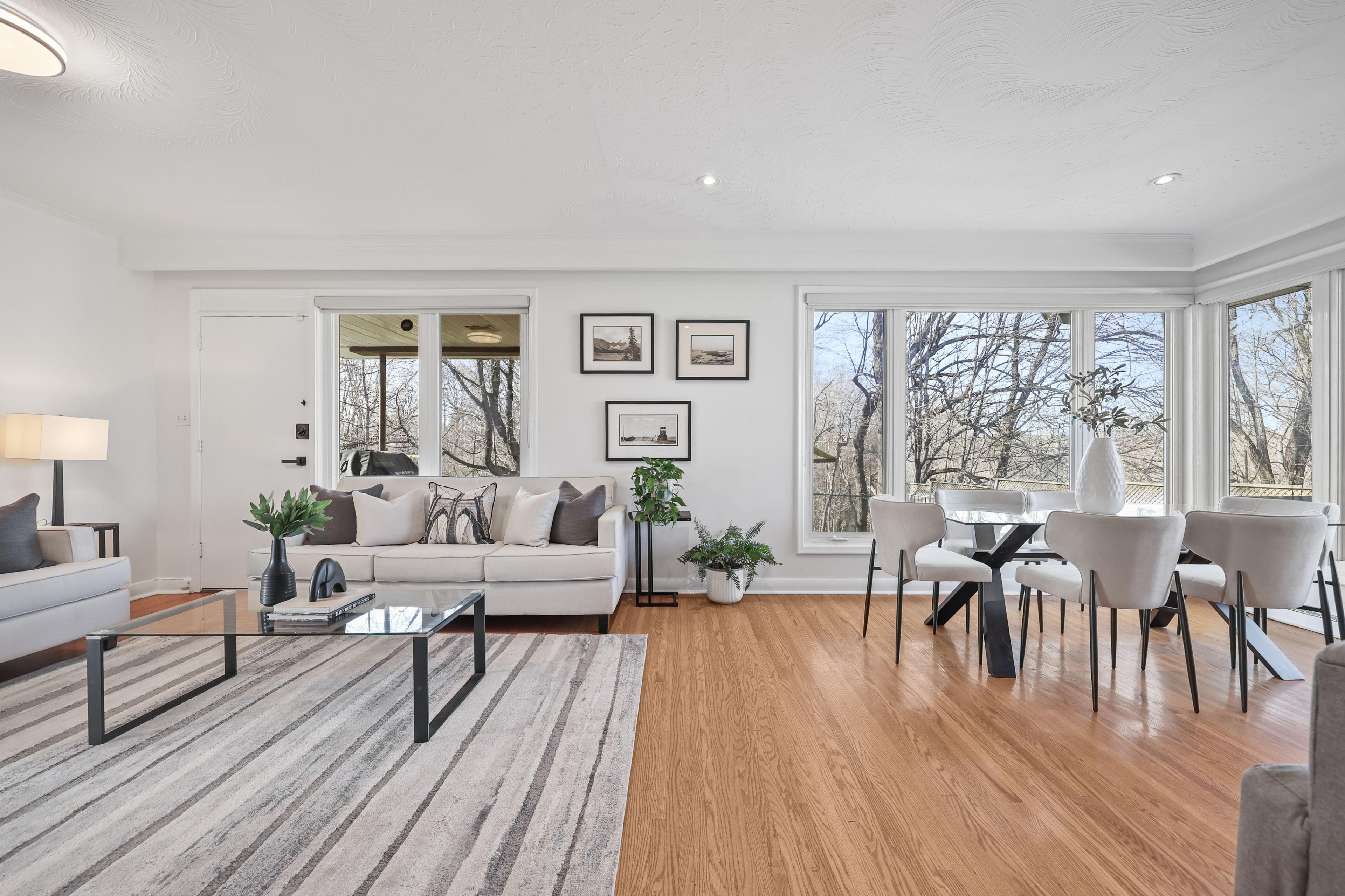 • Large living space with a walk-out to a big backyard surrounded by trees.