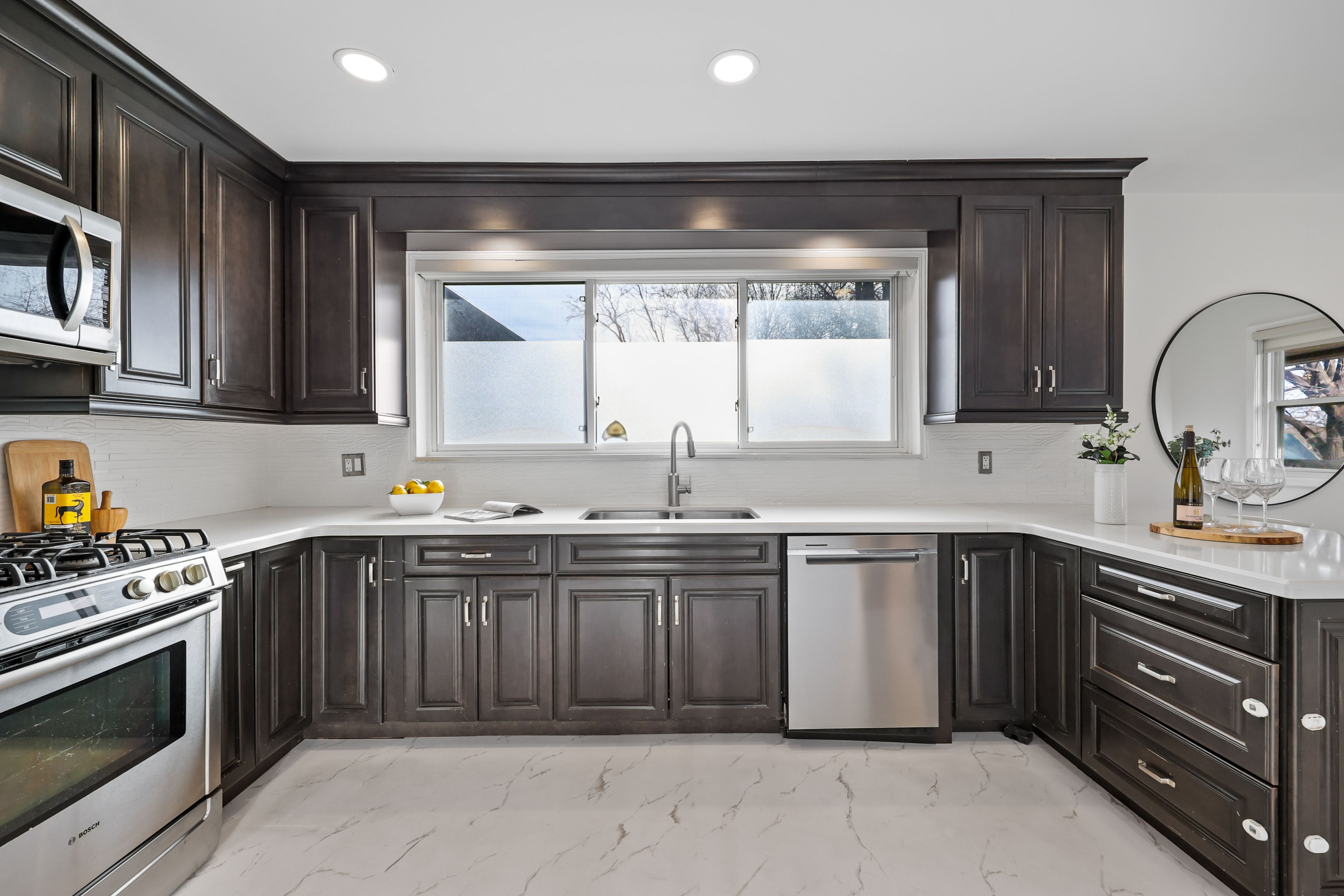 • Finished basement with recreational room, two bedrooms, and ample storage.
