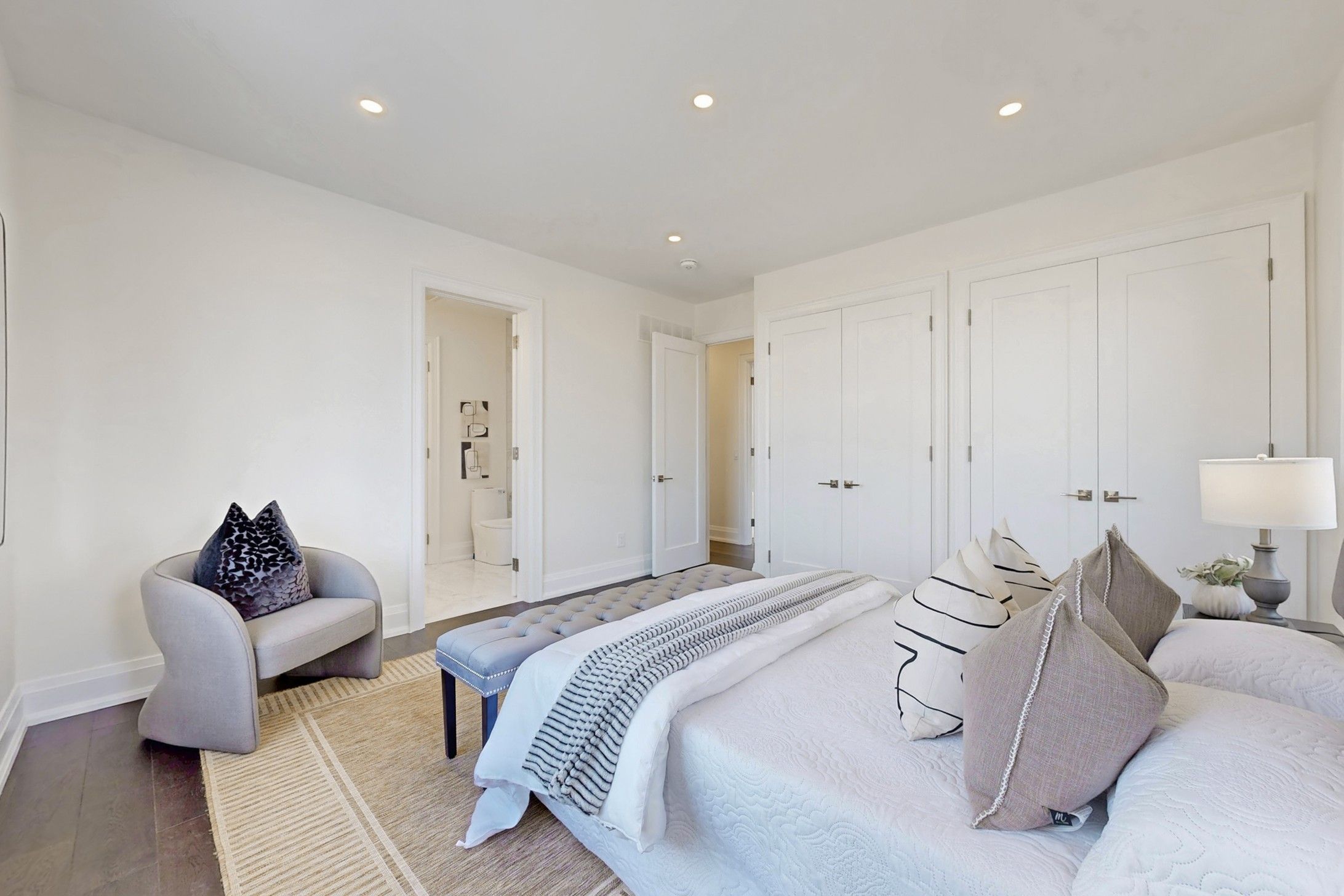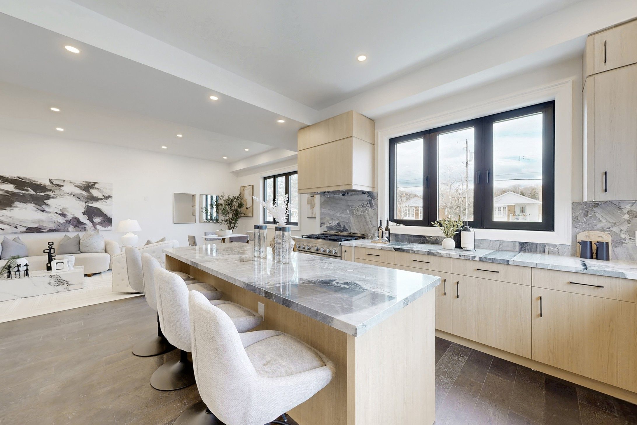 Welcome to this newly built luxury residence in toronto's gta, designed for discerning buyers seeking both elegance and practicality. Set on a generous lot, the stone and brick façade with gabled rooflines, covered porch and juliette balcony set an impressive tone. Inside, wide-plank hardwood flooring, soaring ceilings and a striking floating staircase introduce the main level. A light-filled family/dining room with expansive chef's kitchen, which showcases custom flat-panel cabinetry, professional 6-burner range, built-in refrigerator and a secondary dirty kitchen for prep. A formal living/dining area, full guest suite, powder room and mudroom with garage access complete this floor. Upstairs, the principal bedroom retreat boasts room for a sitting area, a massive walk-in closet and a spa-inspired 5-piece ensuite with freestanding tub, oversized glass shower and double vanity. Three additional bedrooms -- one with its own ensuite -- share a stylish 4-piecebath, while a central laundry room and a versatile den/office provide everyday convenience. The lower level is unique: one side contains a rec room, den, mechanical/storage and bath, perfect for a home theatre or gym, while the other side is a legally registered 2-bedroom suite featuring its own entrance, full kitchen, living/dining area, bath and laundry -- ideal for income, extended family or a nanny. High-efficiency hvac, sump pump, abundant storage and thoughtful sound/fire separation deliver peace of mind. A single built-in garage plus paved driveway, rear deck and fenced yard complete the package.