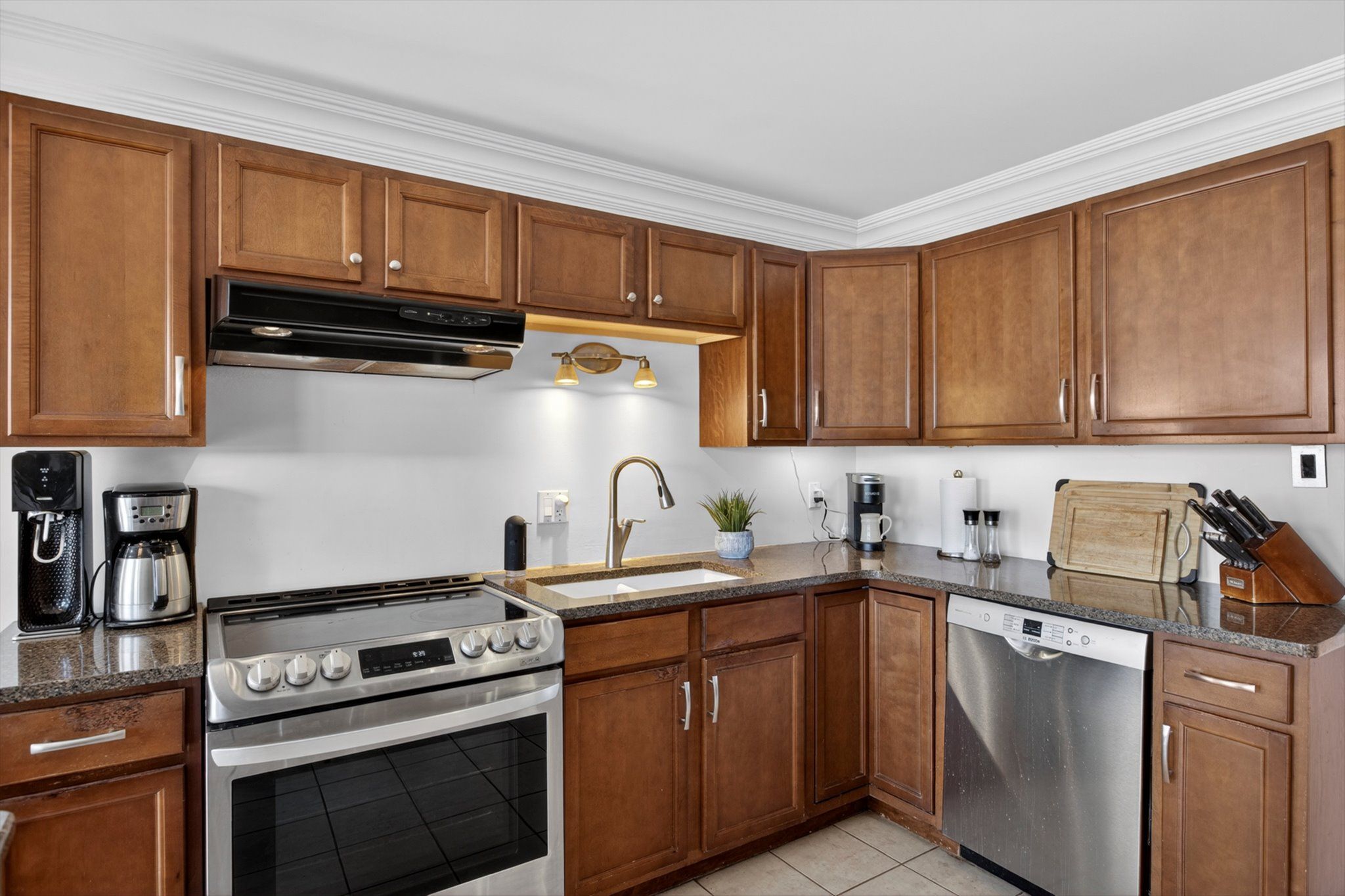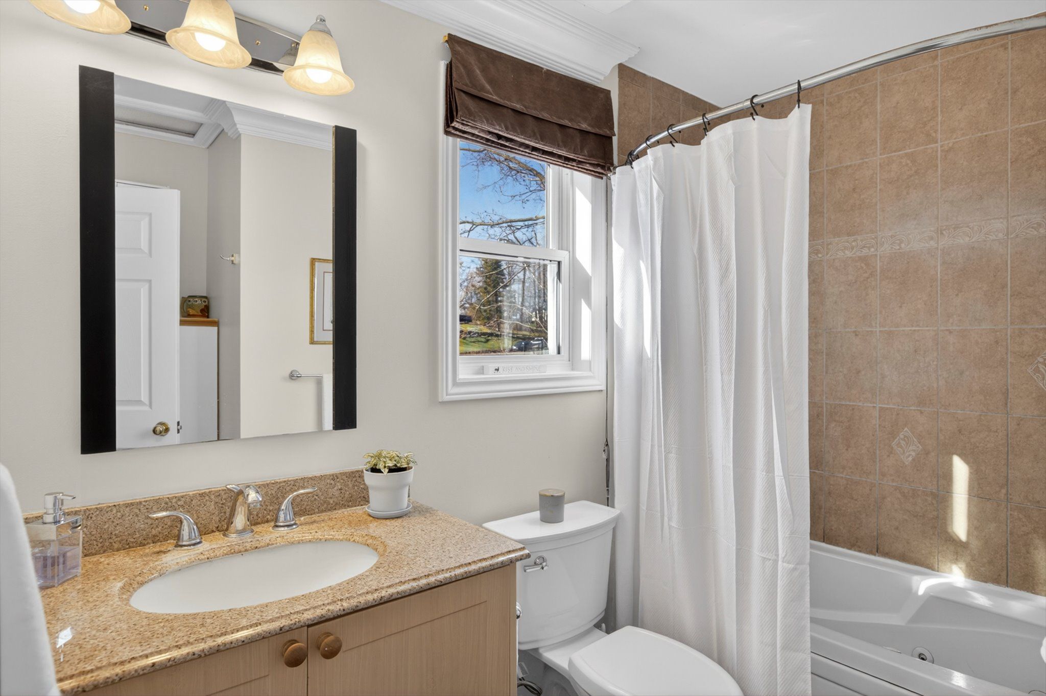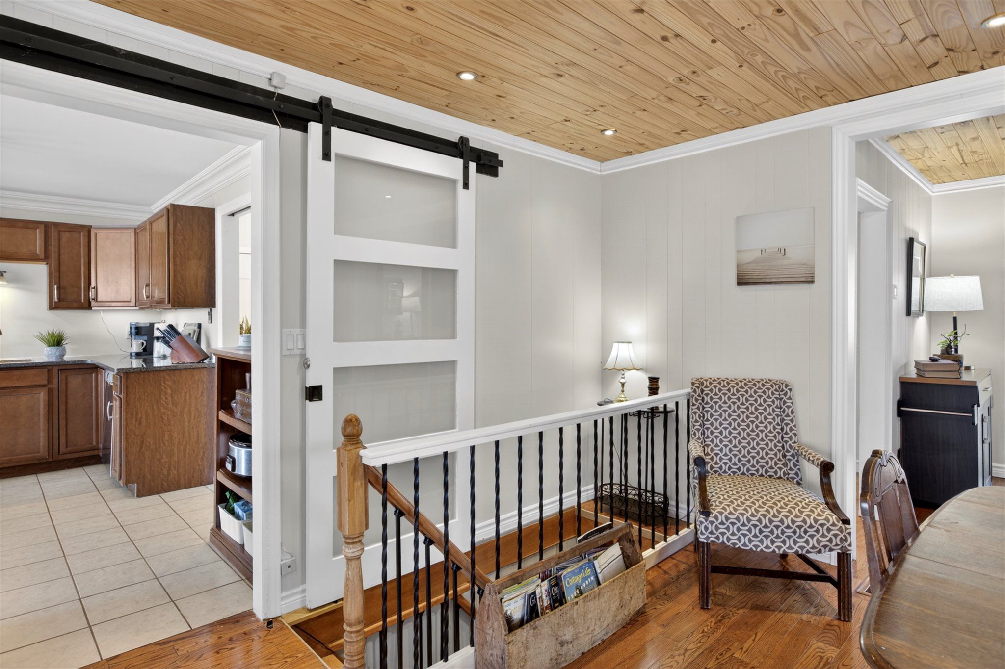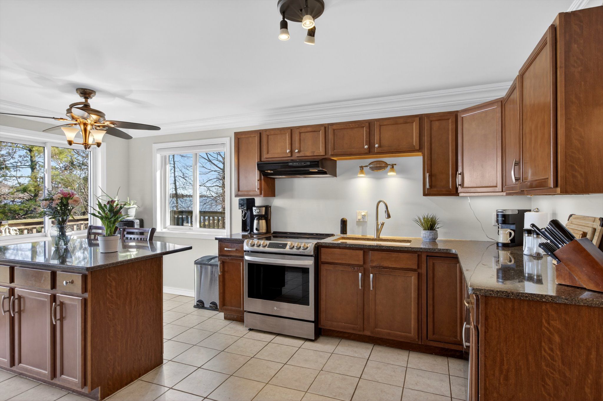 • Spacious main floor layout with large kitchen and granite countertops.