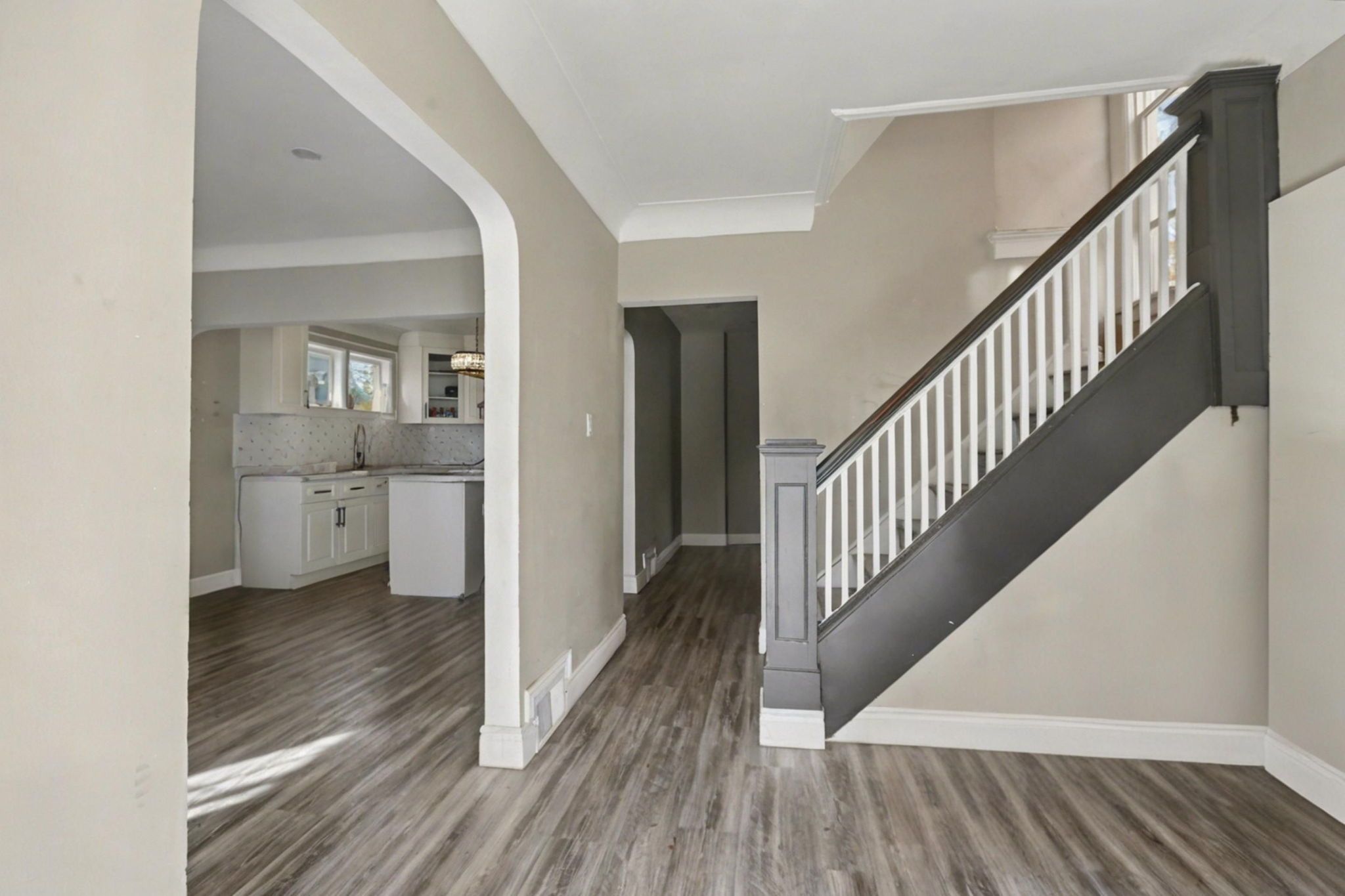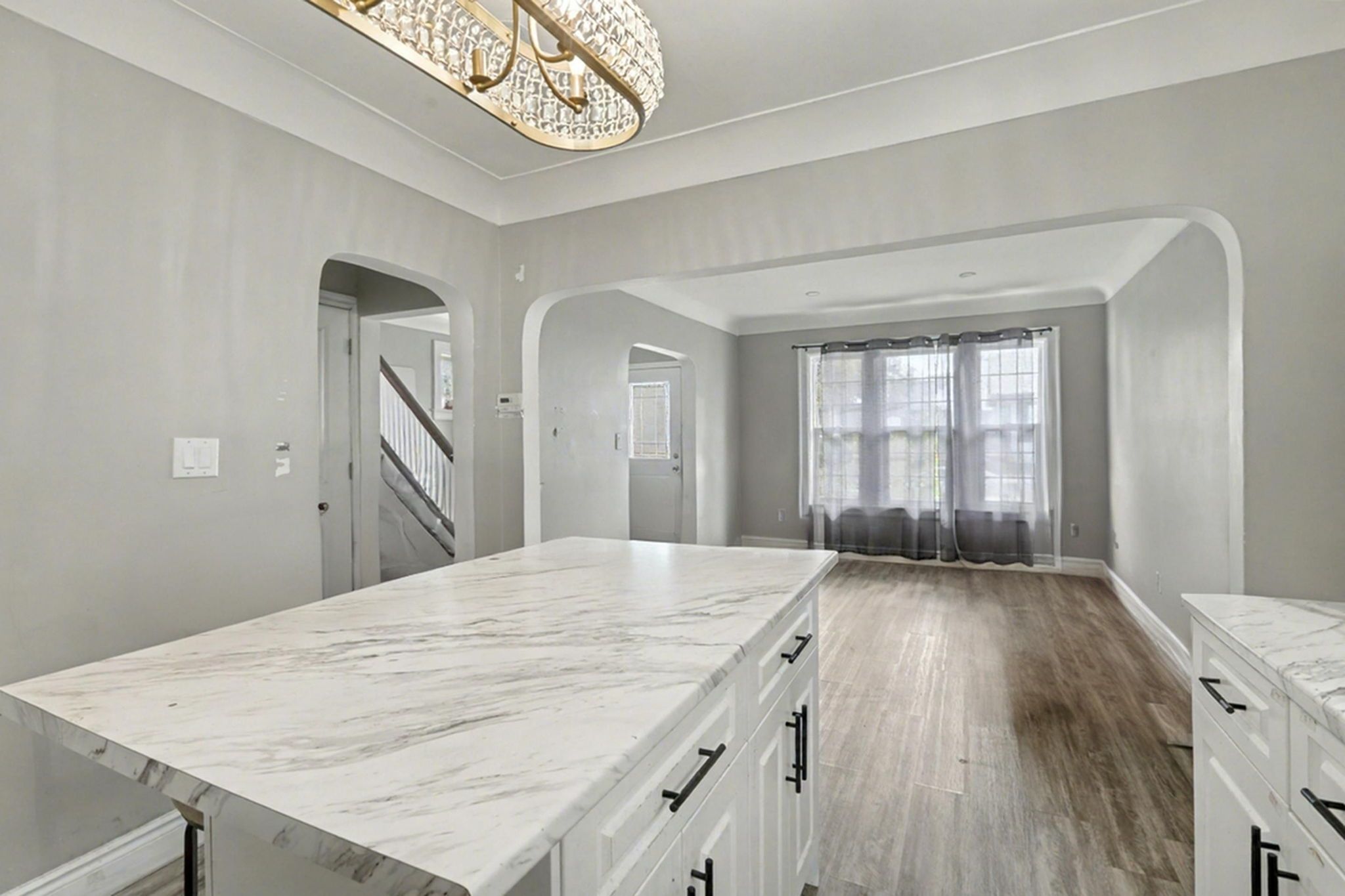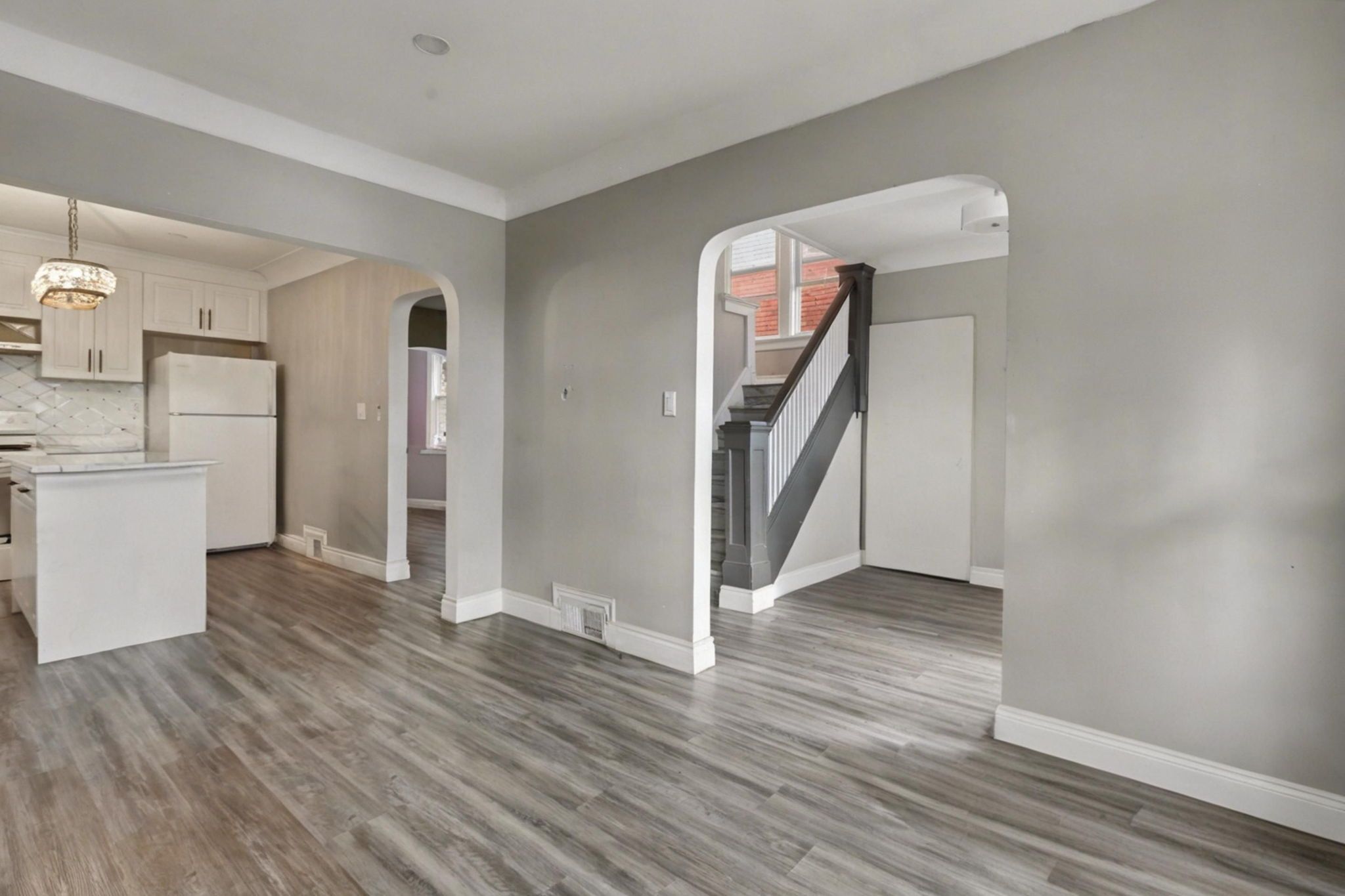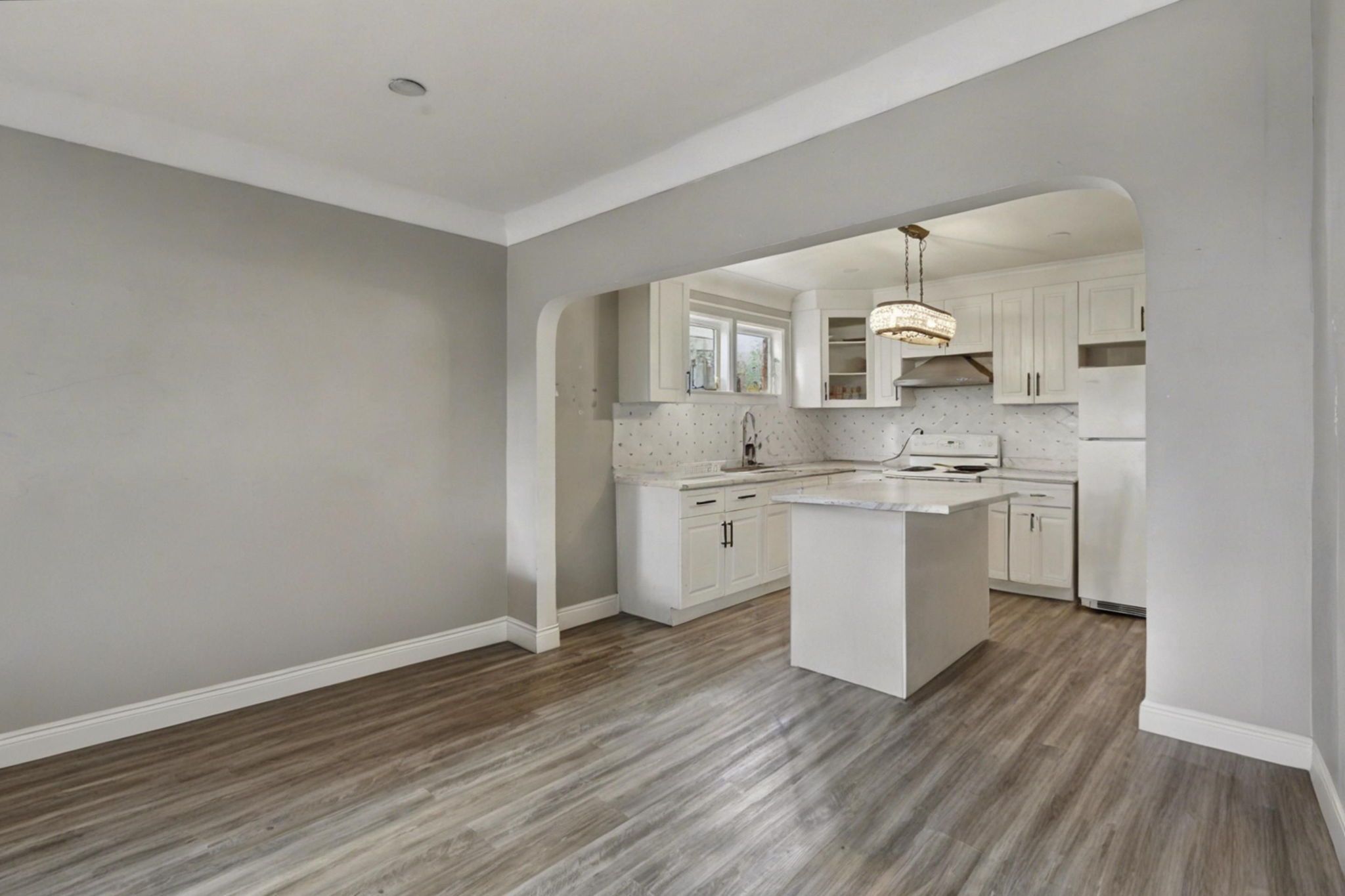 • Includes two full kitchens for versatile living arrangements.