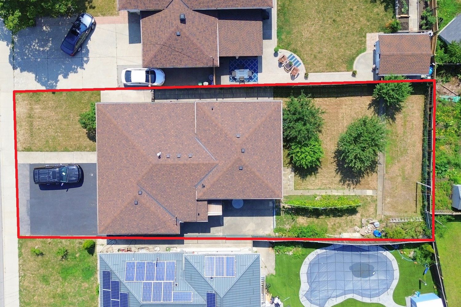 • Backyard includes fruit trees and a garden area for gardening enthusiasts.
