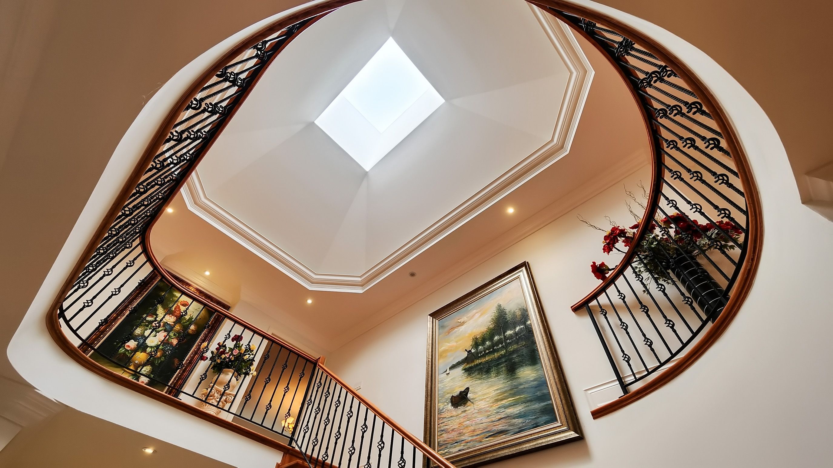 • Gourmet eat-in kitchen with skylight, perfect for meals and gatherings.