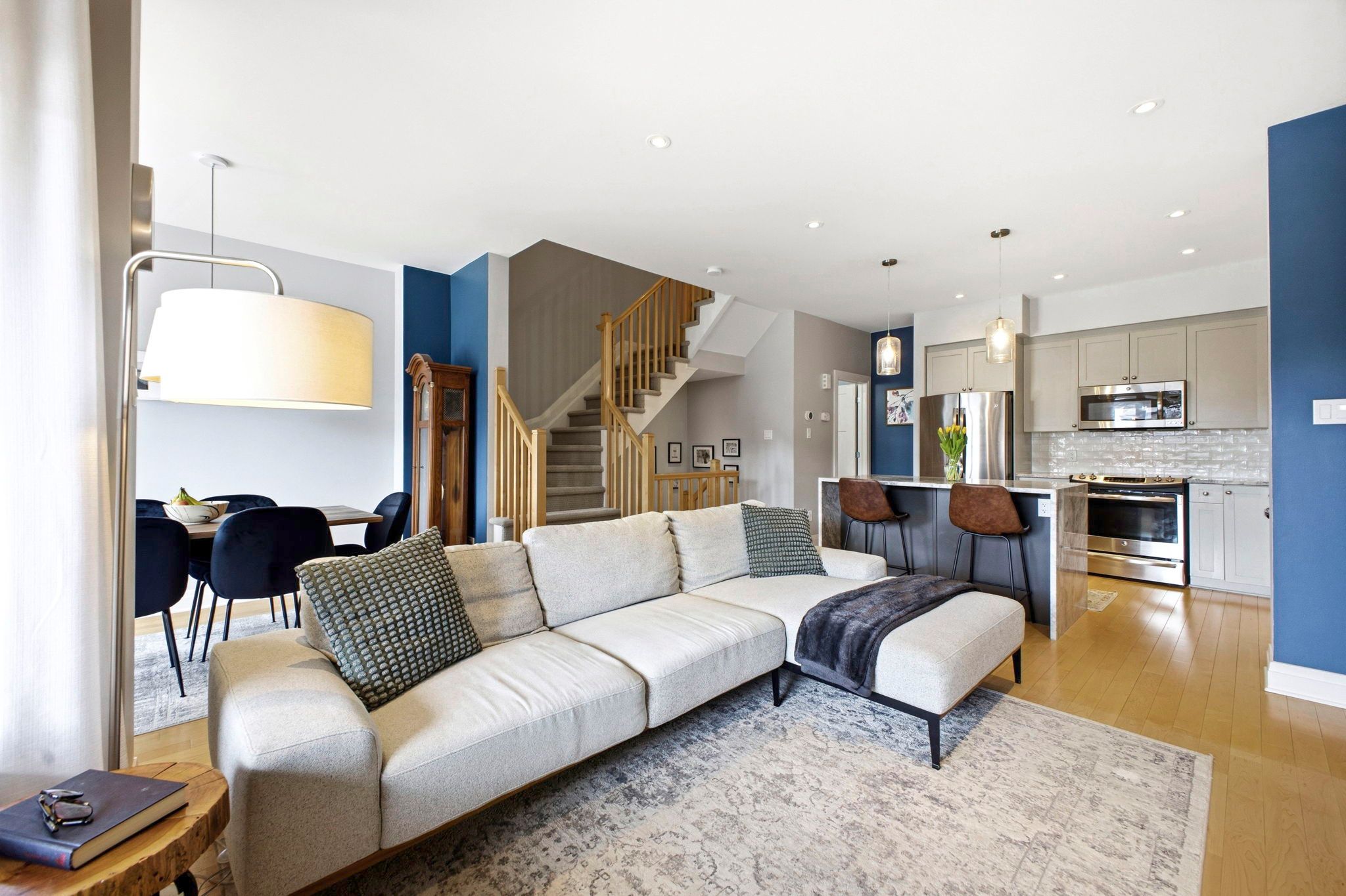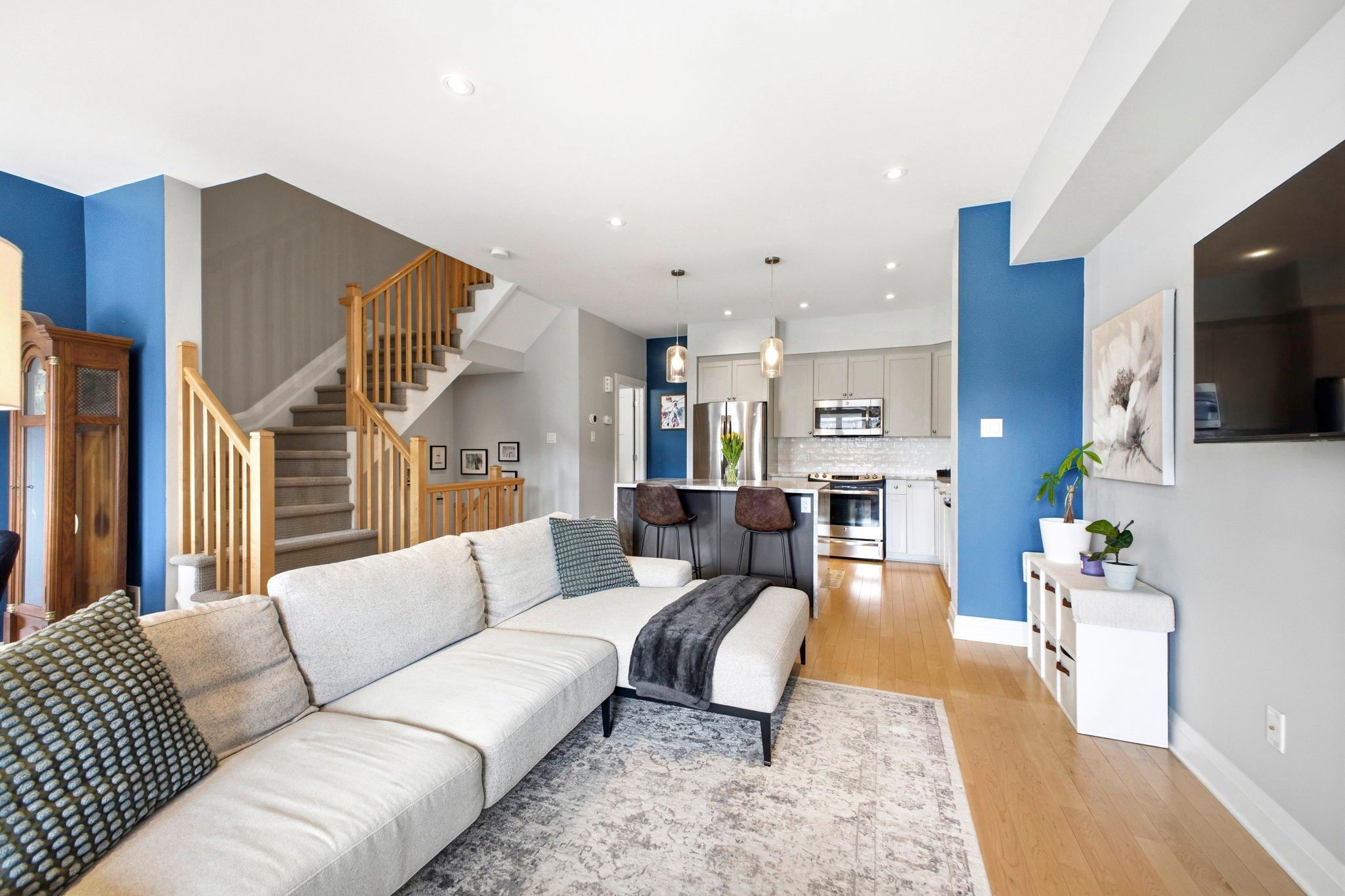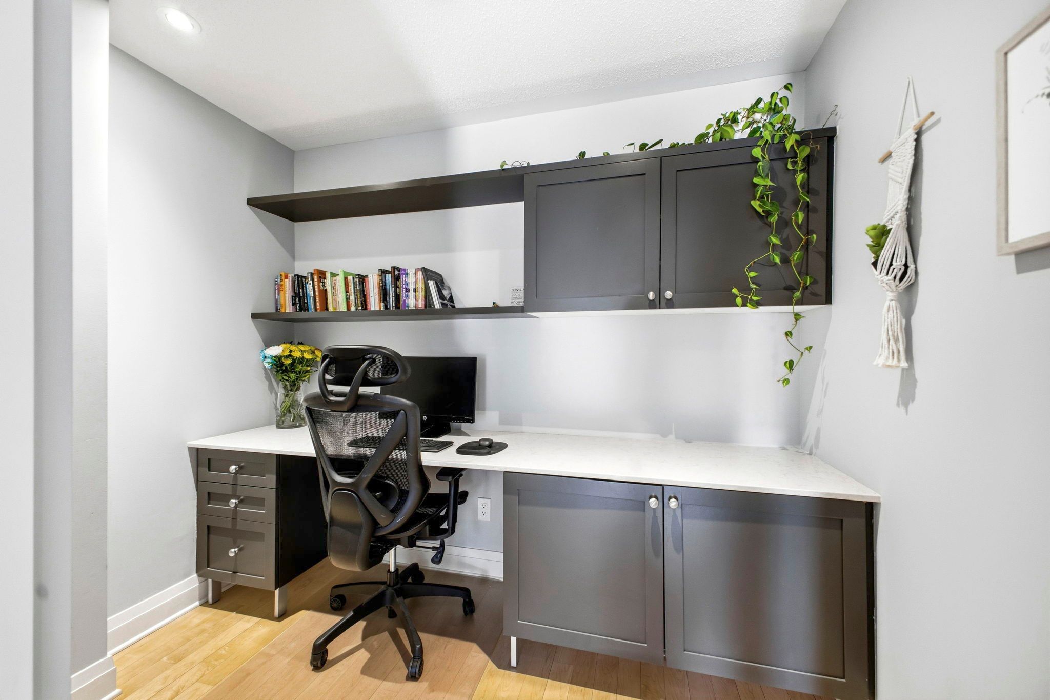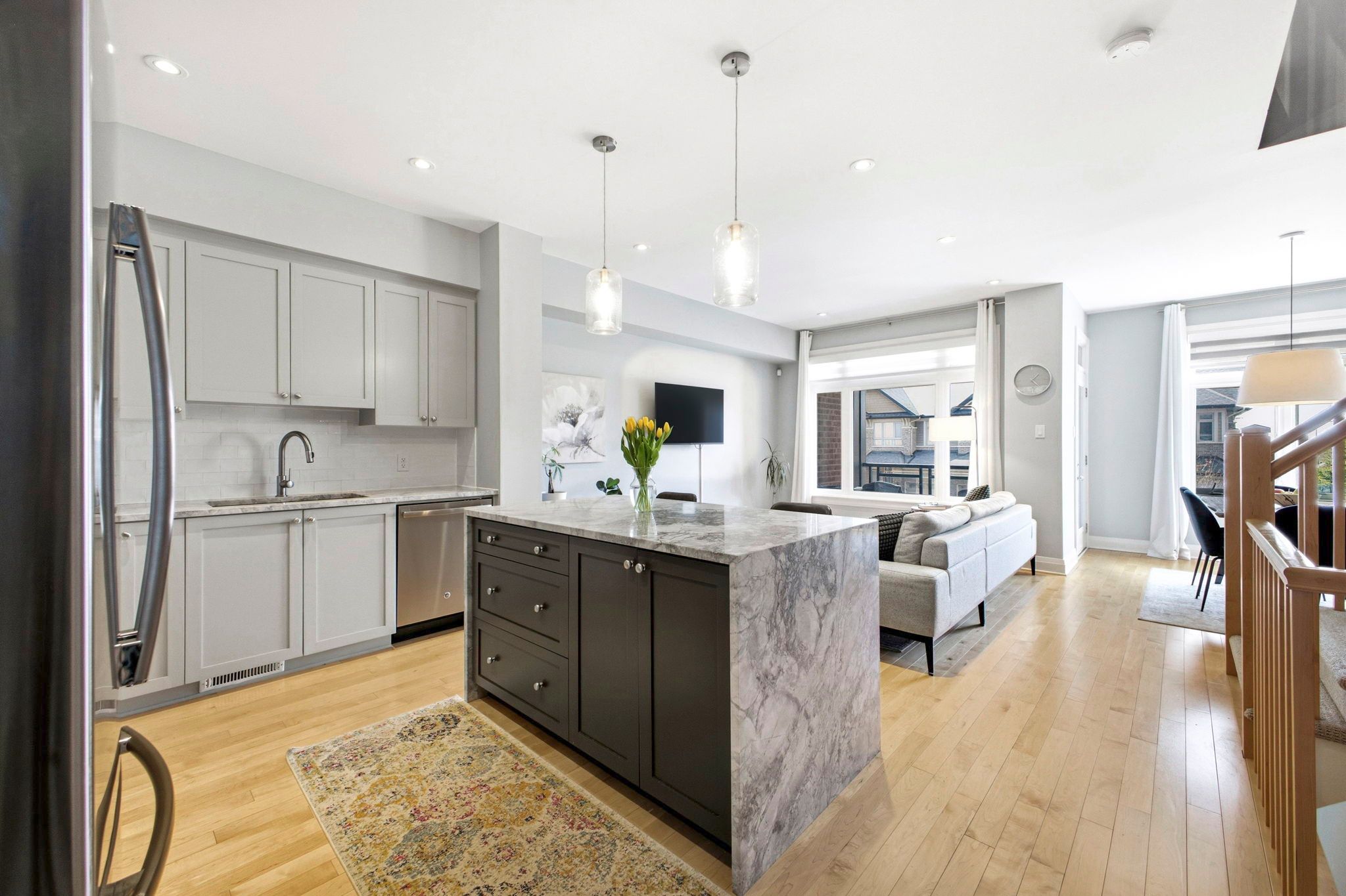 This home shows like a model with notable upgrades throughout! Discover the modern design & smart functionality of this stylish home! The ground level welcomes you with a spacious foyer & a versatile living area that can easily serve as a home office already outfitted with a built in desk -ideal for today's flexible lifestyles. This level also provides convenient interior access to the garage & offers plenty of storage, making day-to-day living both practical & efficient. The second level serves as the heart of the home, showcasing a bright & open-concept design. Filled with natural light & flow creating a warm & inviting space for both entertaining and everyday living. The contemporary kitchen features sleek cabinetry, quality finishes, & a showpiece waterfall edge quartz island that provides additional workspace & casual seating. A convenient two-piece powder room is located on this level, adding to the overall functionality. This floor also includes access to an outdoor terrace, perfect for enjoying fresh air & relaxing moments. On the upper level, you'll find two well-proportioned bedrooms designed for comfort & privacy along with a loft/flex space ideal for another home office. A full bathroom featuring modern finishes and a clean, efficient layout. The basement offers unfinished storage space. With its thoughtful three-storey design, this home offers a perfect balance of style, effeciency, low maintenance & practicality. This home is an excellent choice for professionals, investors, couples, or small families seeking a contemporary home in a convenient location close to parks, schools, shopping, and transit. This is a fantastic opportunity to own a beautifully designed richcraft home that delivers comfort, functionality, and modern appeal. Great location close to many amenities, public transit, parks, schools and more. Low monthly maintenance fee of $62. 84 covers management, snow removal for common areas, & general maintenance.
