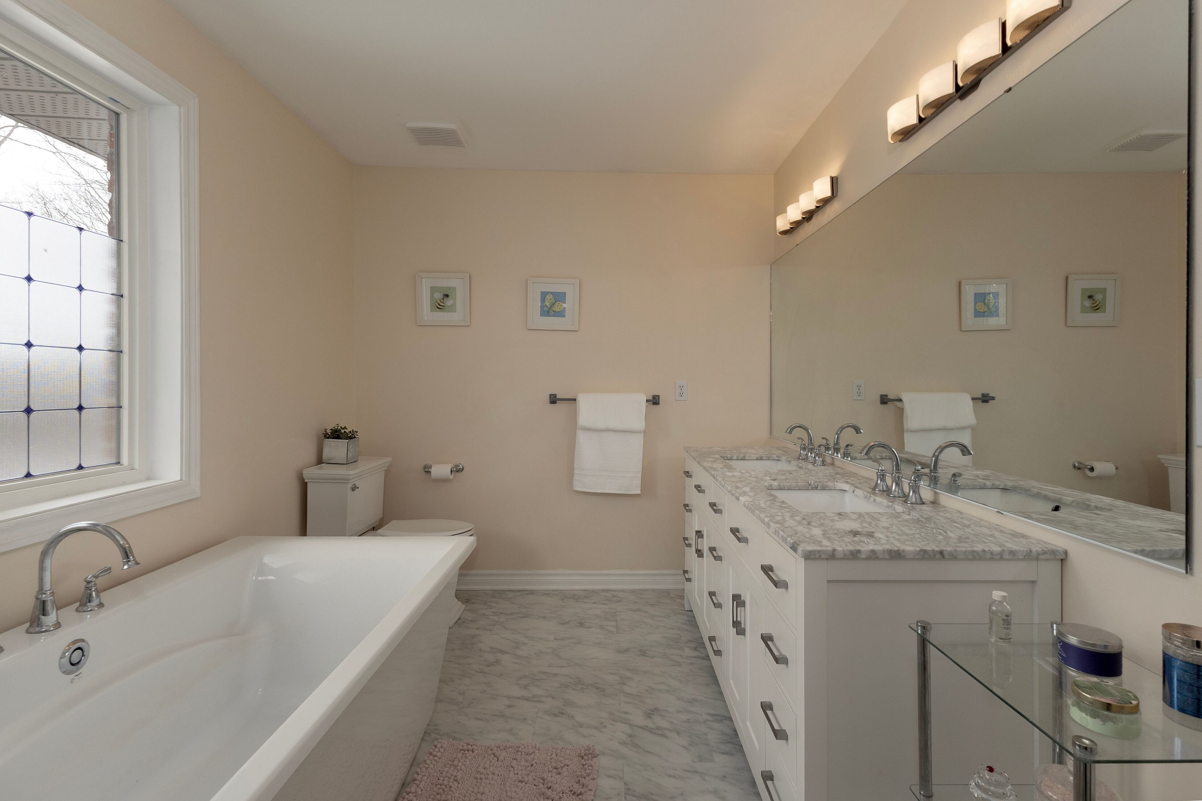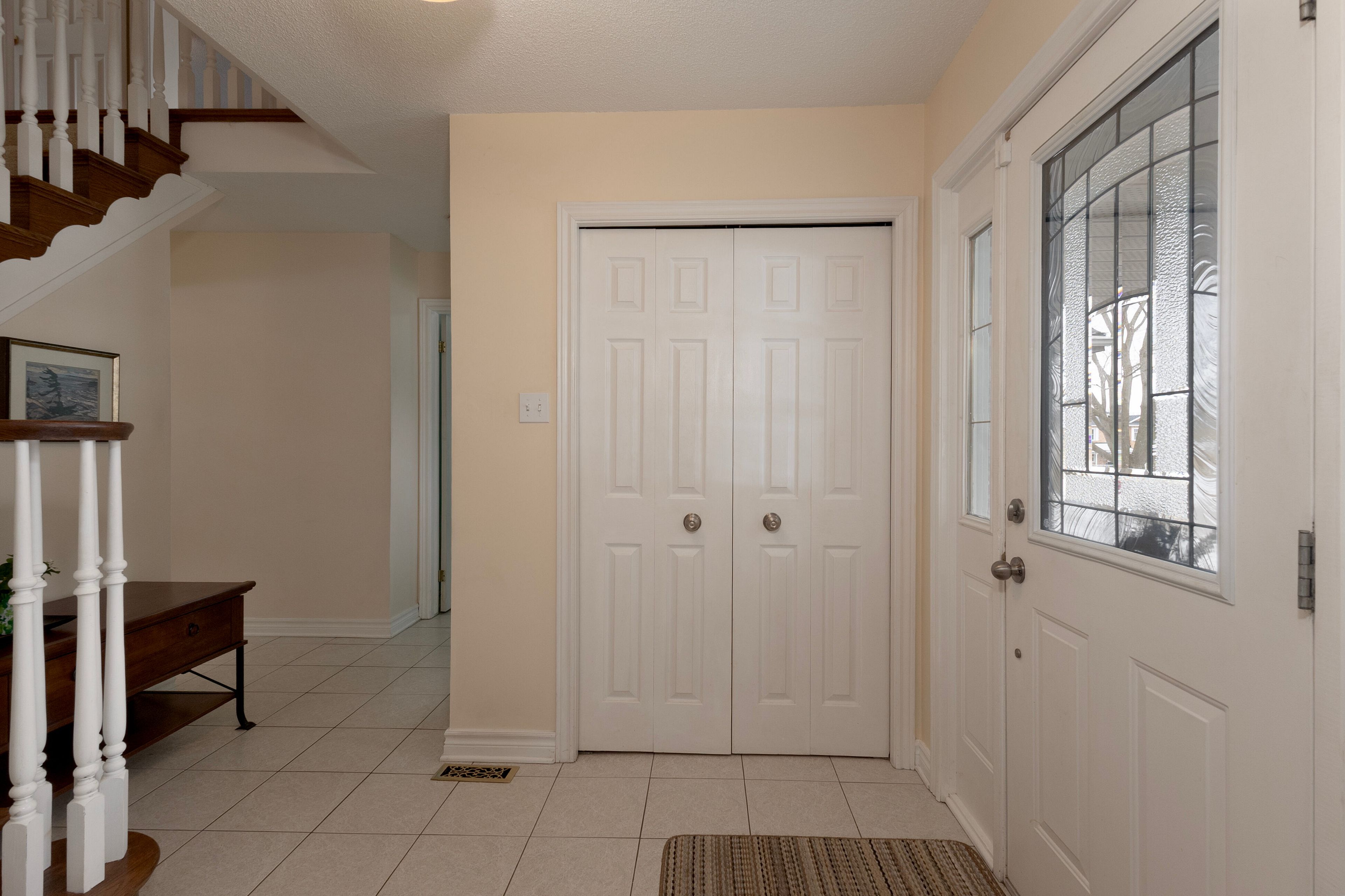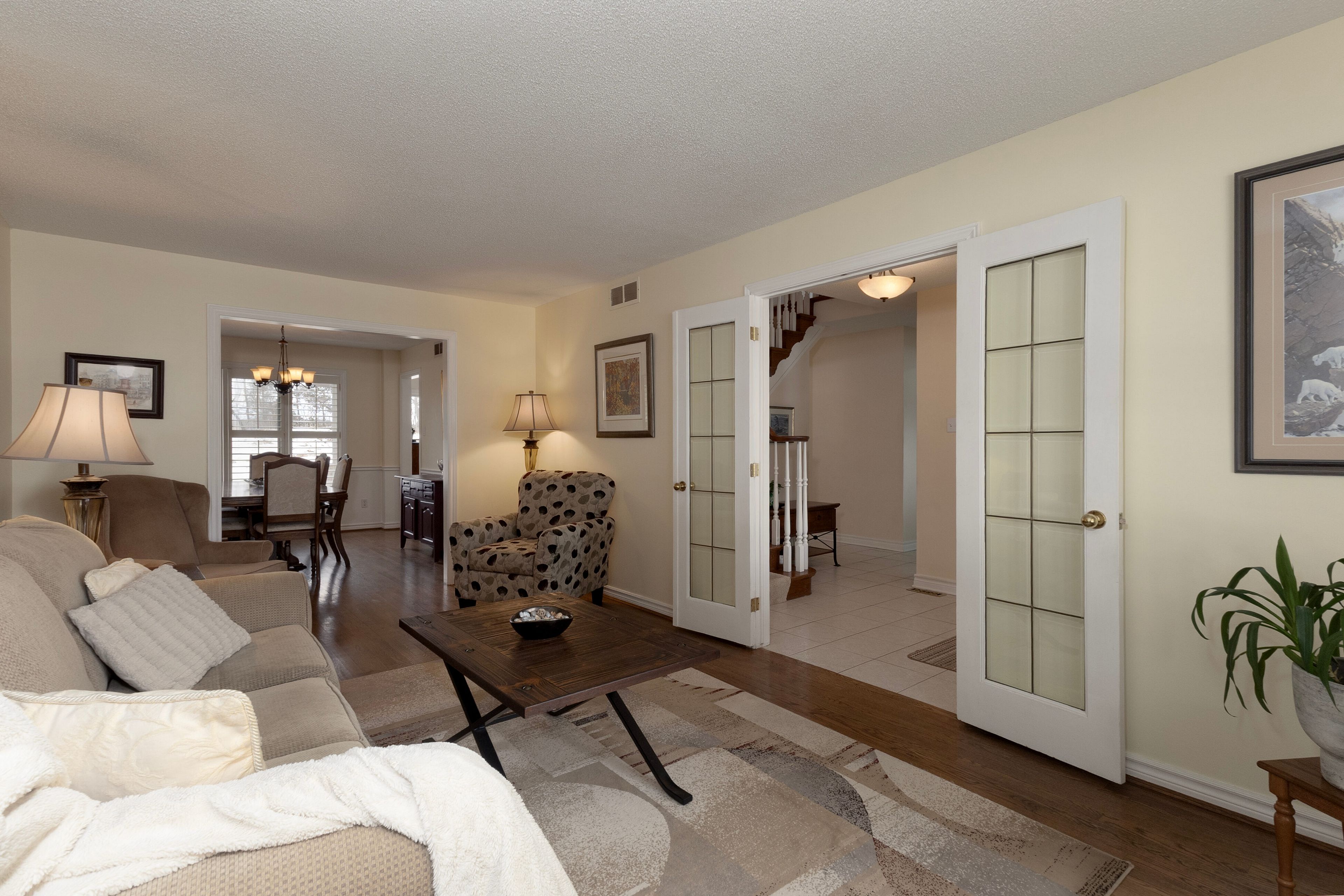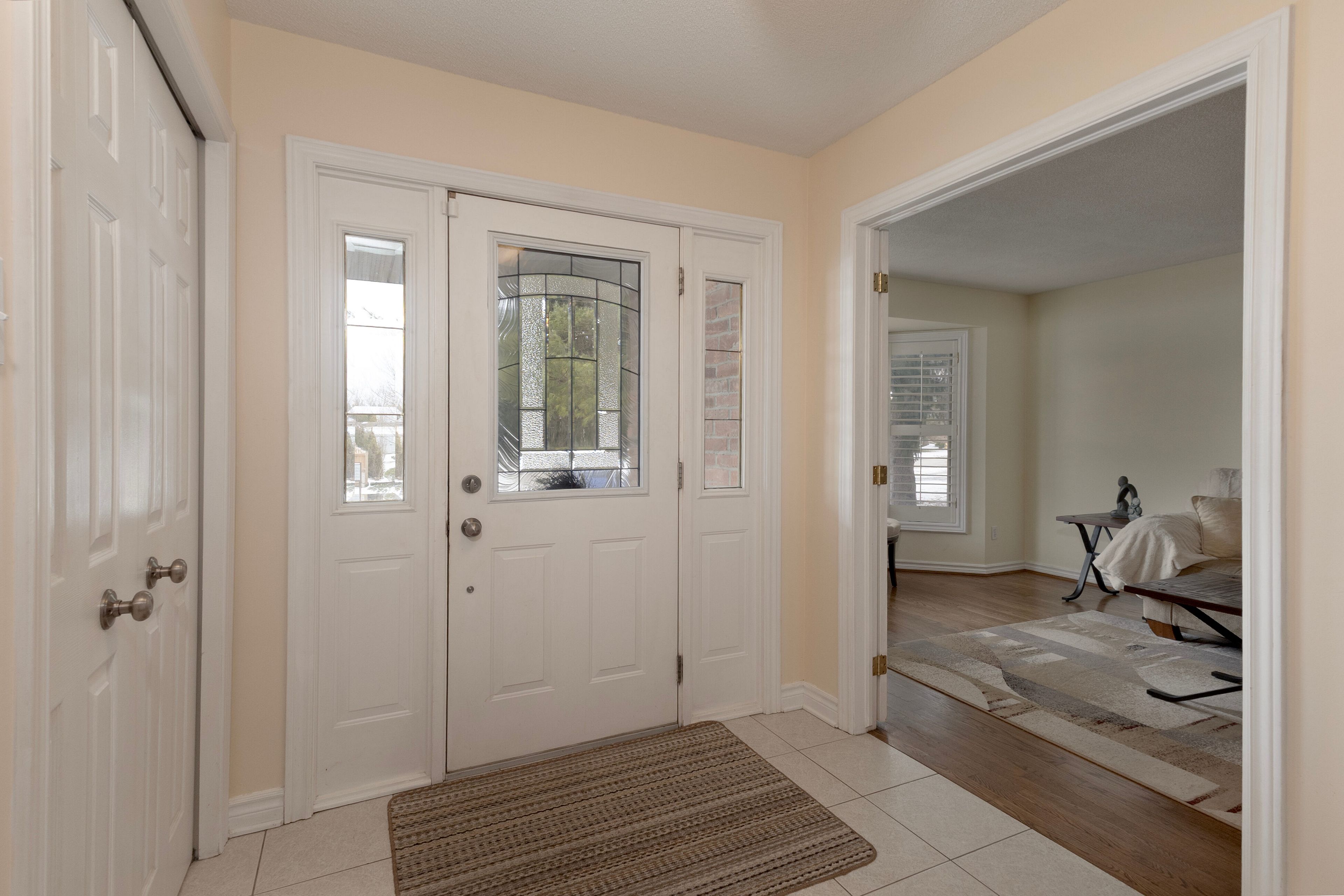 Welcome to this beautifully maintained home on a quiet street with friendly neighbours, backing onto the mill pond with seasonal water views and stunning sunsets. The large front porch is the perfect place to relax and take in the peaceful surroundings, while the private backyard offers a composite deck, patio behind the garage, hot tub (as is), irrigation system, and mature landscaping with cedar, hedges, bushes, and perennials. Inside, elegant french doors open to a bright living room, where rich hardwood flooring flows seamlessly into a spacious formal dining room. The refreshed kitchen features stainless steel appliances with a built-in microwave, quartz countertops, an updated backsplash, sink, and cabinet doors, while ceramic tile flooring continues into the laundry room. A cozy family room with a wood-burning fireplace and a convenient 2-piece bath complete the main level. The second floor offers four spacious bedrooms, all with hardwood flooring, a main 4-piece bath, and a primary retreat with walk-in closet and beautifully renovated 5-piece ensuite featuring a soaker tub, double sink vanity, and separate shower. The fully finished basement adds excellent living space with a large, open-concept recreation room, an additional bedroom, office area, workshop/hobby room, fruit cellar, and enlarged basement windows for natural light. An exercise room provides potential to convert into a spacious bathroom with ensuite privileges. Additional highlights include an owned water softener. Enjoy a spacious cement driveway accommodating six cars plus a two-car garage. Notable updates include the kitchen refresh (2018), primary ensuite renovation (2019), bathroom fixture updates (2020), finished basement with enlarged windows (2022), new furnace and water heater (2024), and garage door mechanism replacement (2025). A wonderful opportunity to enjoy space, privacy, and thoughtful updates in a beautiful natural setting.